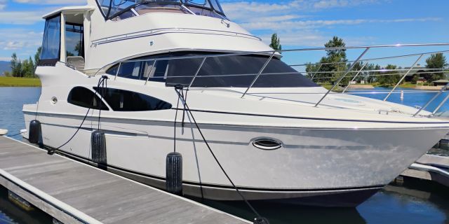 Powered by twin Volvo Penta Crusader 8.1L inboard engines, each delivering an impressive 375 horsepower, it promises exhilarating cruising speeds of up to 20 knots and a maximum hull speed of 31 knots. This yacht comfortably accommodates two cabins and two heads, making it perfect for relaxing getaways.