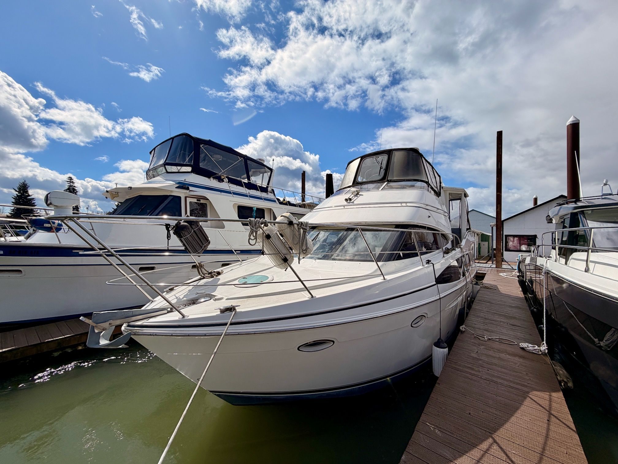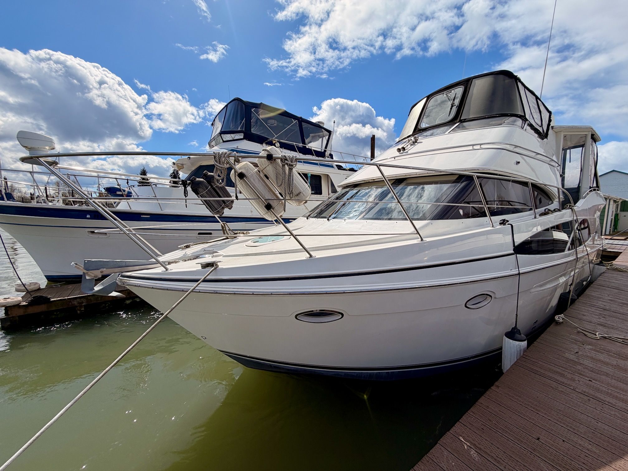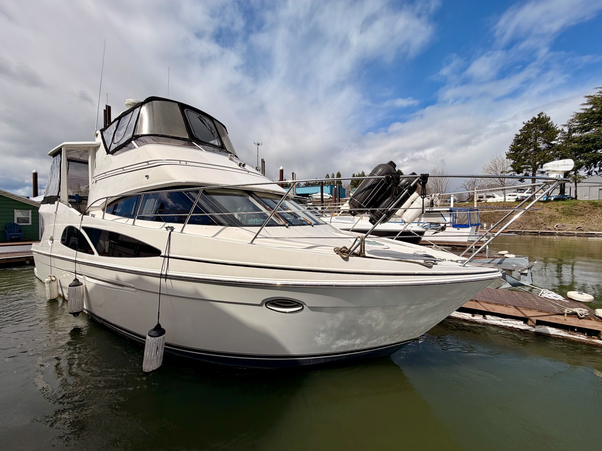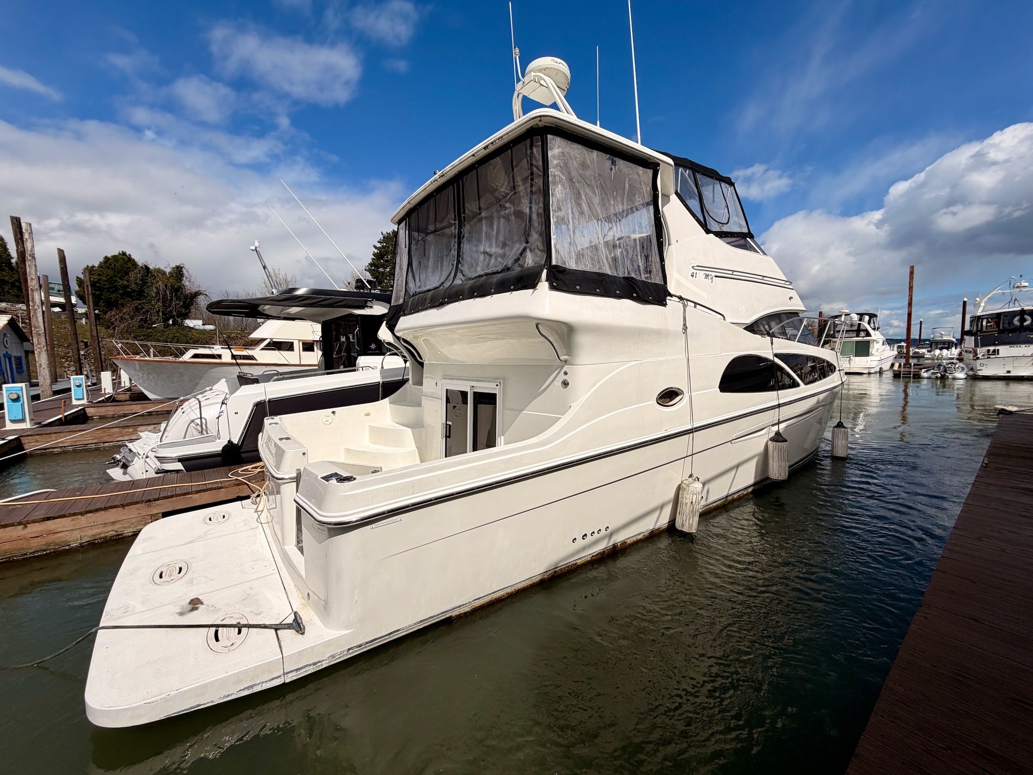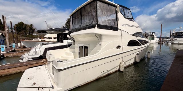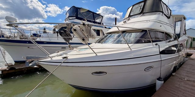 With her solid fiberglass construction, efficient modified‑V hull, and proven diesel power, the Carver 41 CMY is equally at home on inland waterways, coastal cruising, or extended stays aboard. Key highlights include twin Volvo Penta D6‑310 diesel engines, two staterooms with two en‑suite heads, a full‑beam salon with exceptional headroom, master stateroom with private cockpit access, and generous outdoor entertaining space across the cockpit, aft deck, and flybridge. Proven Carver build quality and a spacious, thoughtful layout make this a versatile, comfortable motor yacht and a rare opportunity to own one of the most sought‑after models in her class.