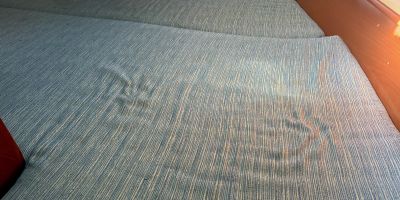 One fluorescent strip light, deckhead lights above fridge and sink.
