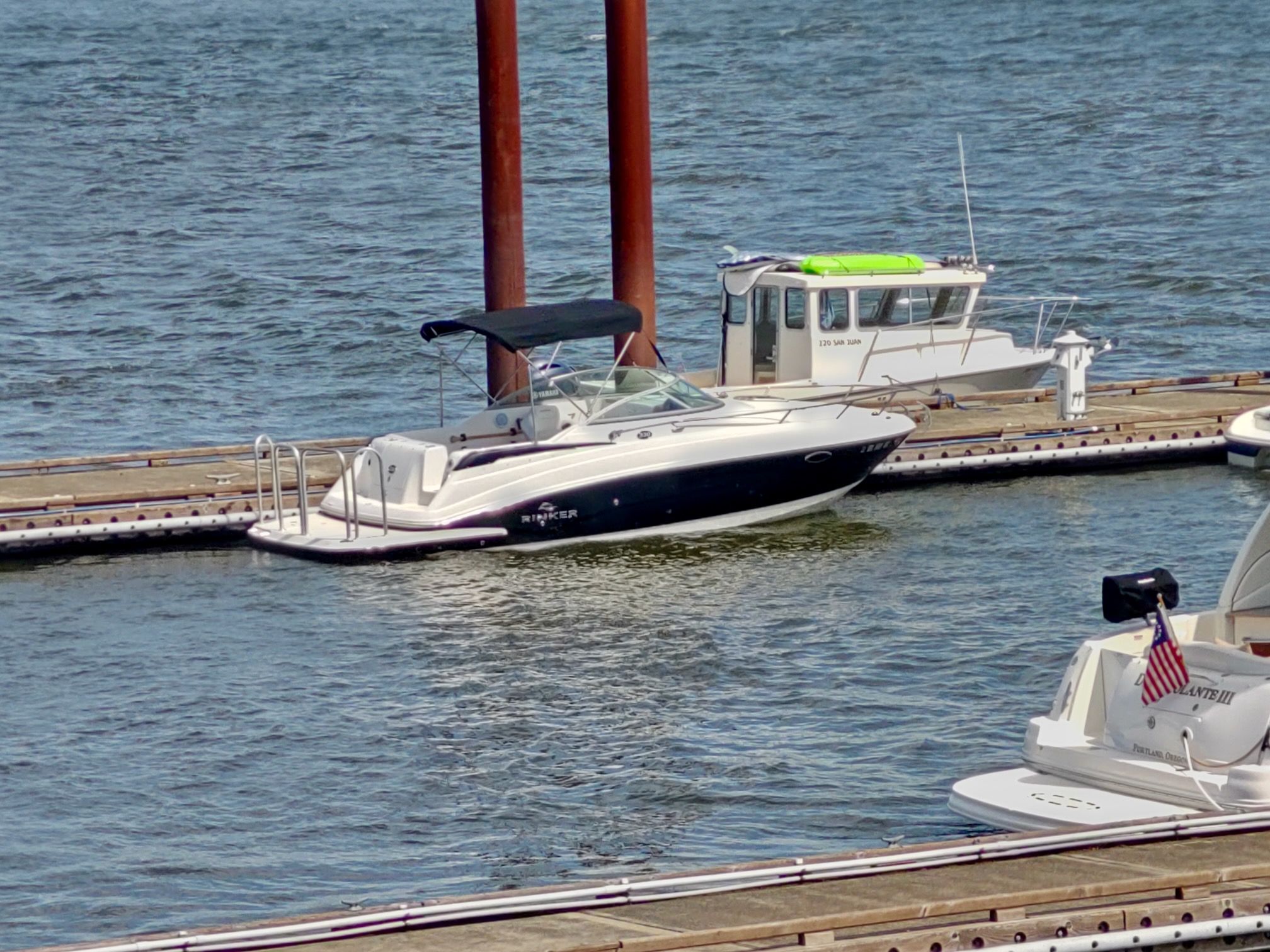 -Large swim platform with custom aluminum railings.
