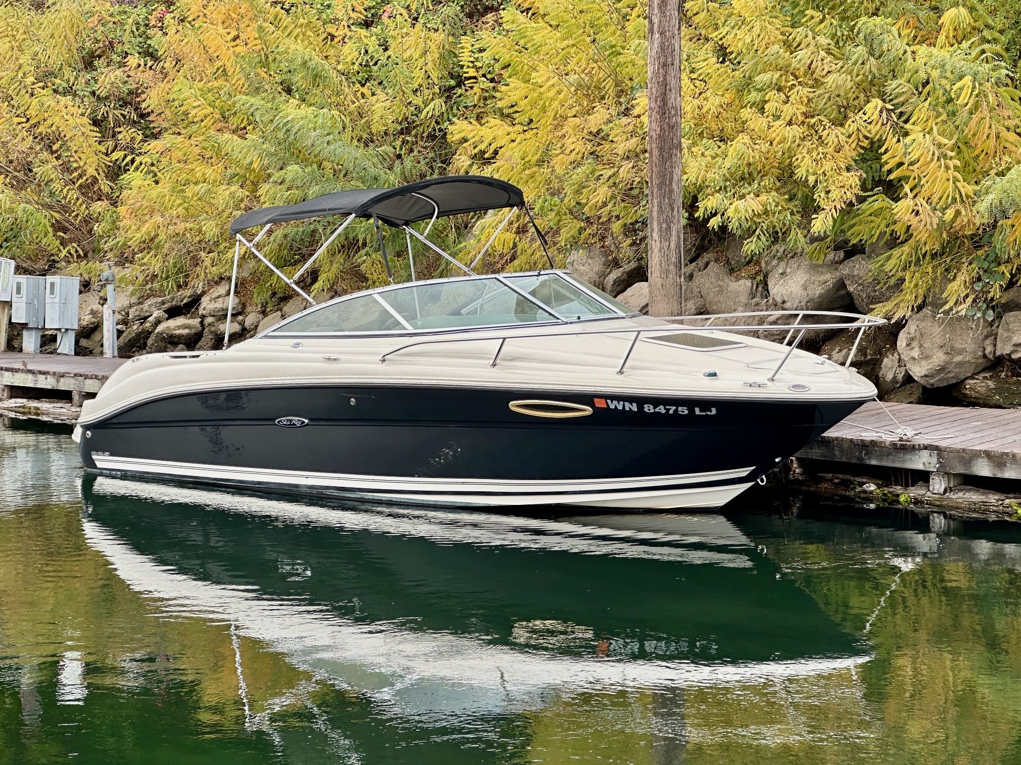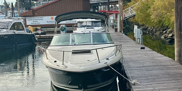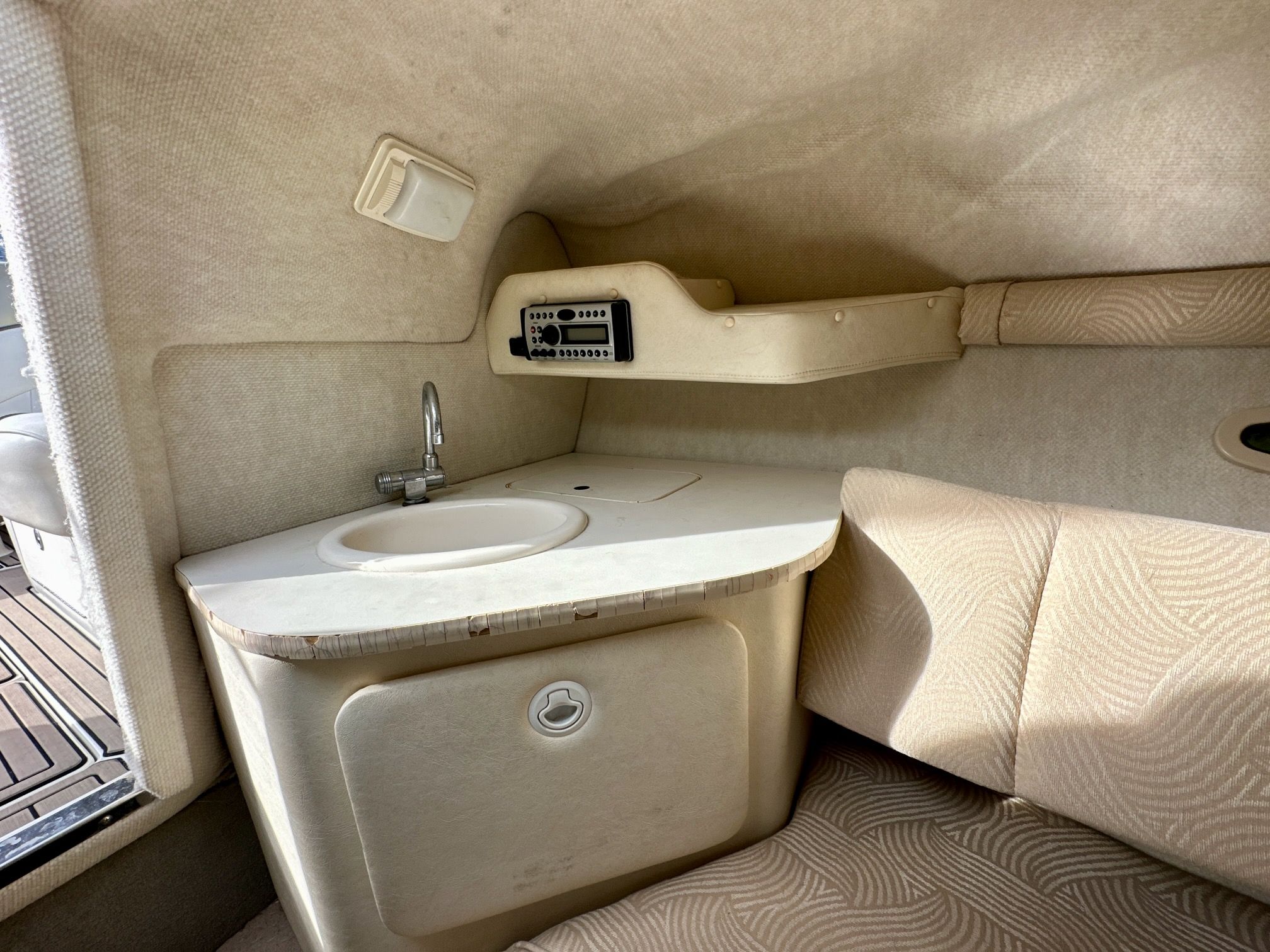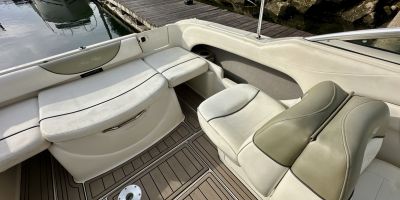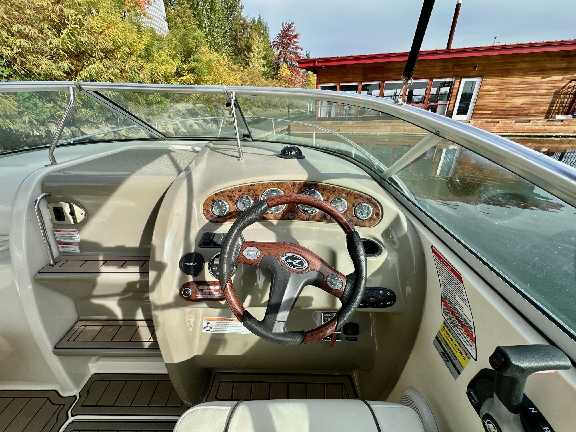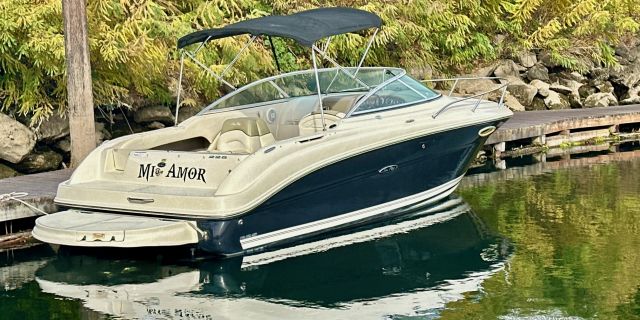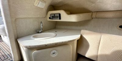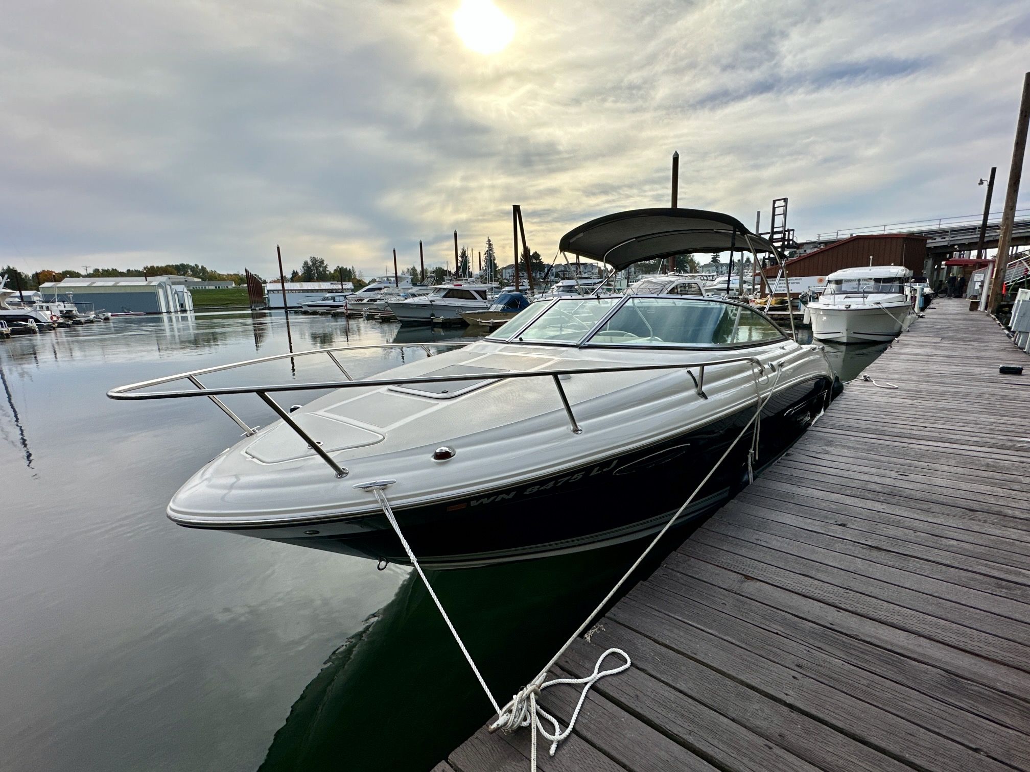 Leave worries behind when you board this luxurious 225 Weekender. The designer cabin features a cozy V-berth that converts to a dinette, enclosed head and galley with sink, faucet and built-in ice chest. Additional features include Sunbrella bimini top, extended swim platform and 12V Clarion AM/FM/CD player w/Sirius Satellite Radio.