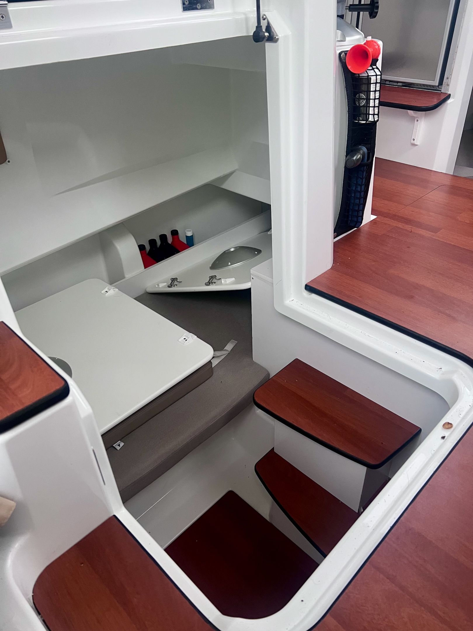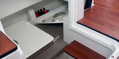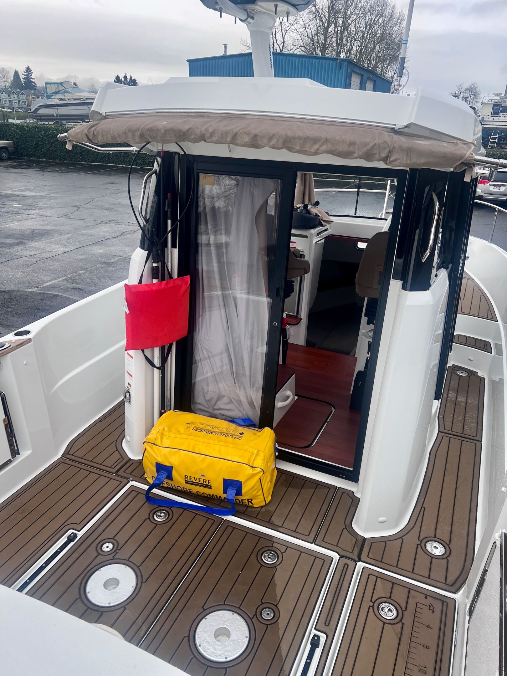 Two side pilot house doors and one aft door for easy accessibility to all sides. It combines fishing functionality with comfortable overnight accommodations, with its large cockpit and enclosed cabin.