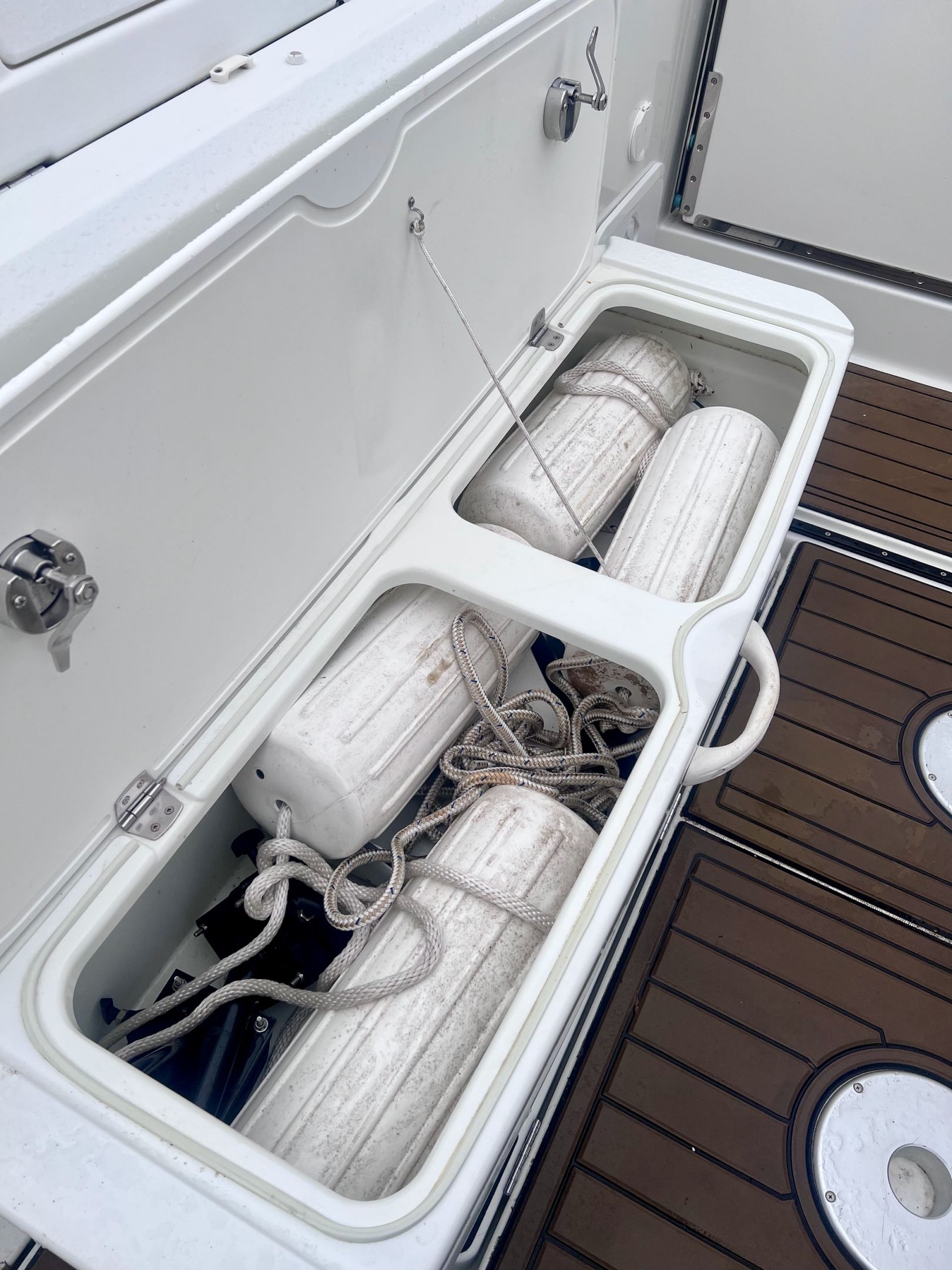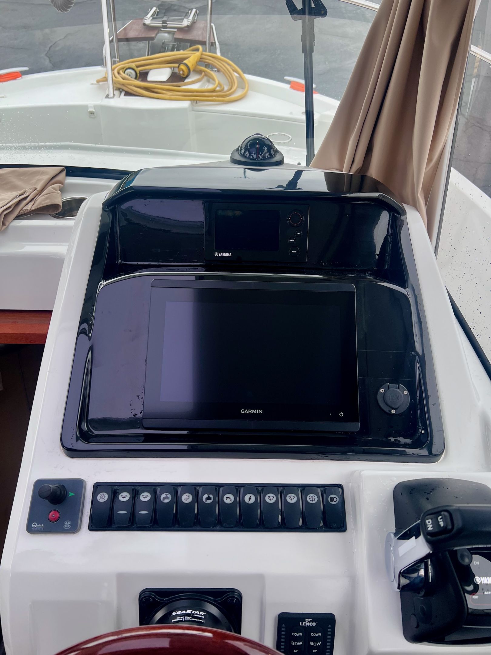 Boat is well equipped featuring: Radar, chart plotter, depth finder, VHF, radio, search light, windlass, sea deck, live well & cockpit bimini. This boat would be ideal for cruising or angling.