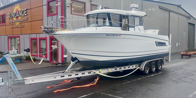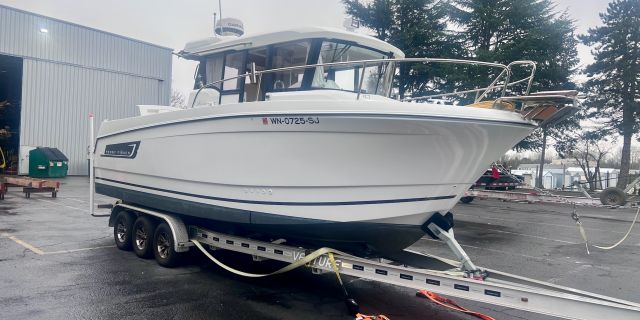 Plenty of room to sleep 3 with its private mid-berth cabin and full forward V-Berth. Trailer included.
