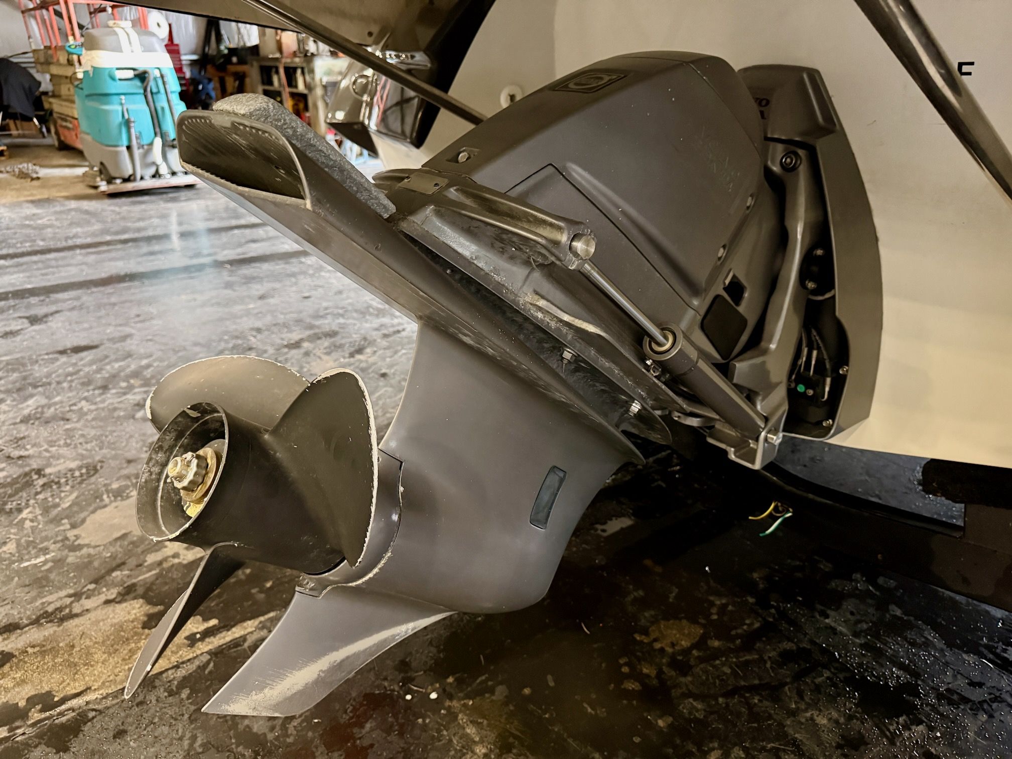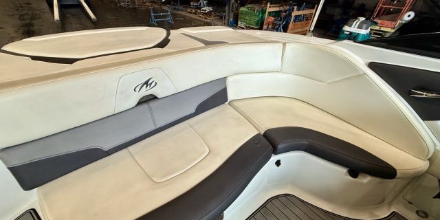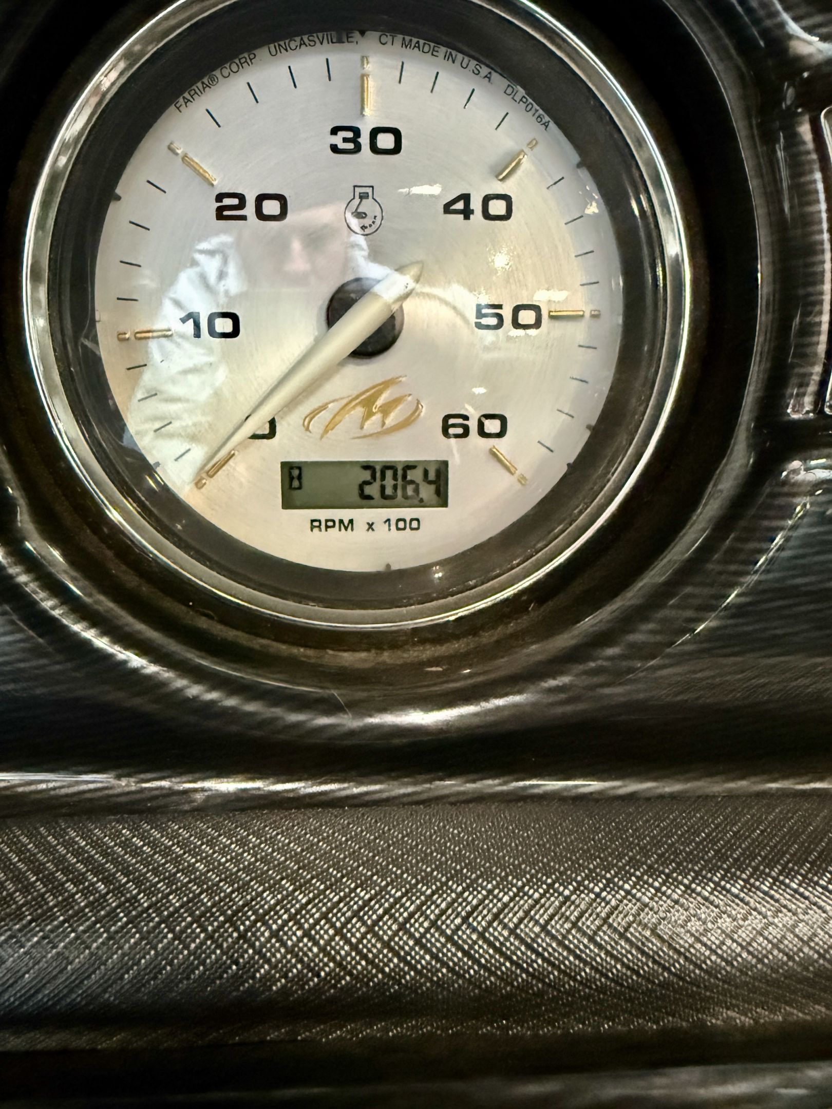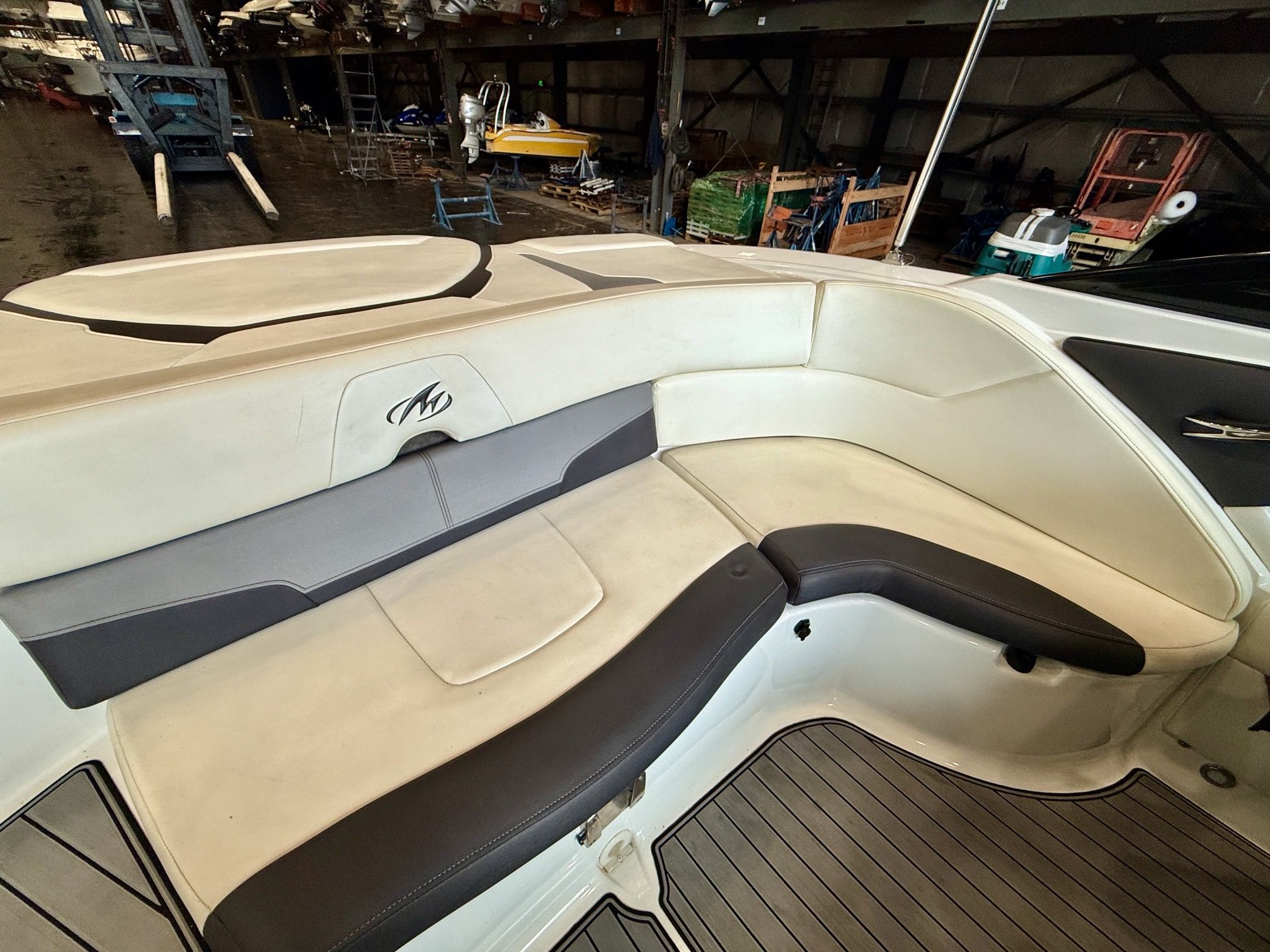 This Monterey 224FS measures 22’9” overall including the swim platform, with an 8’6” beam and a dry weight of approximately 3,500 lbs. Fuel capacity is 55 gallons, and it’s powered by a Volvo Penta V6 sterndrive (280 HP) delivering smooth, reliable power and excellent throttle response.