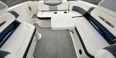 - U-Shaped Aft Seating with Hinged Cushions and Dedicated Storage for 36 Quart Cooler
