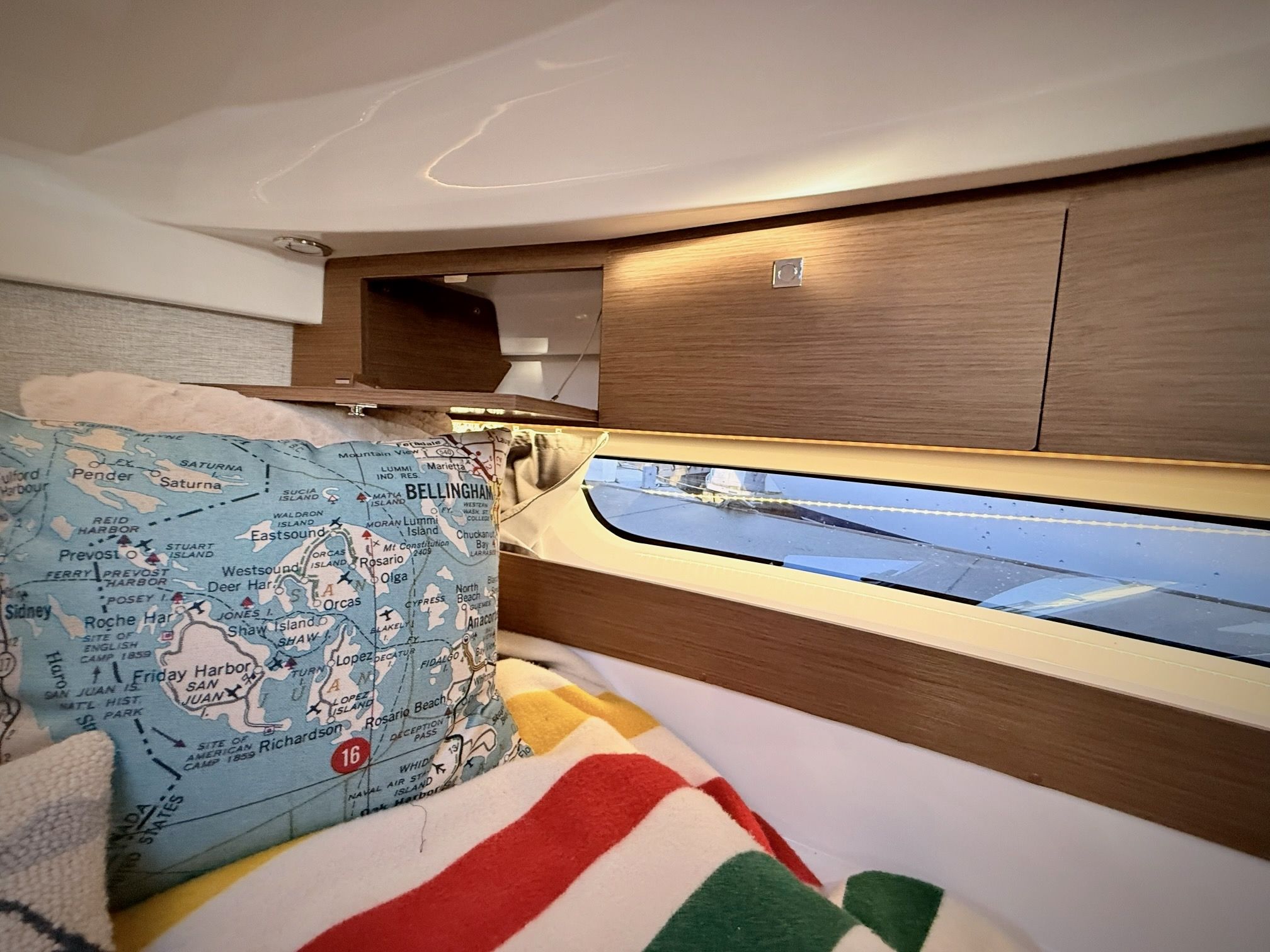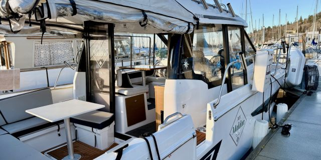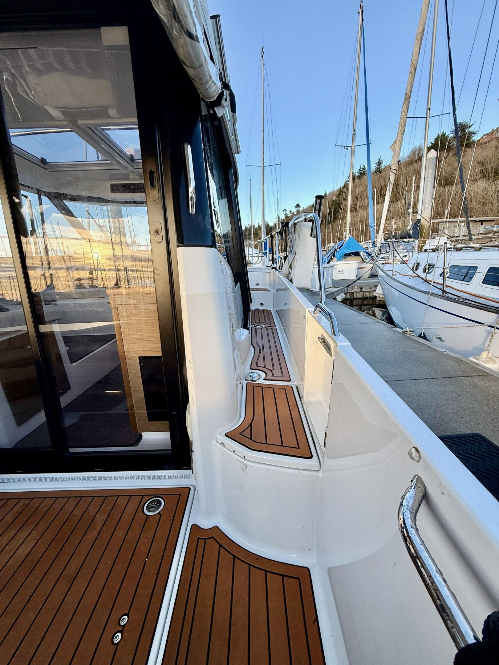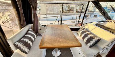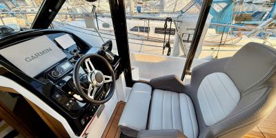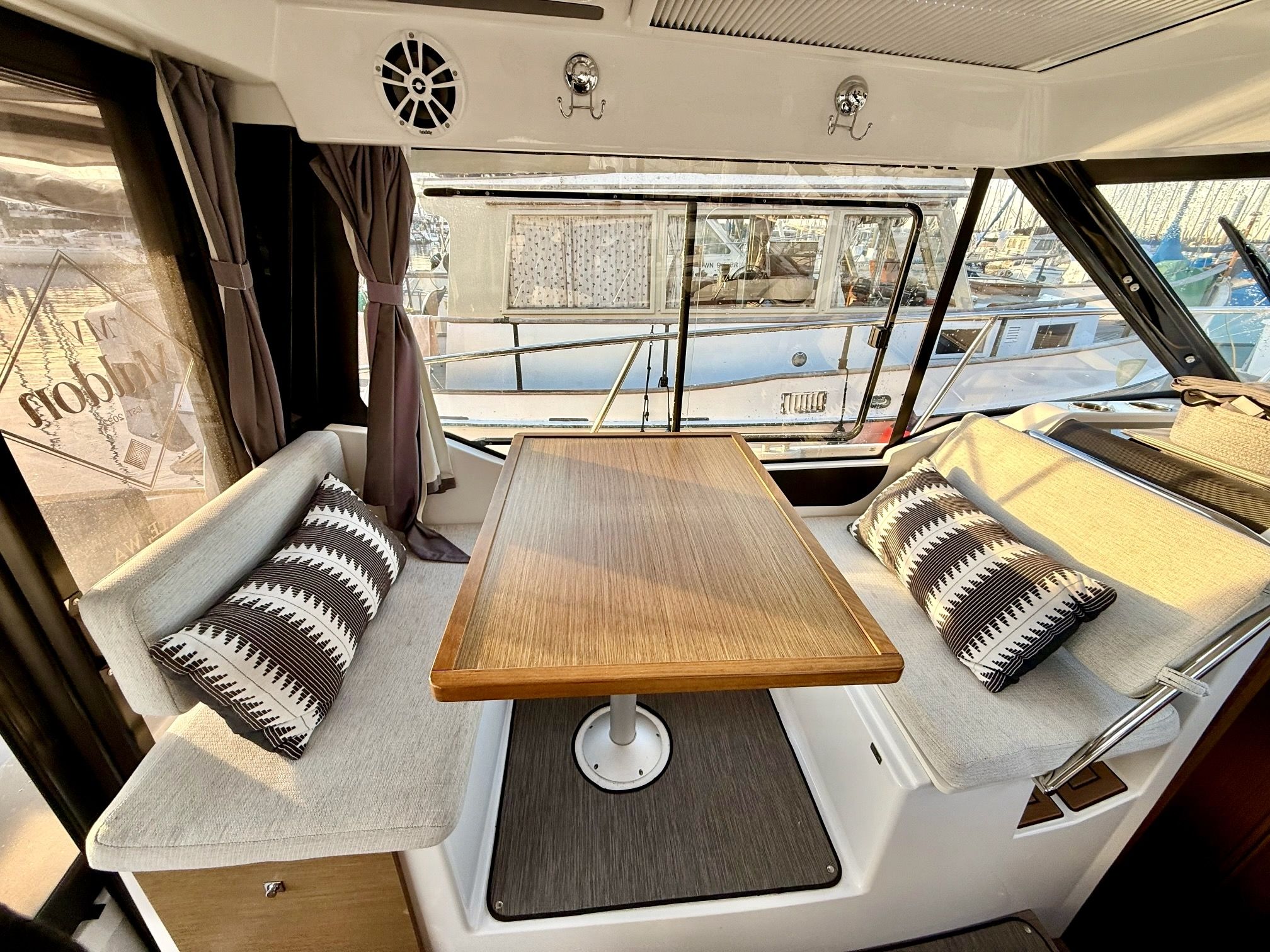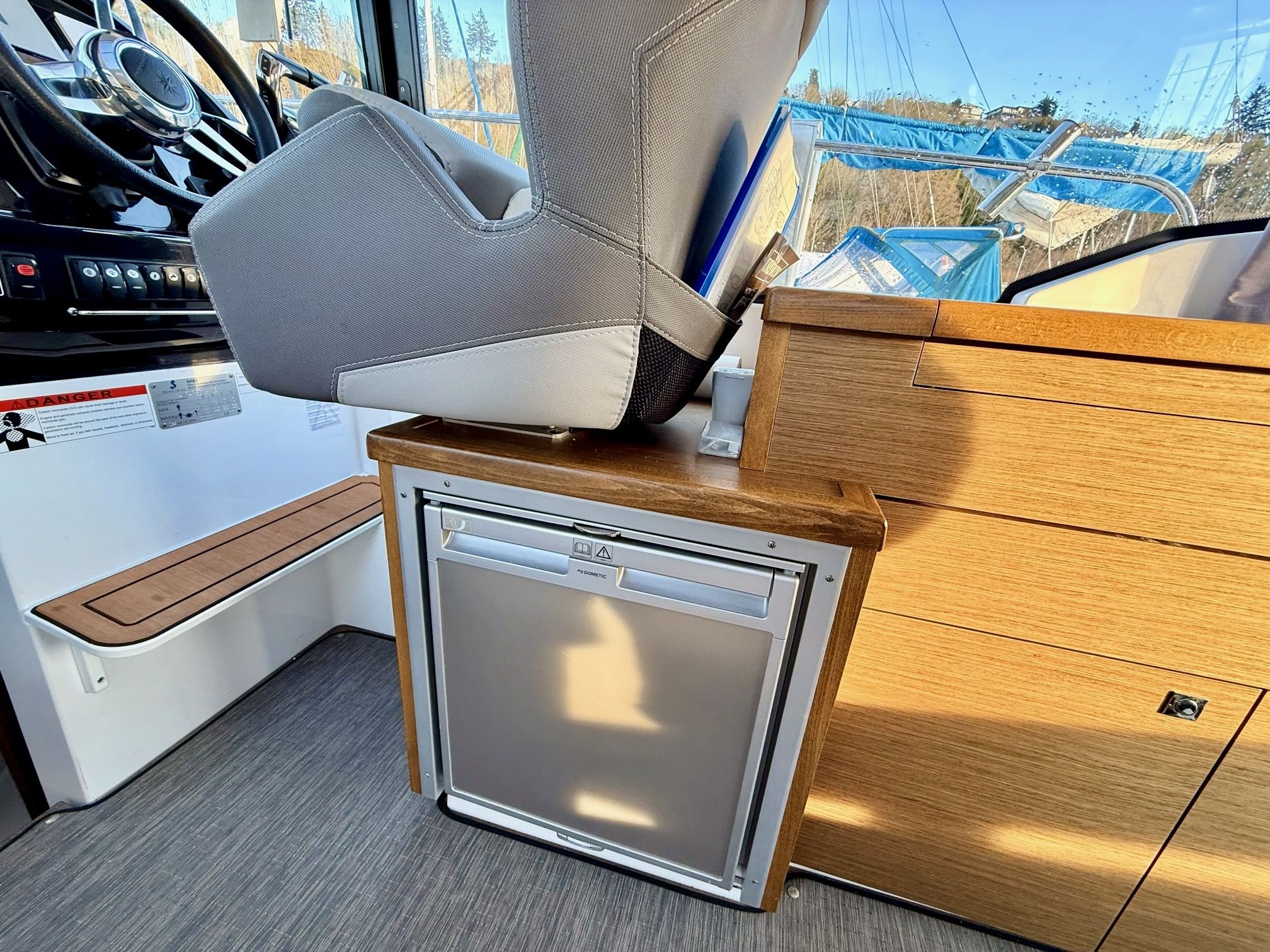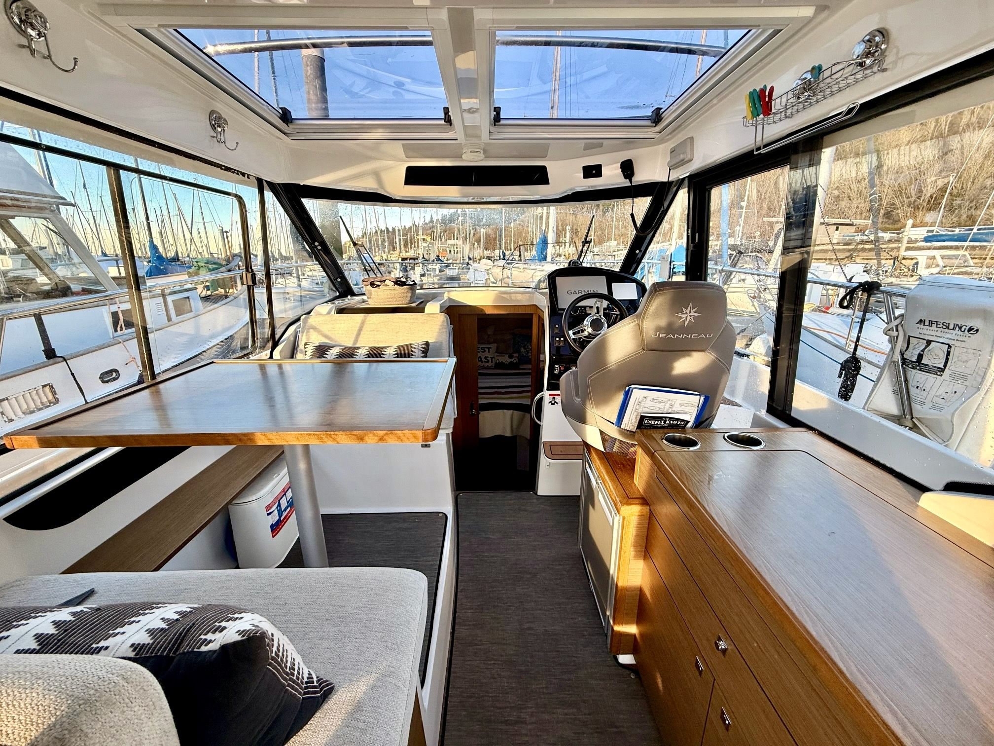 Step aboard and you’ll find a bright, open salon with panoramic windows, a fully equipped galley, and a convertible dinette that expands your sleeping capacity. Two private cabins provide true overnight comfort, while the enclosed head with shower makes extended trips easy.