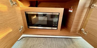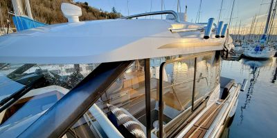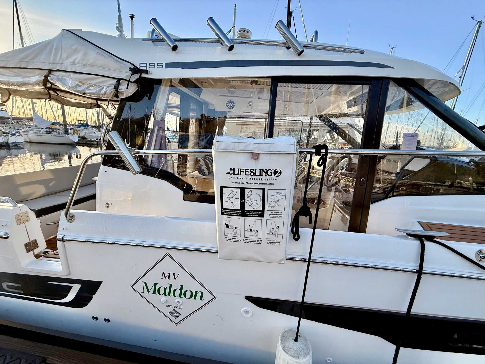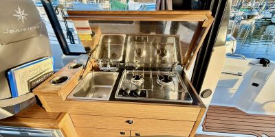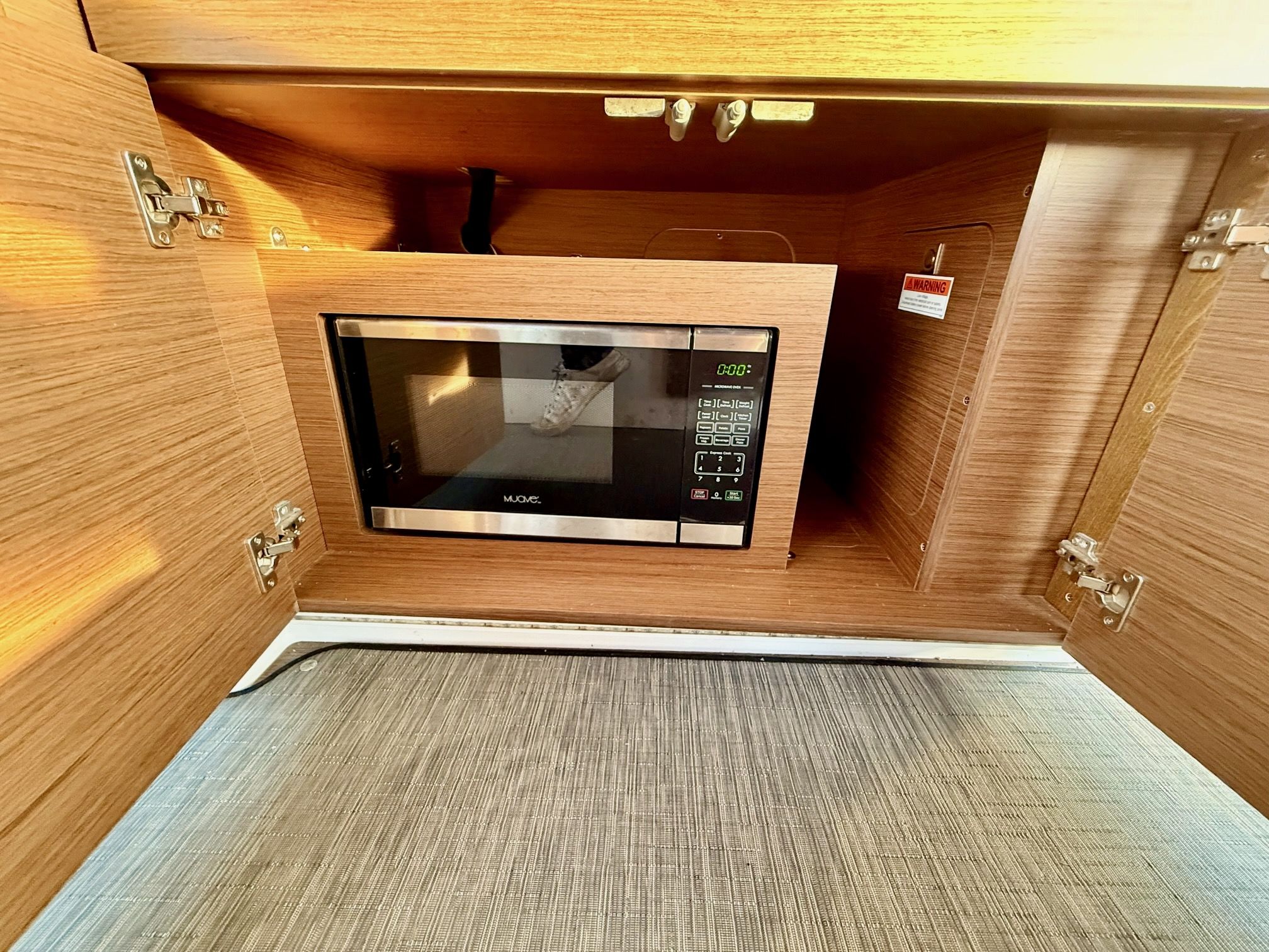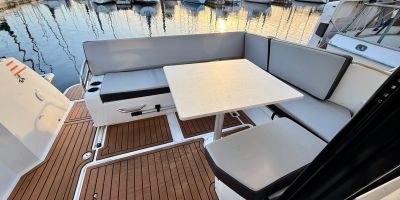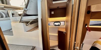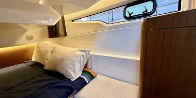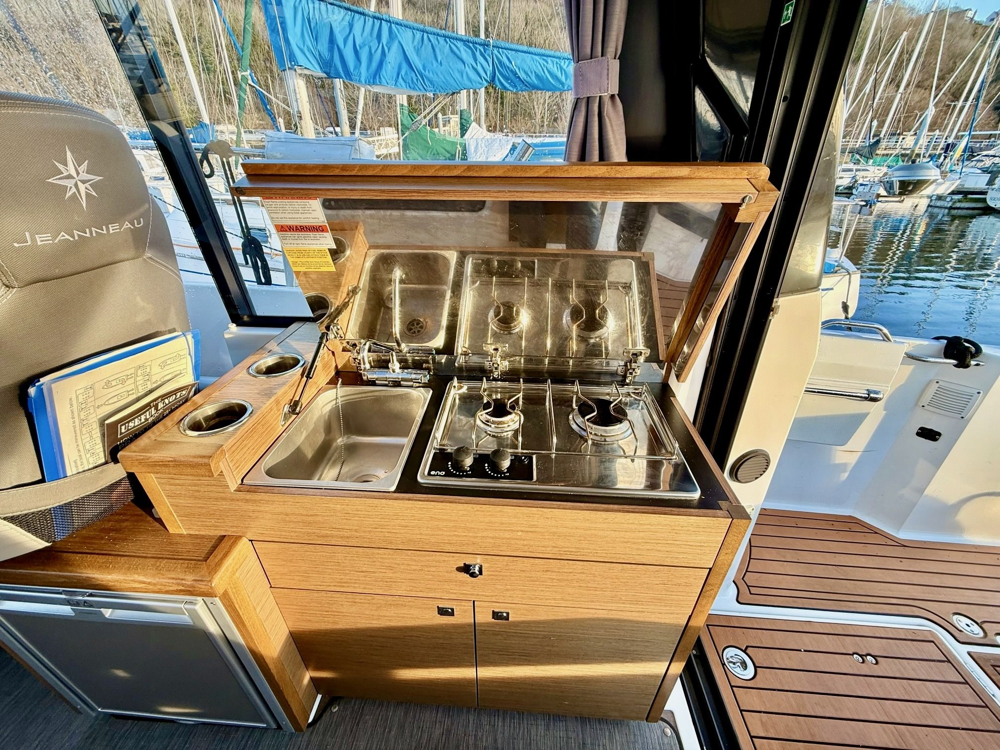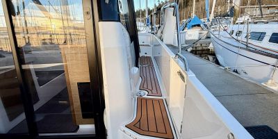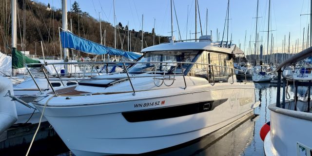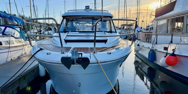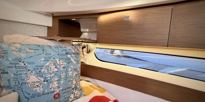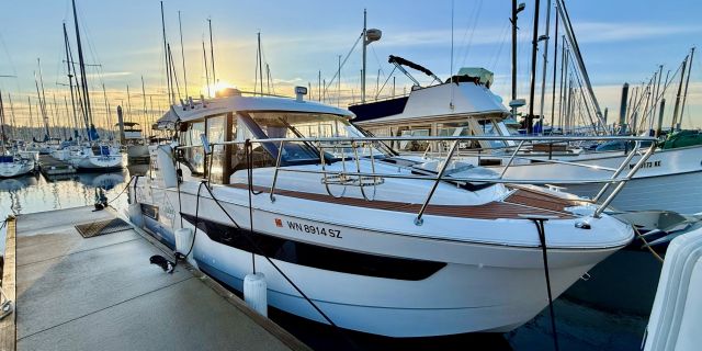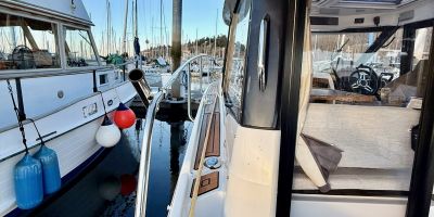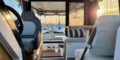 Step aboard and you’ll find a bright, open salon with panoramic windows, a fully equipped galley, and a convertible dinette that expands your sleeping capacity. Two private cabins provide true overnight comfort, while the enclosed head with shower makes extended trips easy.