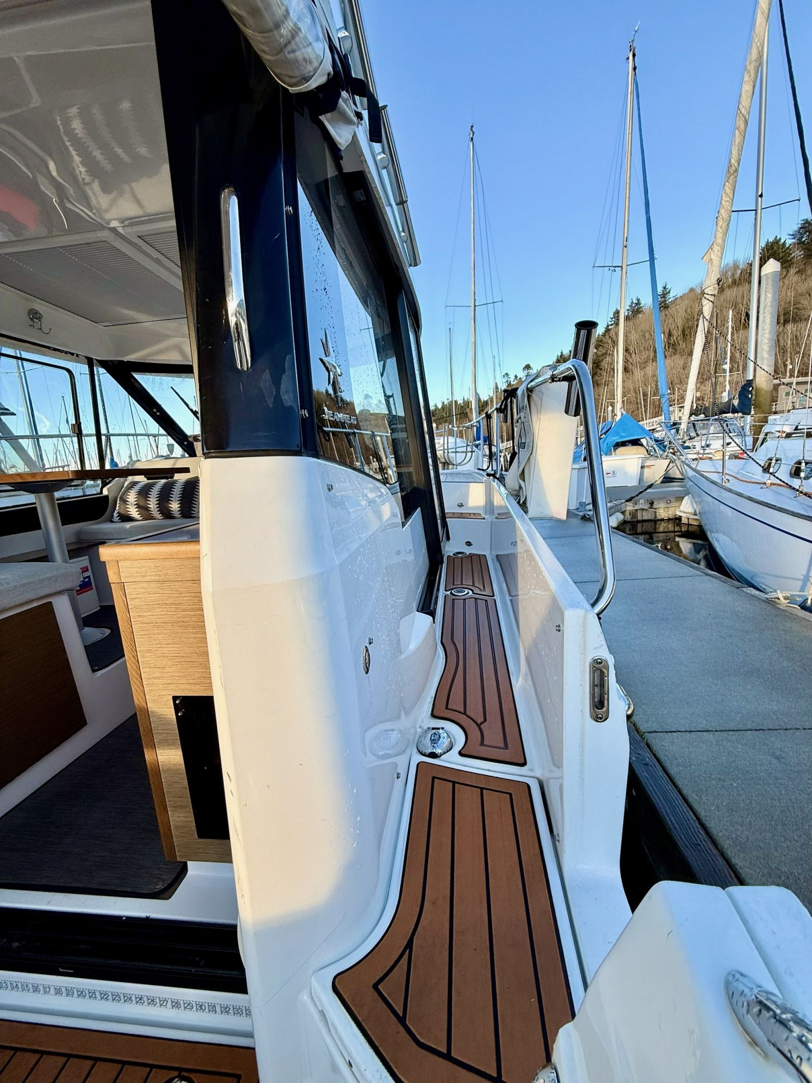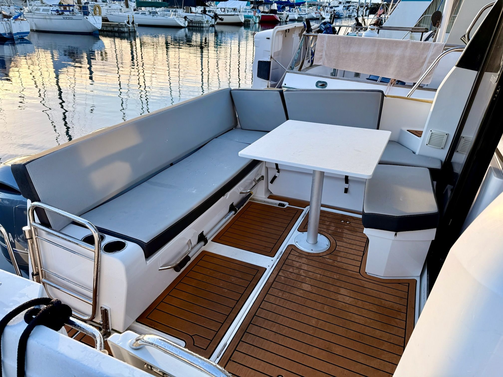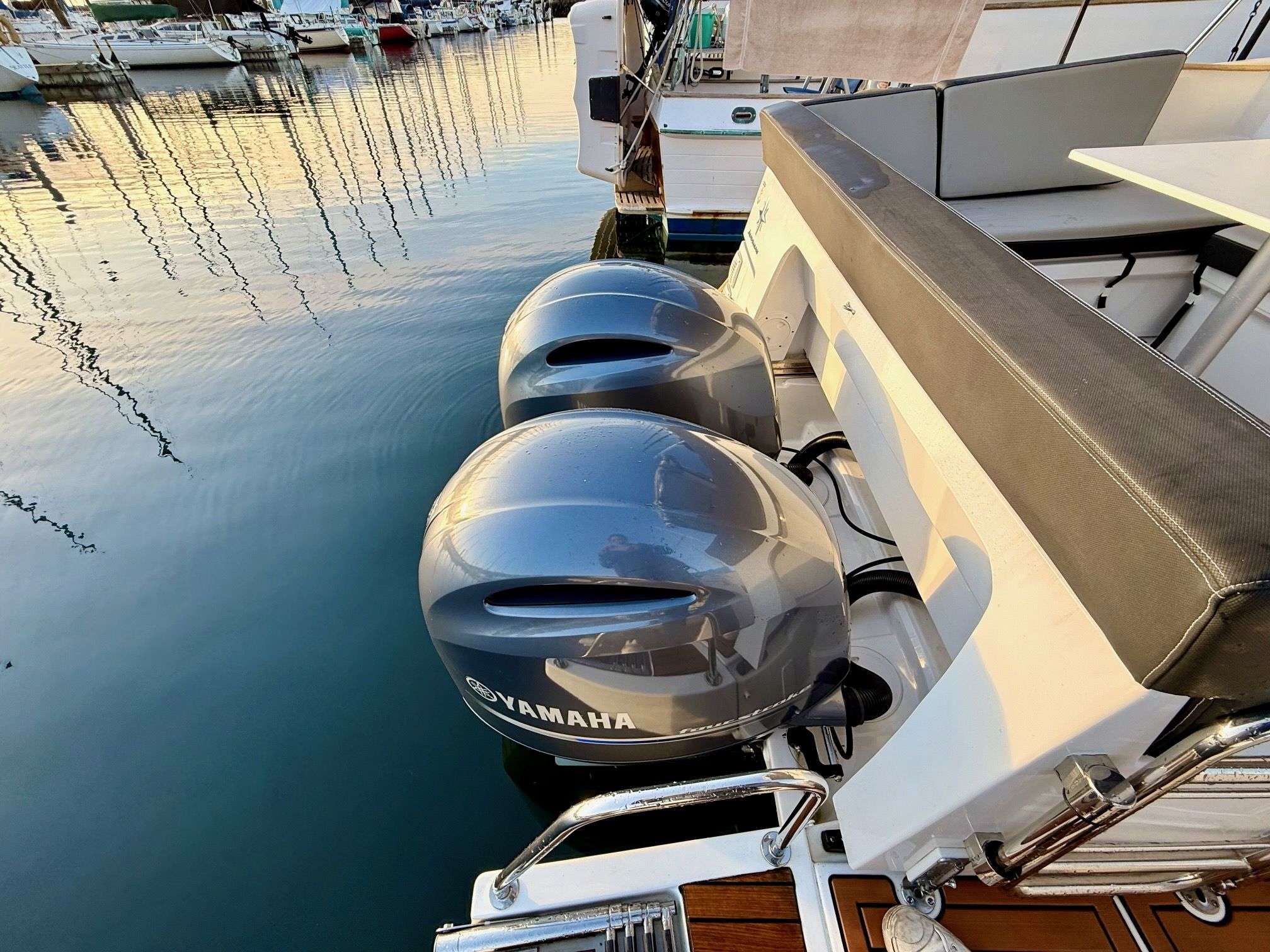 Twin Yamaha 200s deliver smooth, efficient power with excellent handling at all speeds. Wide side decks, a secure bow, and a modular cockpit layout make this boat safe and enjoyable for families, guests, and new boaters alike.