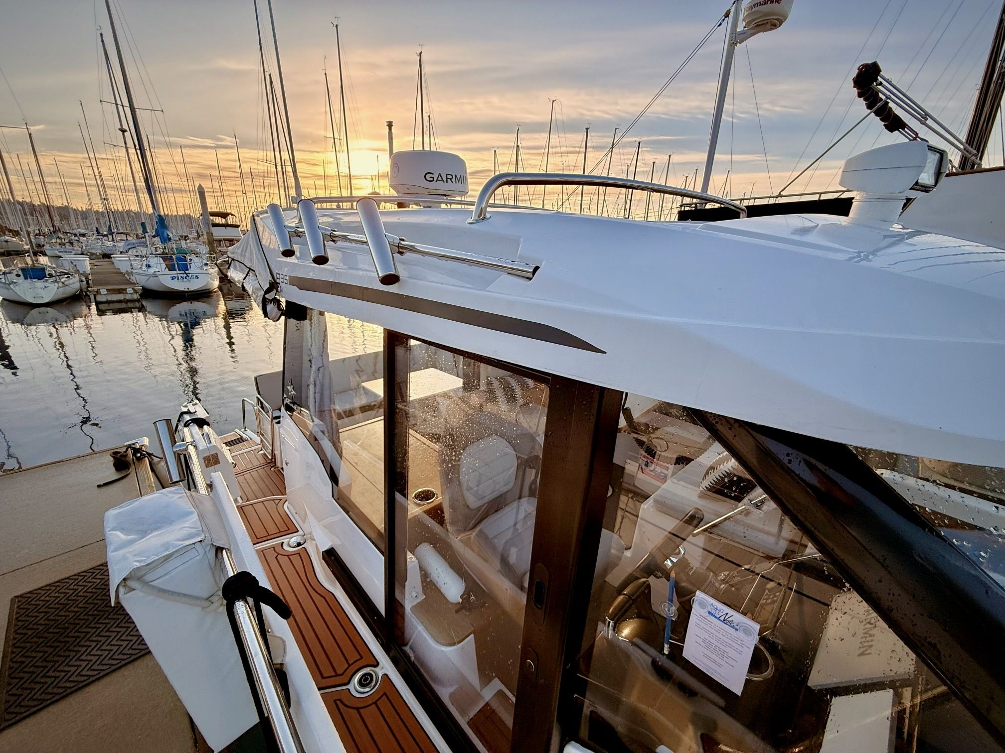 The NC 895 Weekender is built for real‑world conditions — protected helm, bright interior, efficient hull design, and the versatility to enjoy the water in any season.