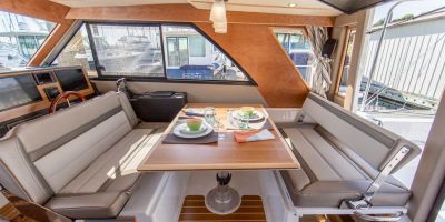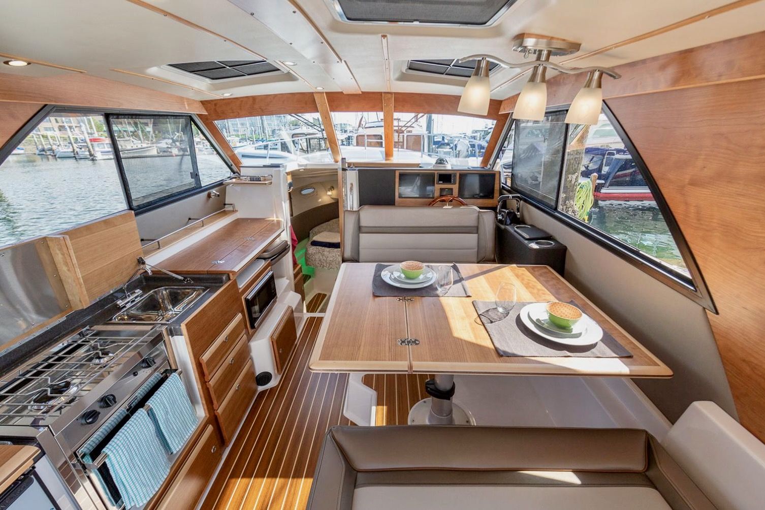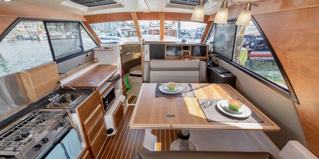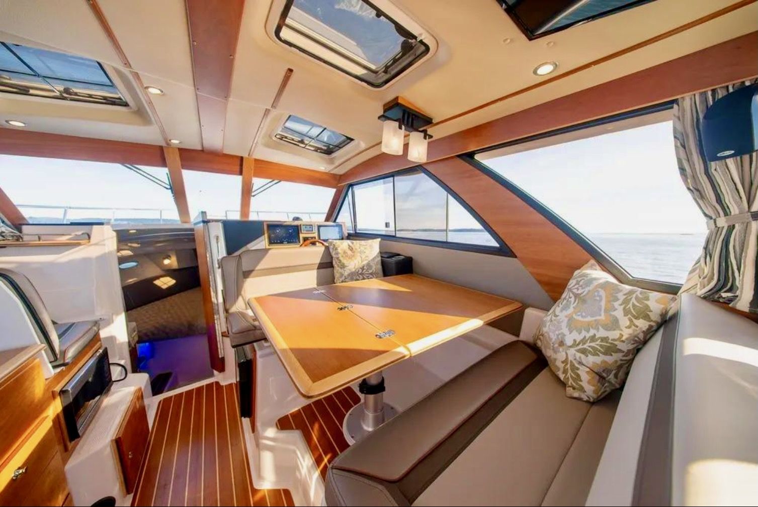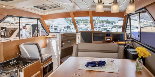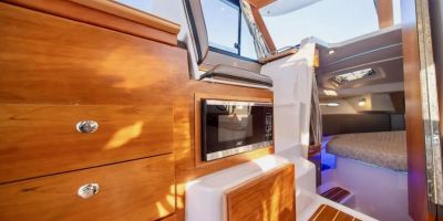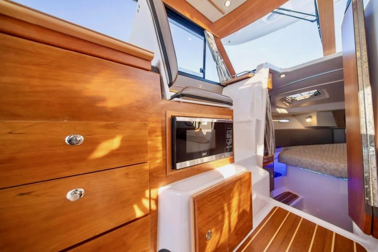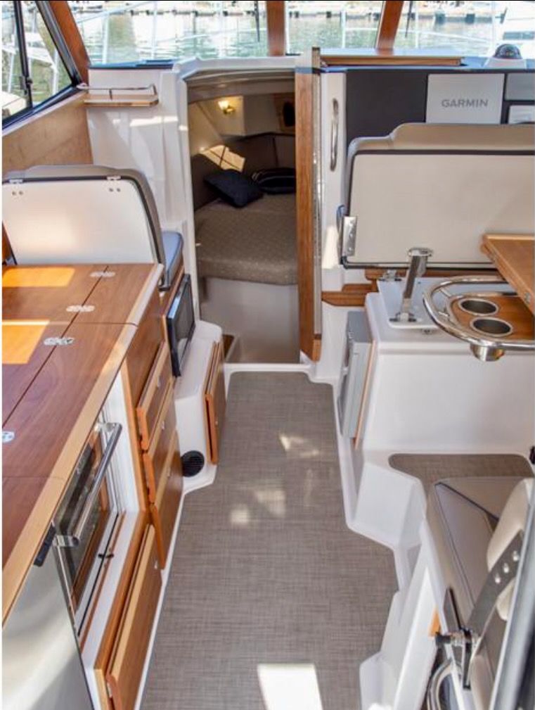 Upon stepping into the comfortable interior, you’ll feel fully at home. Appointed with fine wood accents throughout, a fully furnished galley, large dinette, private head and shower, and a luxurious forward stateroom featuring an island bed and recessed LED lighting, the C-32 C delivers a resort-like experience.