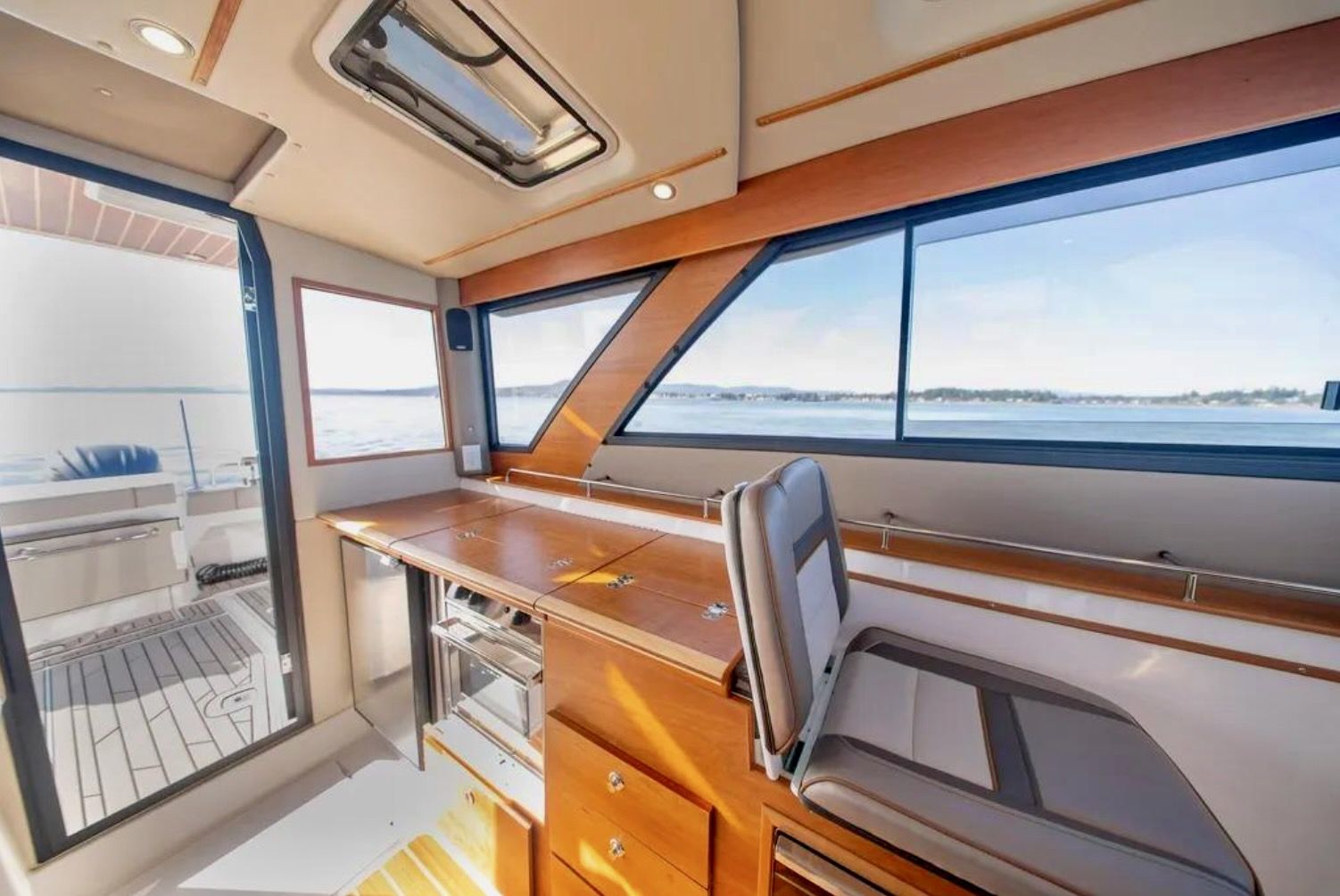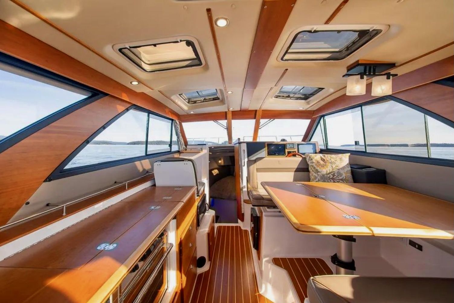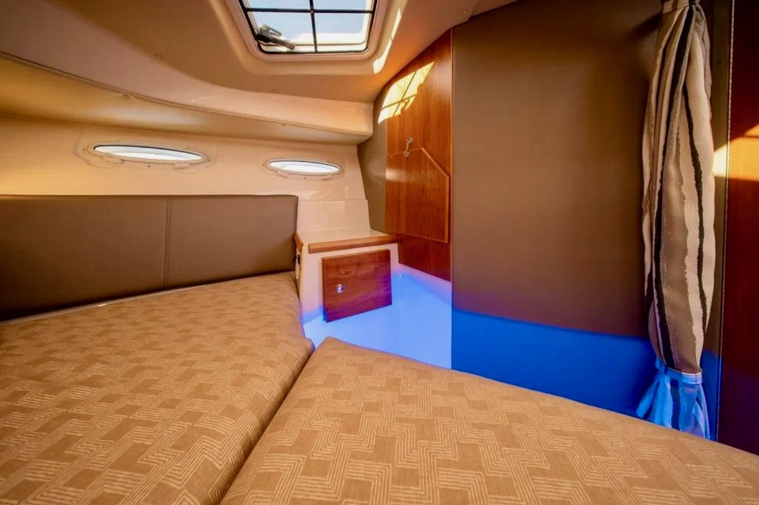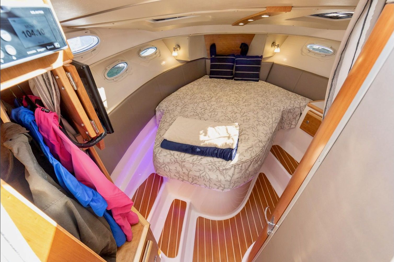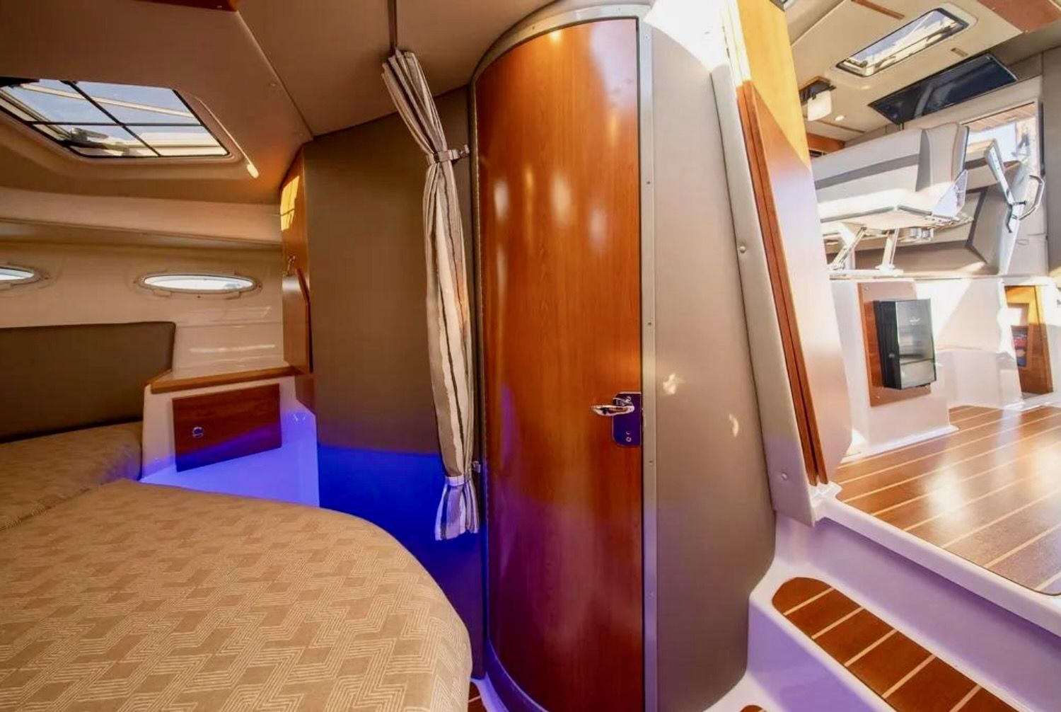 Upon stepping into the comfortable interior, you’ll feel fully at home. Appointed with fine wood accents throughout, a fully furnished galley, large dinette, private head and shower, and a luxurious forward stateroom featuring an island bed and recessed LED lighting, the C-32 C delivers a resort-like experience.