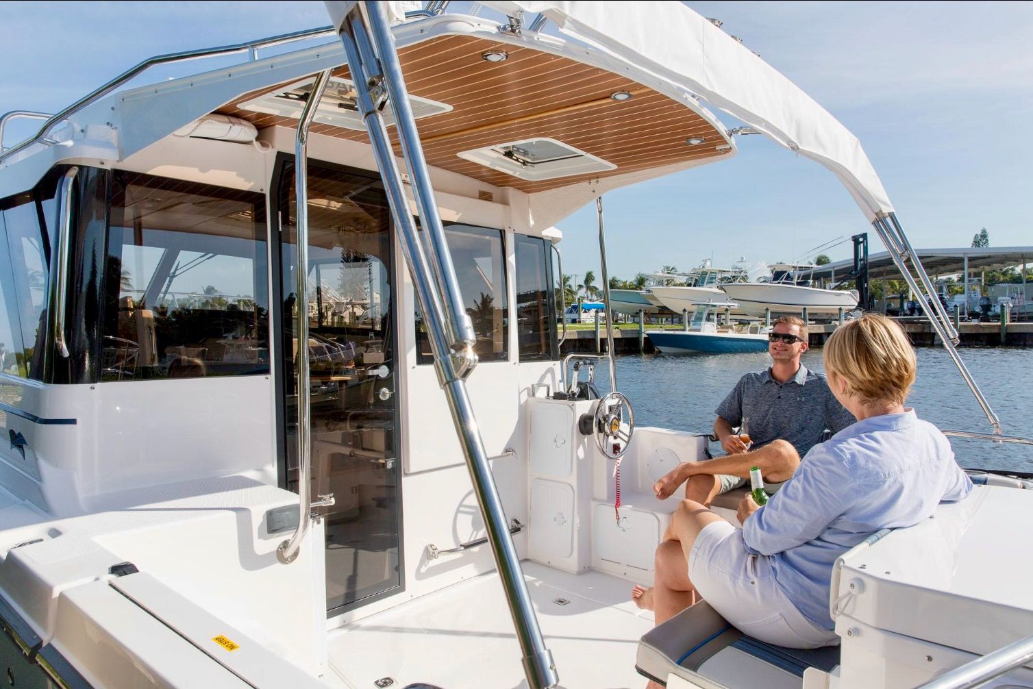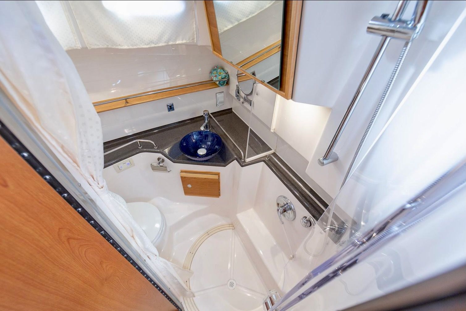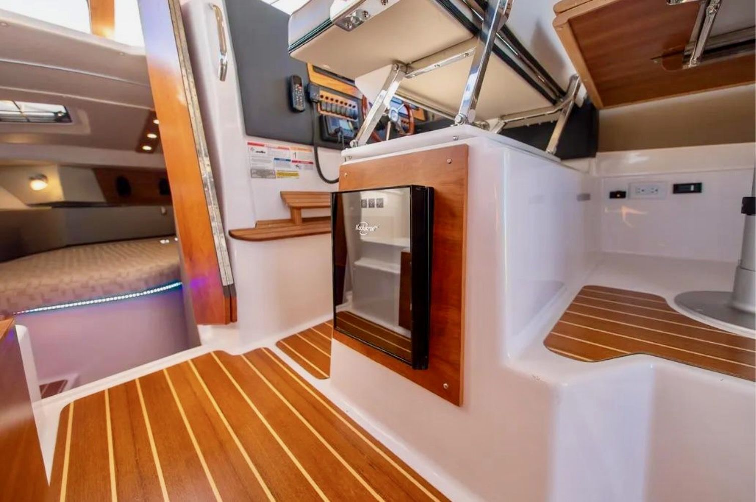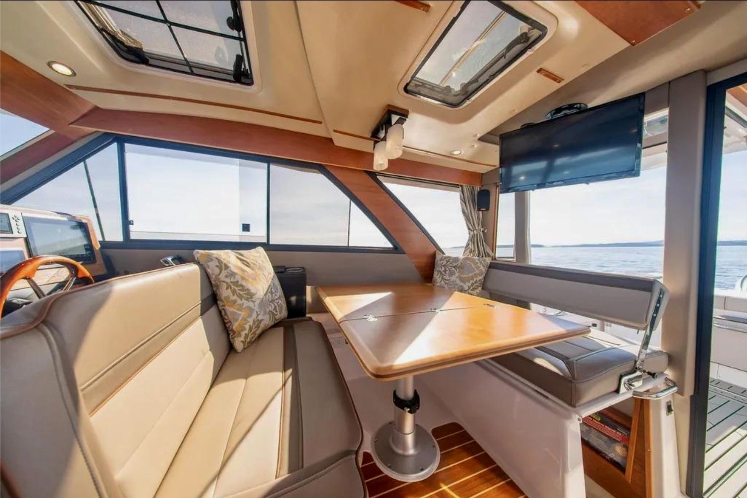 Upon stepping into the comfortable interior, you’ll feel fully at home. Appointed with fine wood accents throughout, a fully furnished galley, large dinette, private head and shower, and a luxurious forward stateroom featuring an island bed and recessed LED lighting, the C-32 C delivers a resort-like experience.
