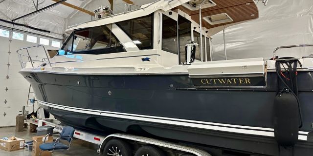 Do it all with this no-compromise cruiser. The Cutwater 32 Coupe (C-32 C) introduces an entirely new way of thinking about an outboard cruiser. Performance and comfort are central to the design. The advanced double-stepped, deep-V hull design combines speed, efficiency and superior stability. Our Laminar Flow Interrupters allow for smooth, positive cornering. Roll the throttles forward and you’ll feel the powerful twin, counter-rotating 300HP Yamaha outboards, propel the C-32 C to remarkable speeds.
