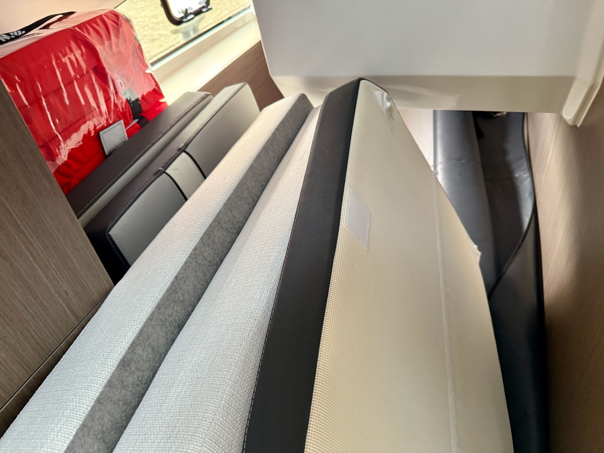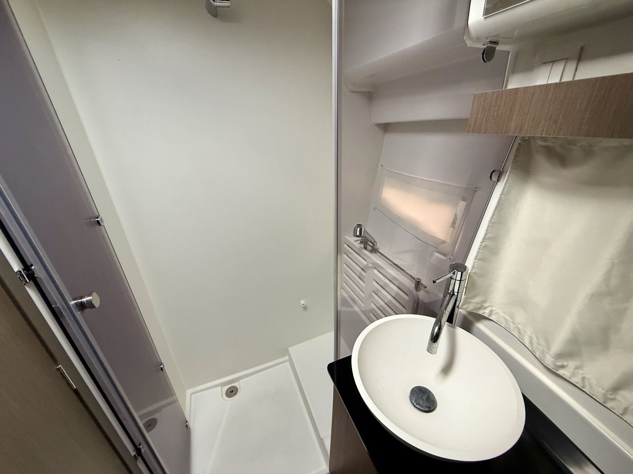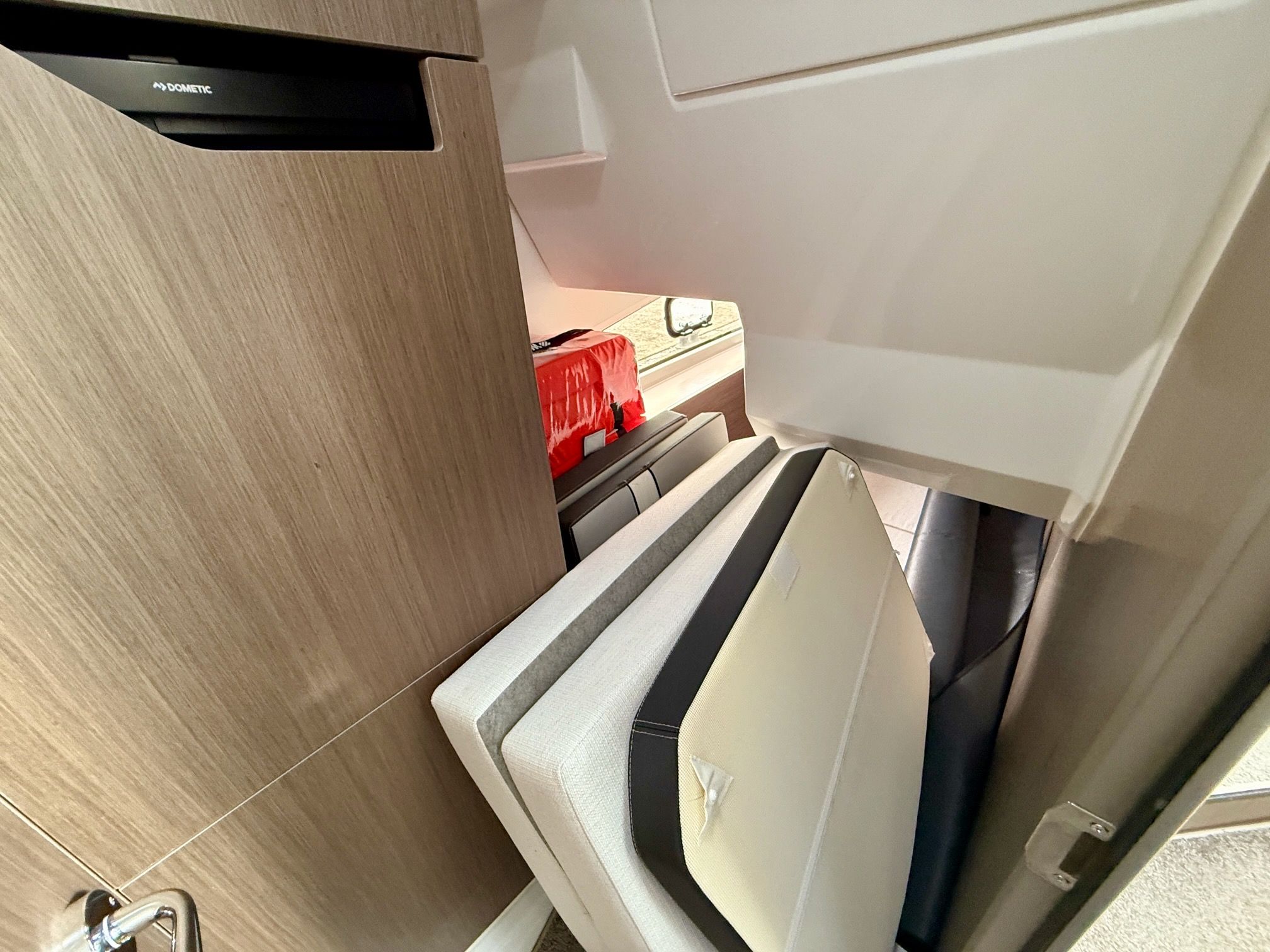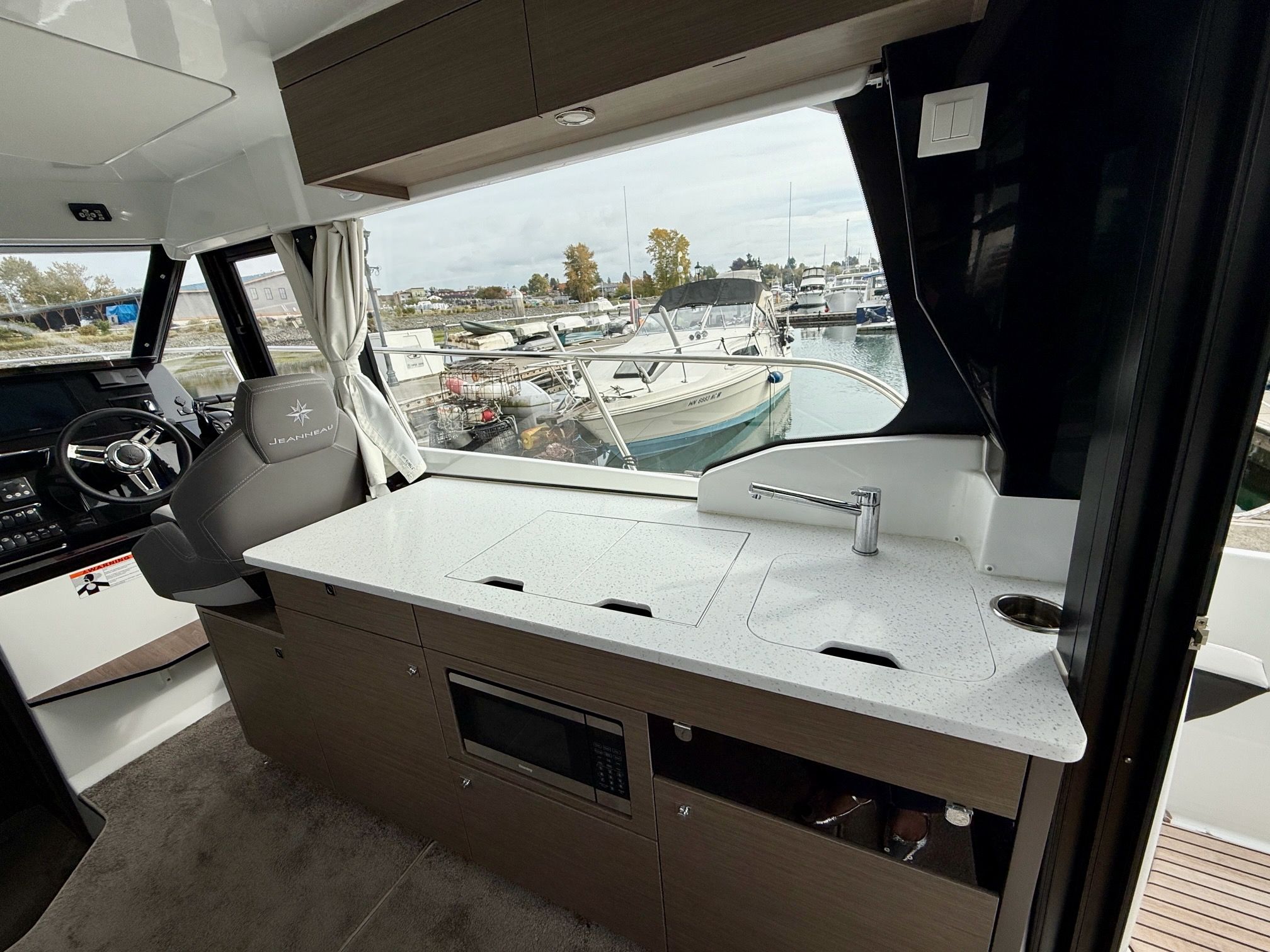 The interior of the NC 1095 with its opening sunroofs and large windows in the hull, allow for plenty of natural lighting. The galley is large and fully functional: here again, a surprising amount of storage space is available in both upper and lower cabinets, allowing you to store everything for your time on the water.