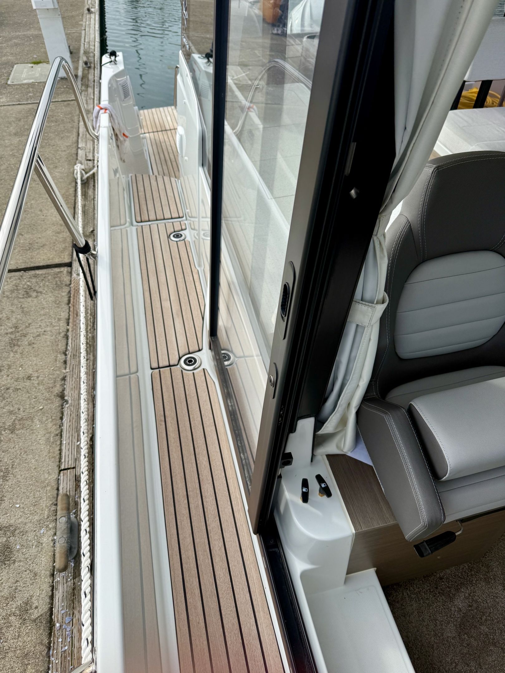 Sliding side door at the helm