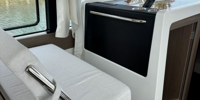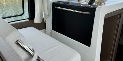 The flybridge includes a forward sundeck and a folding copilot bench seat. The bench seat can be transformed into a sun lounger or an XXL sundeck, according to preference! This area also includes numerous storage compartments plus an optional bimini for sun protection.