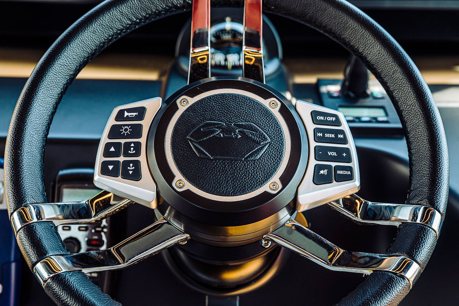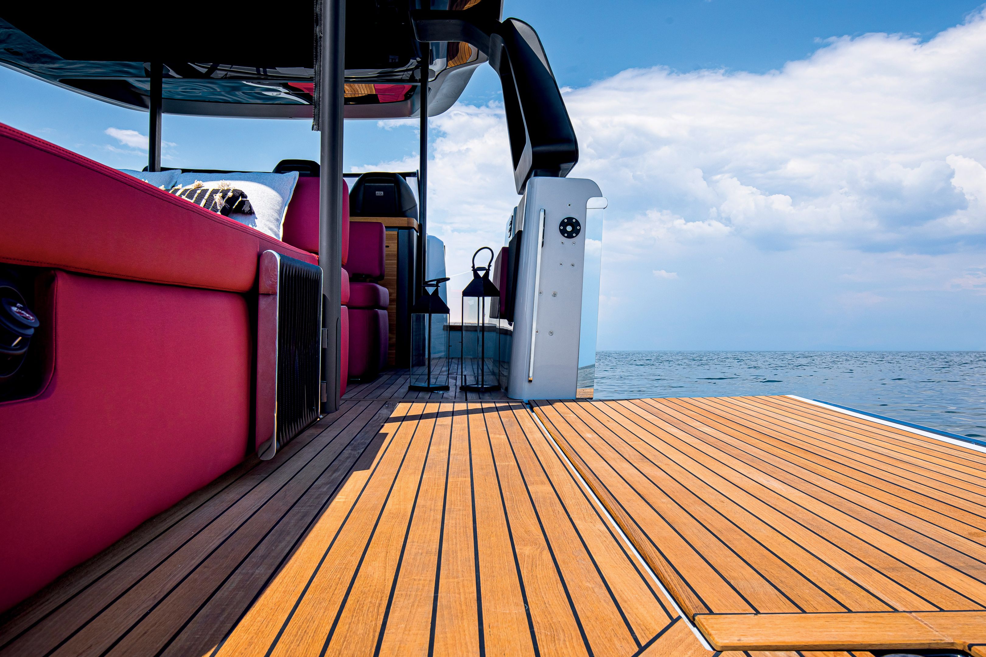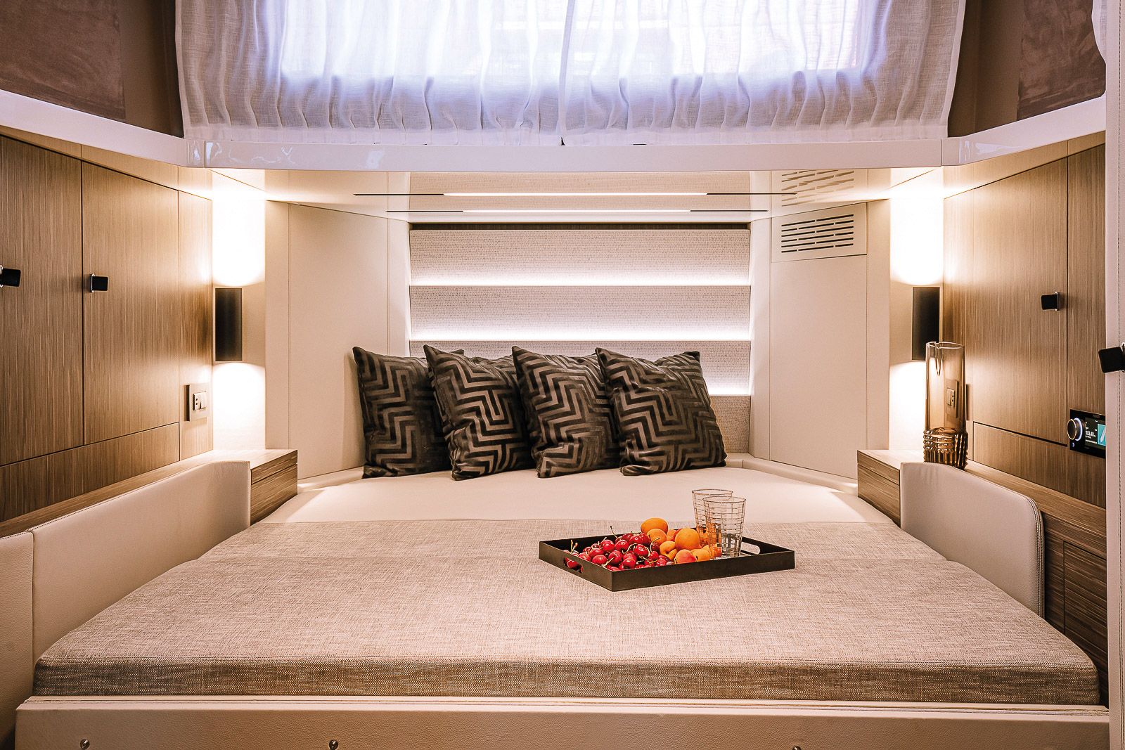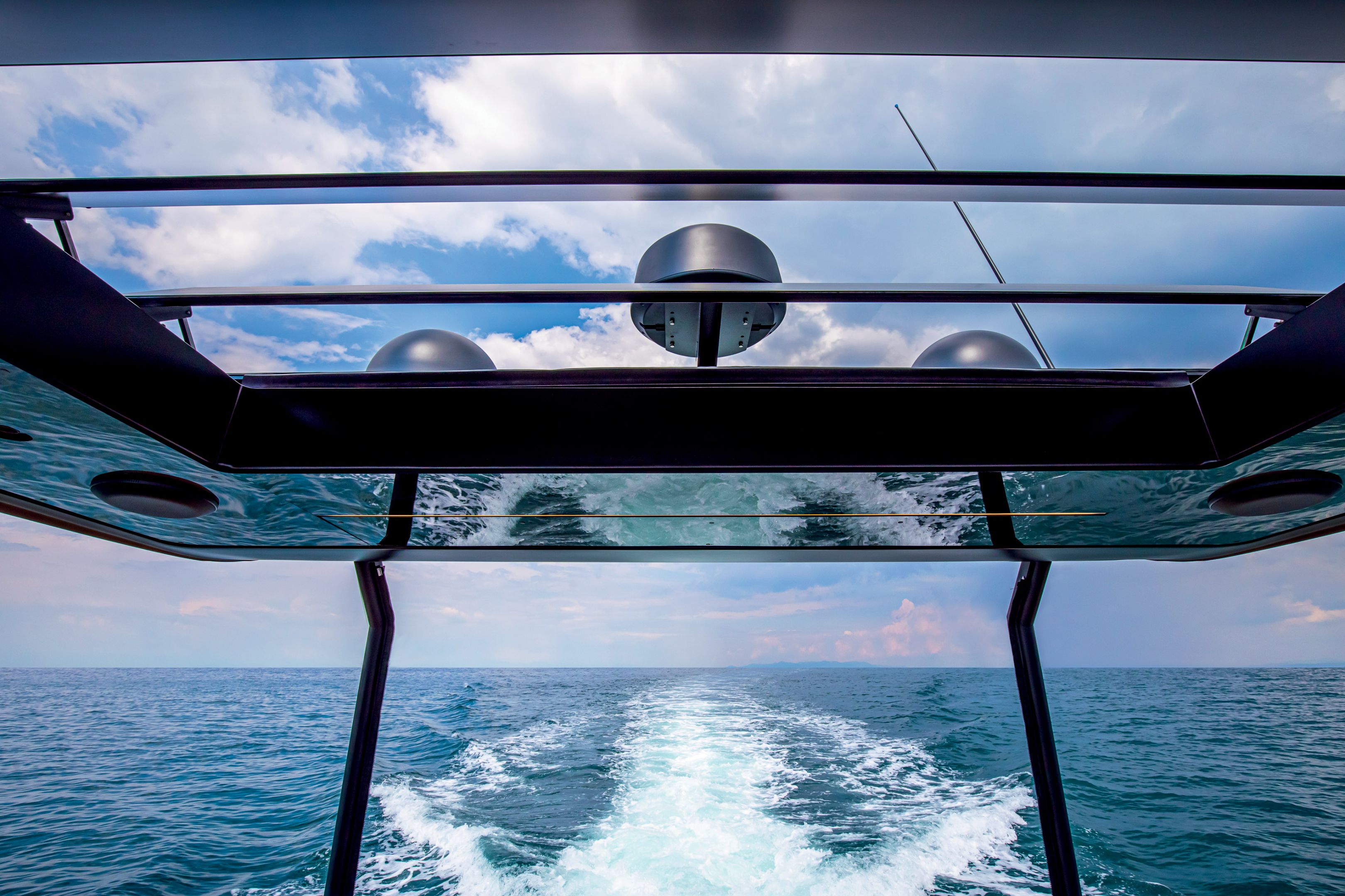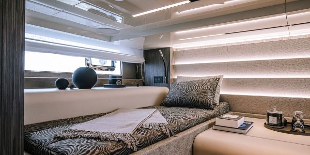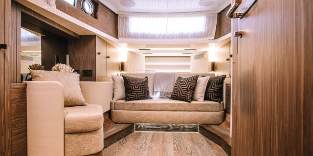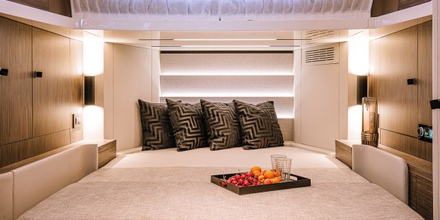 Christian Grande and the Centro Studi Ricerche Cranchi sculpt a deep-V hull into a floating oasis, with a vast cockpit and open deck designed as your personal entertainment haven. A custom wet bar with etched wood and stone surfaces anchors the party, while the 12-foot beam frames a plush owner’s cabin with handcrafted oak, a sleek shower, and hull portholes that catch coastal light. Every teak plank and stitched leather detail, honed by Italian artisans, exudes enduring sophistication.