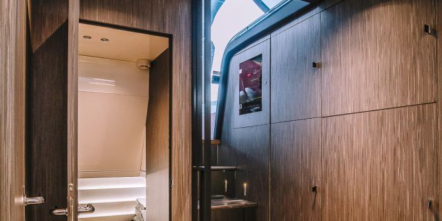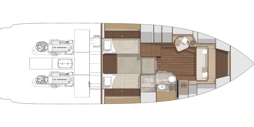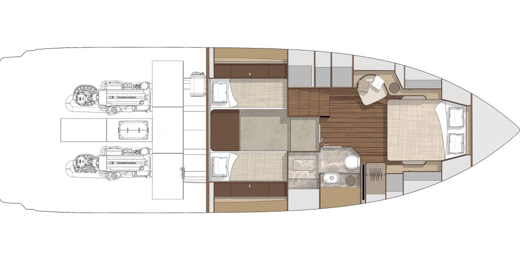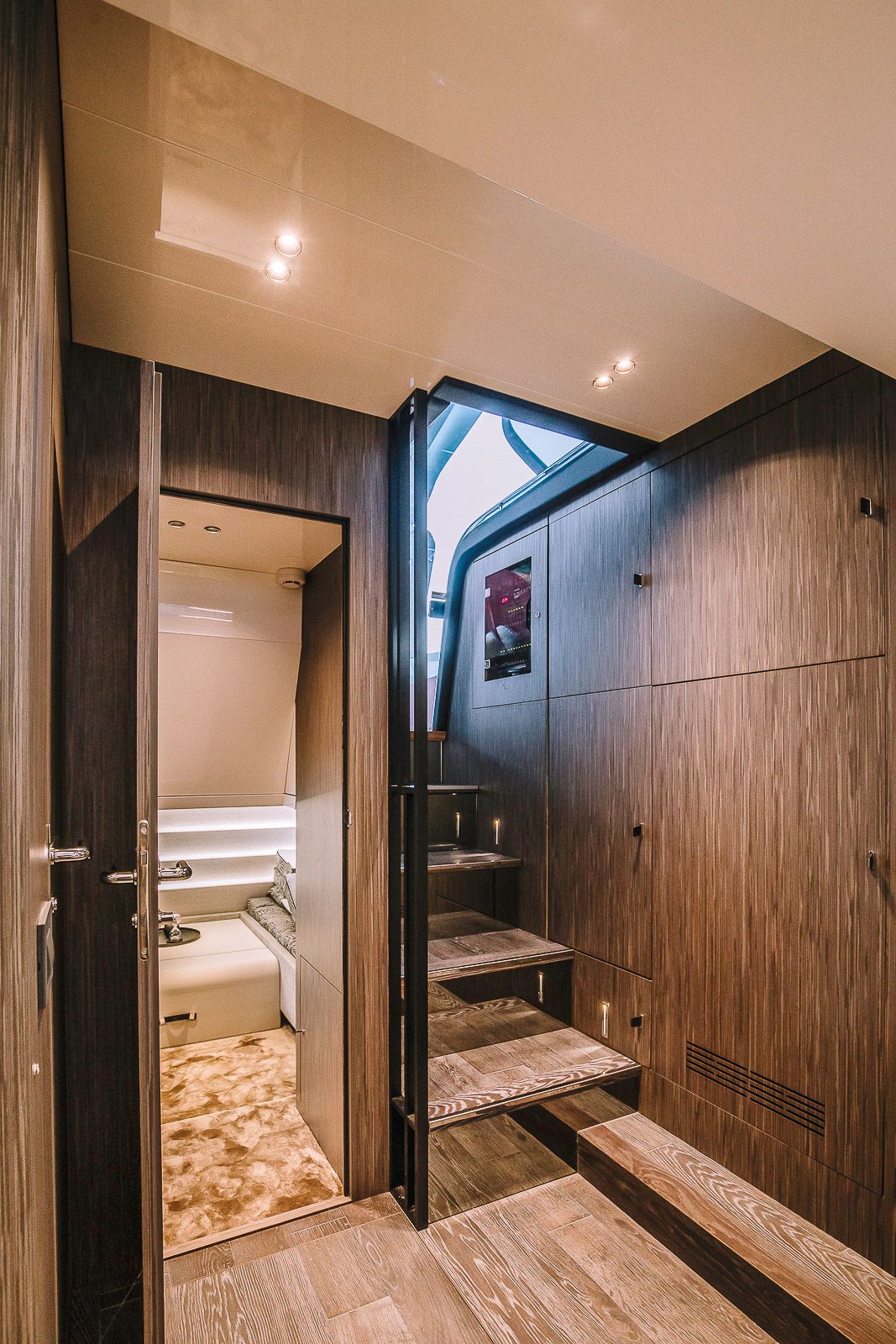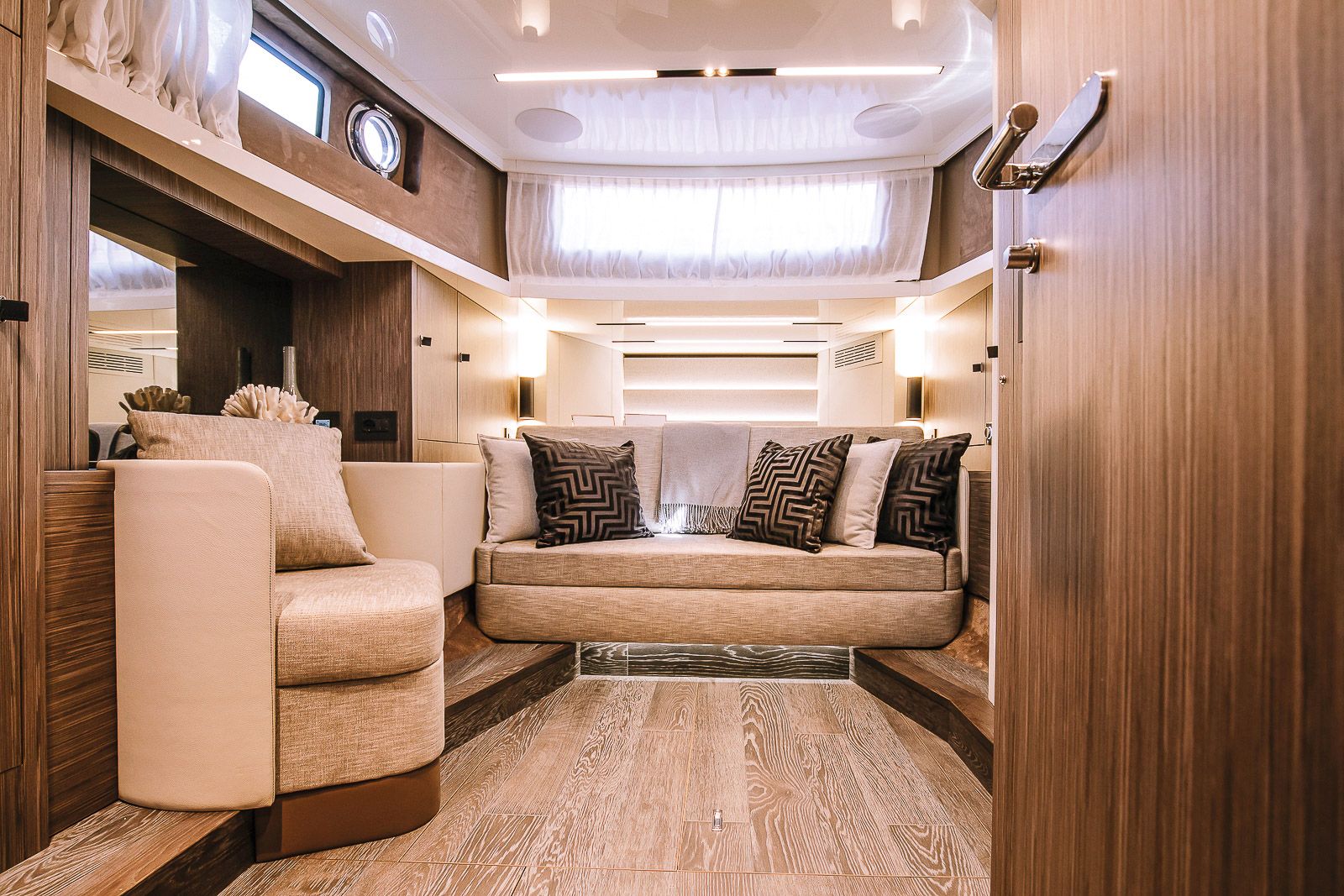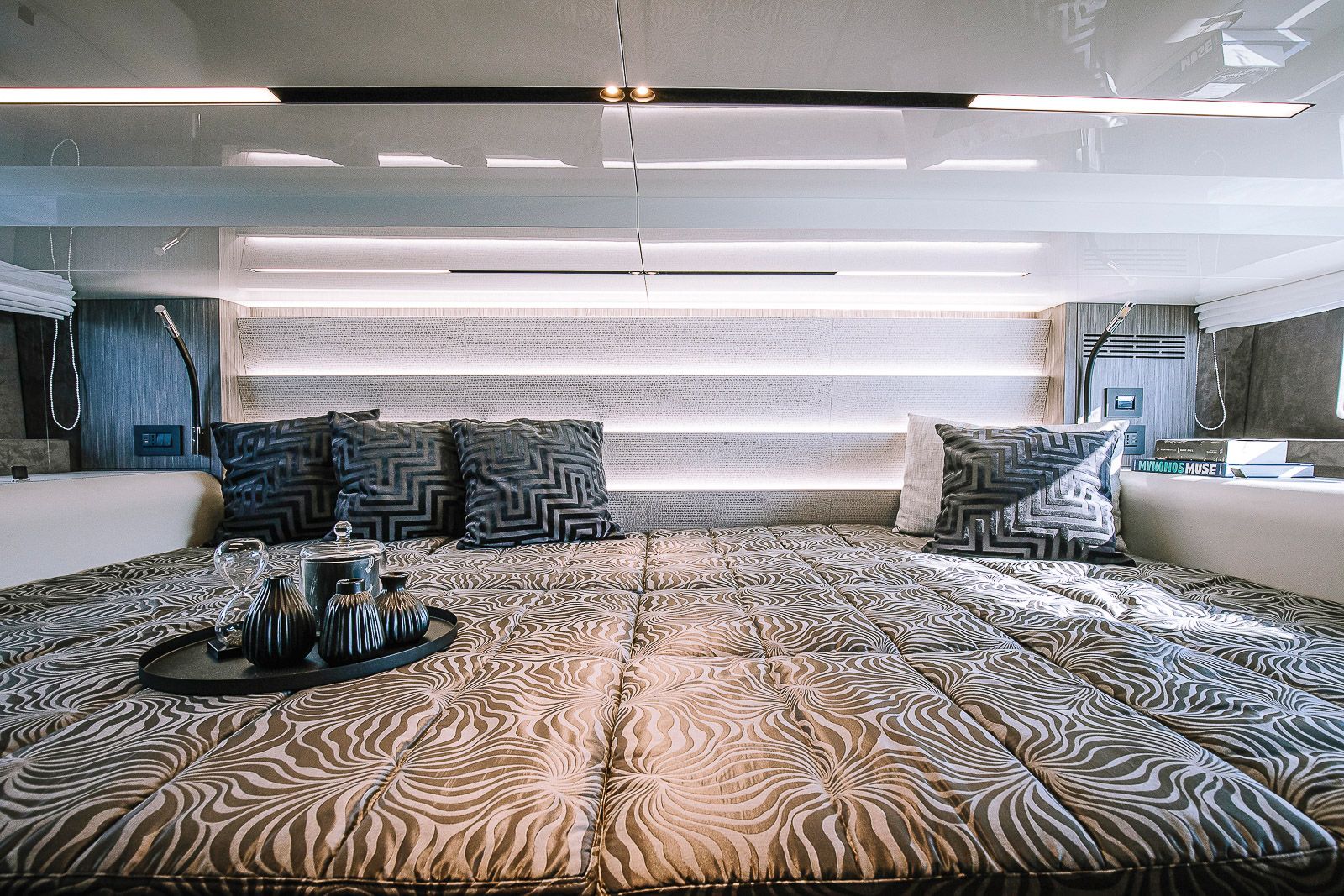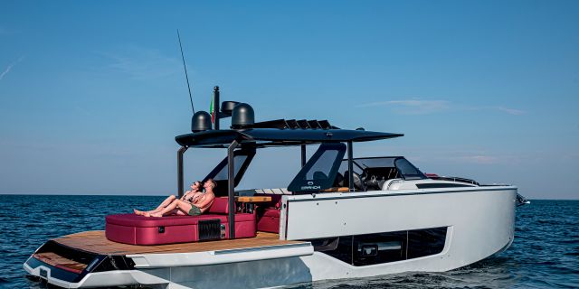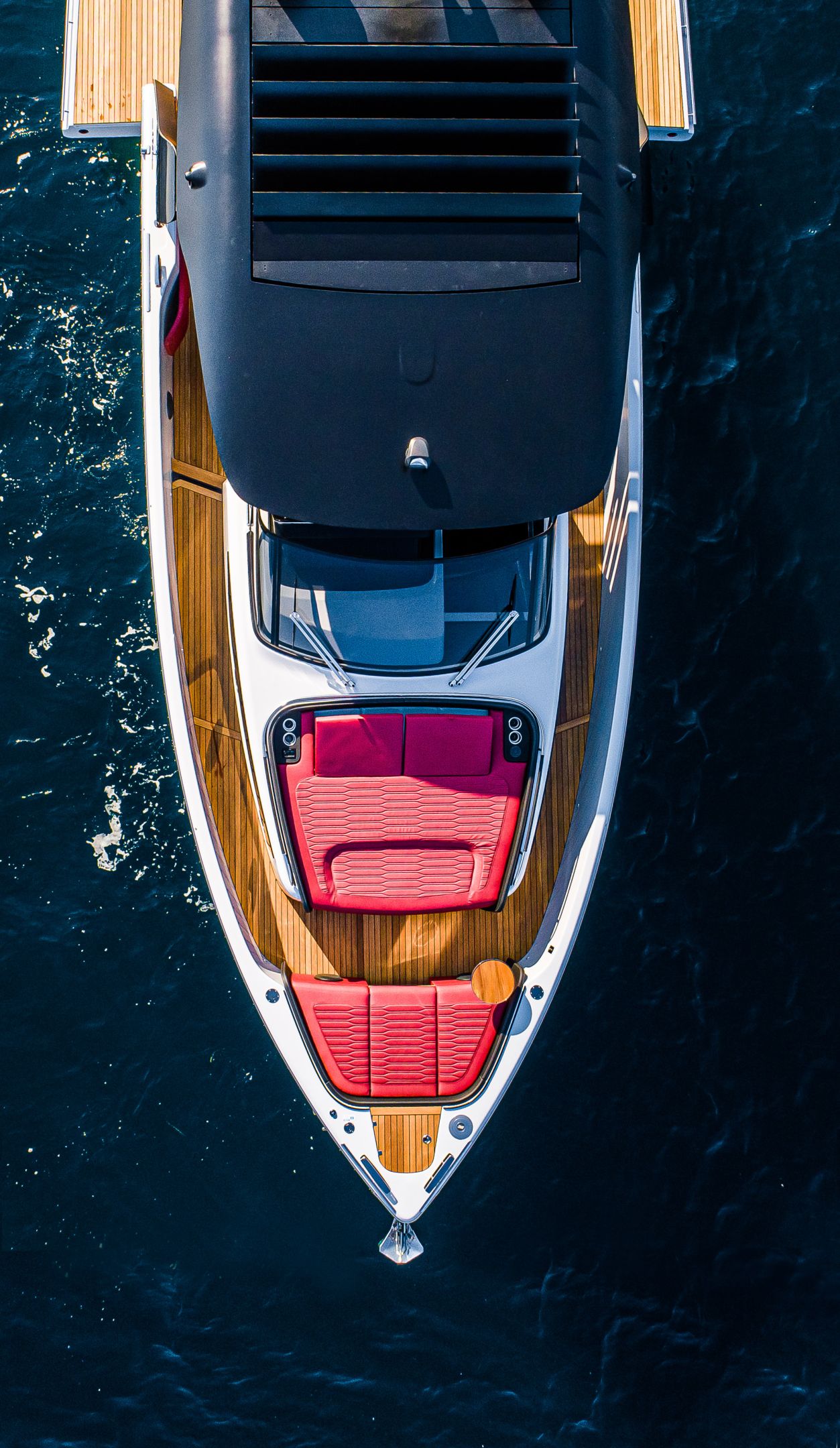 Christian Grande and the Centro Studi Ricerche Cranchi sculpt a deep-V hull into a floating oasis, with a vast cockpit and open deck designed as your personal entertainment haven. A custom wet bar with etched wood and stone surfaces anchors the party, while the 12-foot beam frames a plush owner’s cabin with handcrafted oak, a sleek shower, and hull portholes that catch coastal light. Every teak plank and stitched leather detail, honed by Italian artisans, exudes enduring sophistication.
