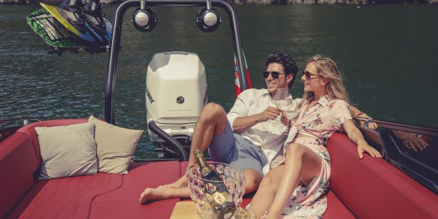 Designed and built on Lake Como, the Cranchi E26 Rider represents the best of Italian craftsmanship—elegant, functional, and effortlessly fun. Its wraparound windshield and deep seating create a secure, social environment for guests, while the convertible aft area transitions easily from sunpad to swim platform. The high-quality upholstery, polished stainless details, and thoughtful ergonomics showcase Cranchi’s attention to every curve and contour.