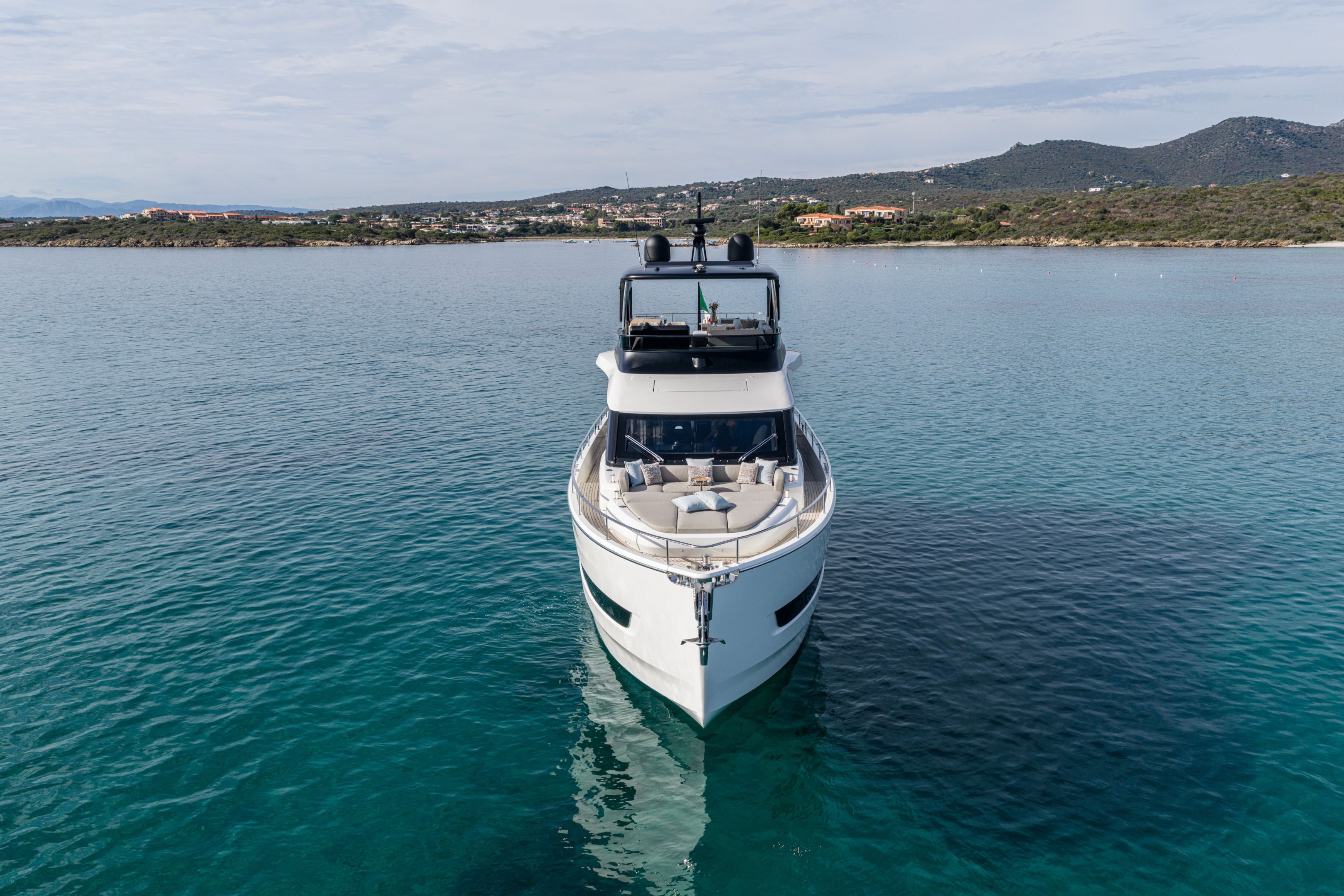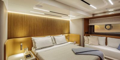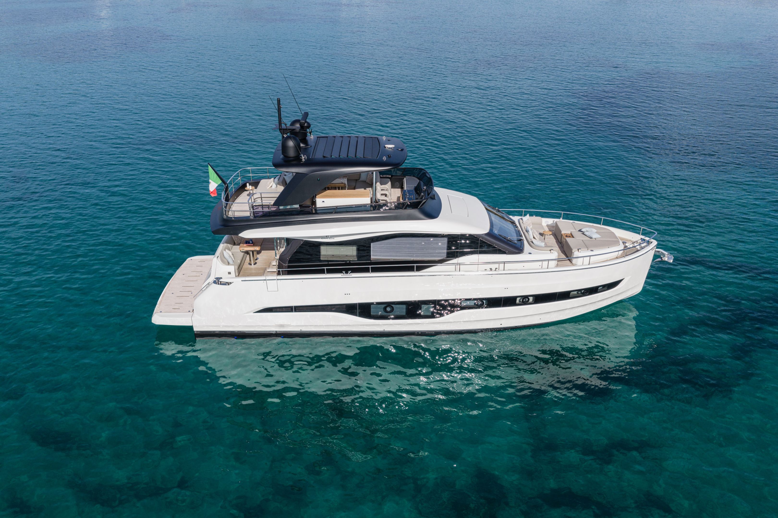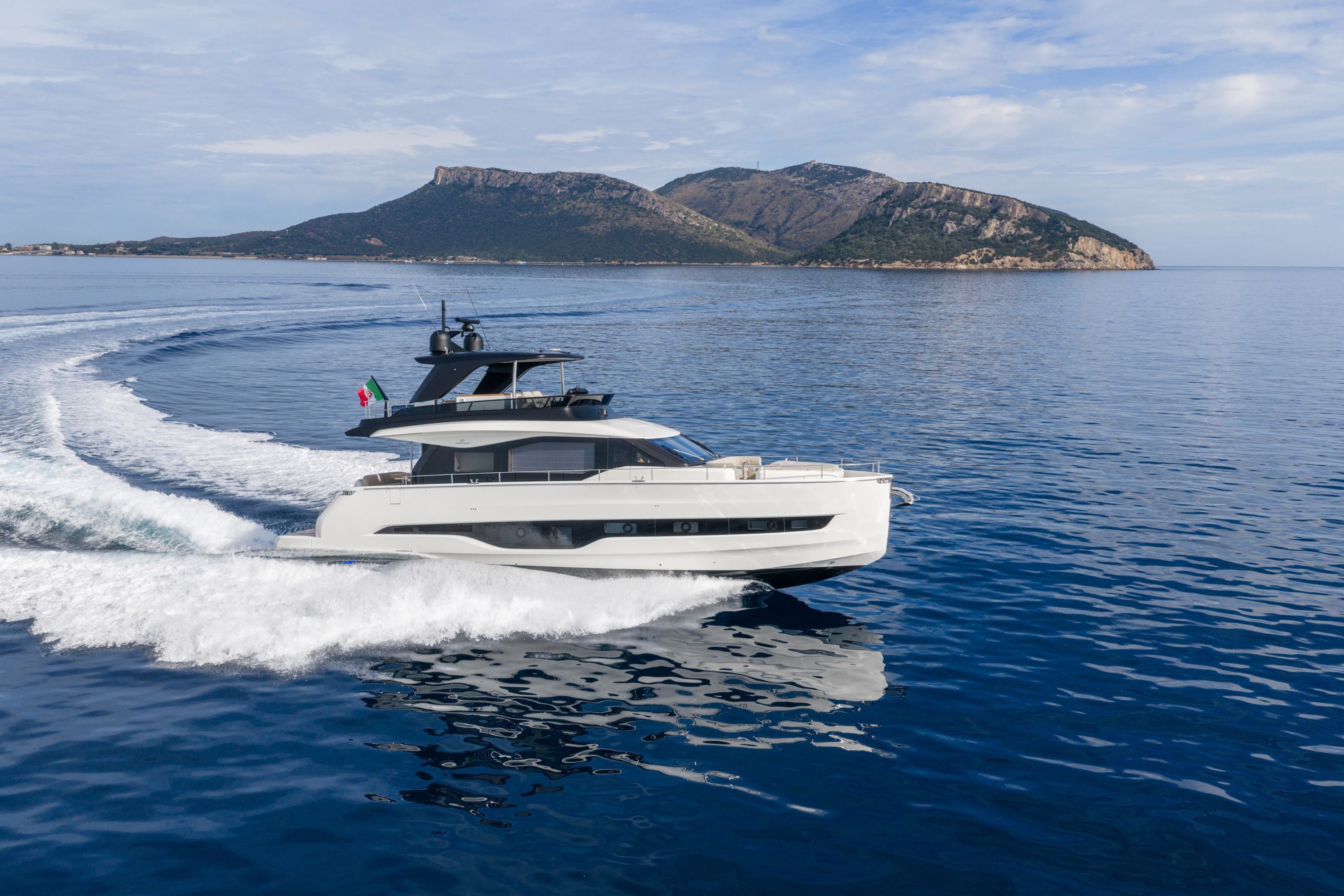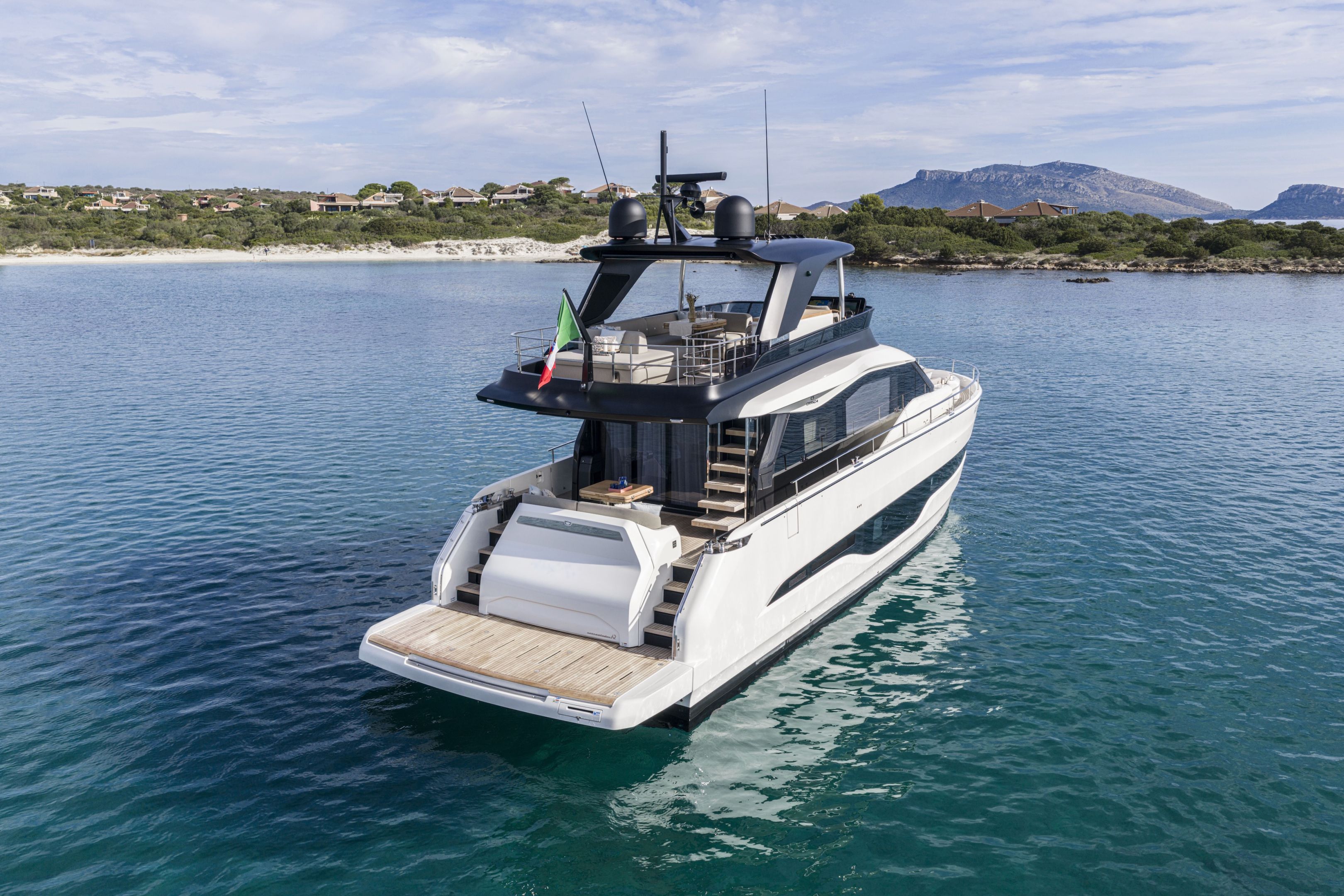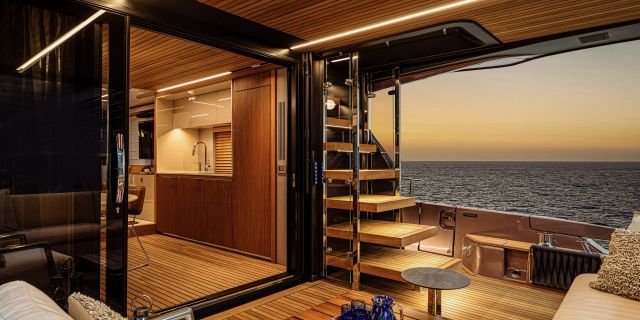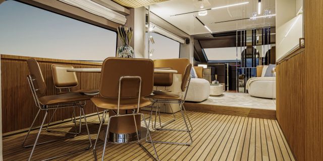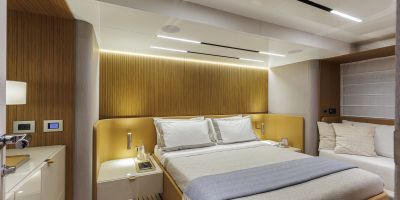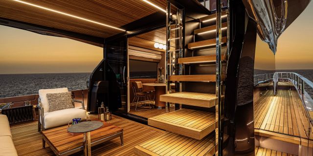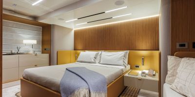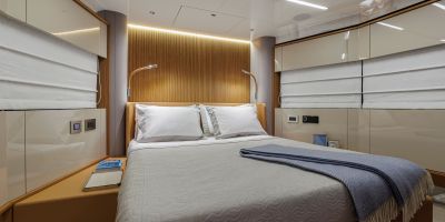 Christian Grande’s artistry transforms Aldo Cranchi’s robust hull into a masterpiece—sweeping glass doors merge saloon with cockpit, while hand-laid teak floors and a bespoke galley with marble counters elevate every moment. The 17-foot beam crafts an owner’s suite with custom walnut cabinetry, a spa-like ensuite with dual vanities, and expansive hull windows framing ocean vistas. Supple leather finishes and polished chrome accents reflect meticulous Italian craftsmanship.