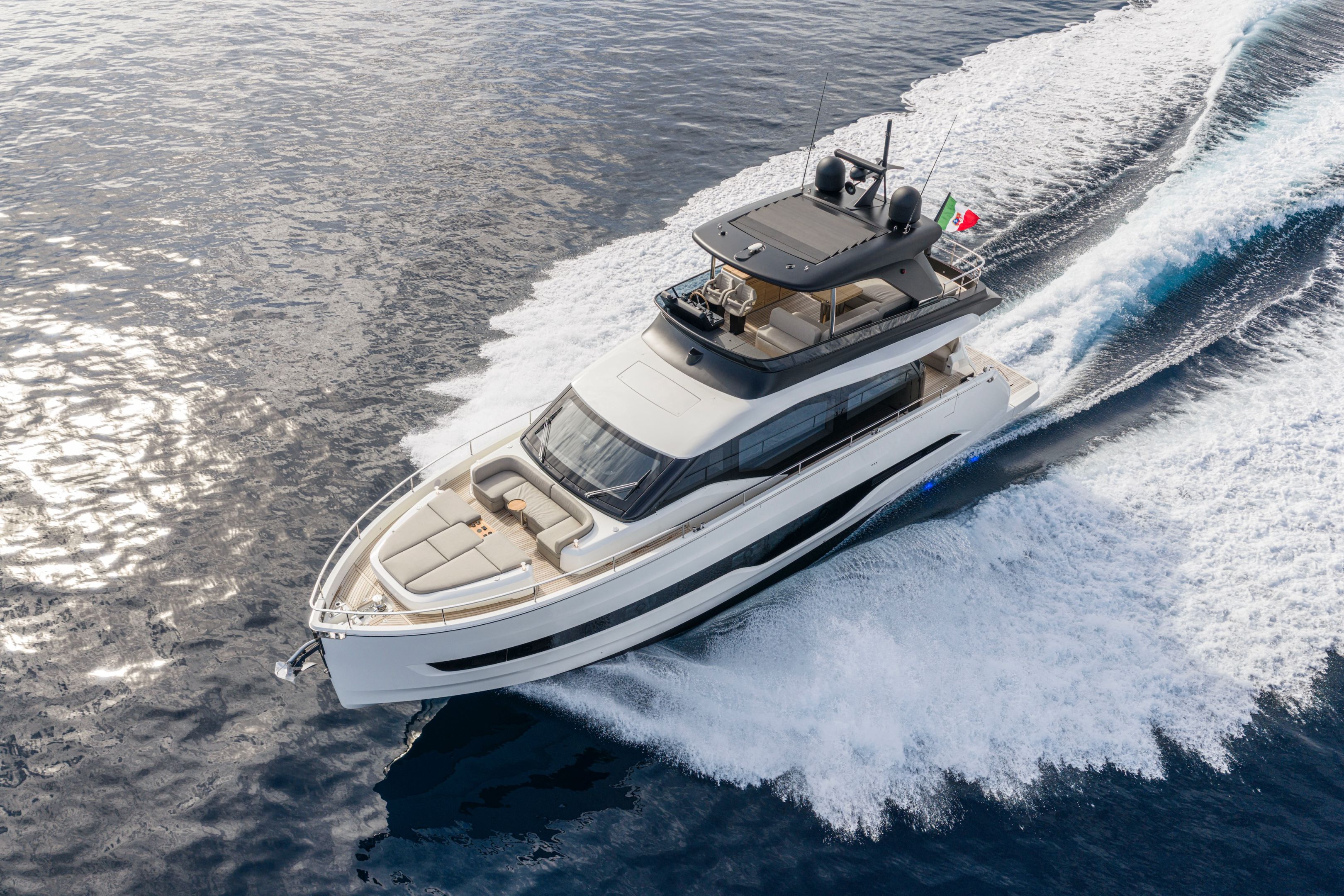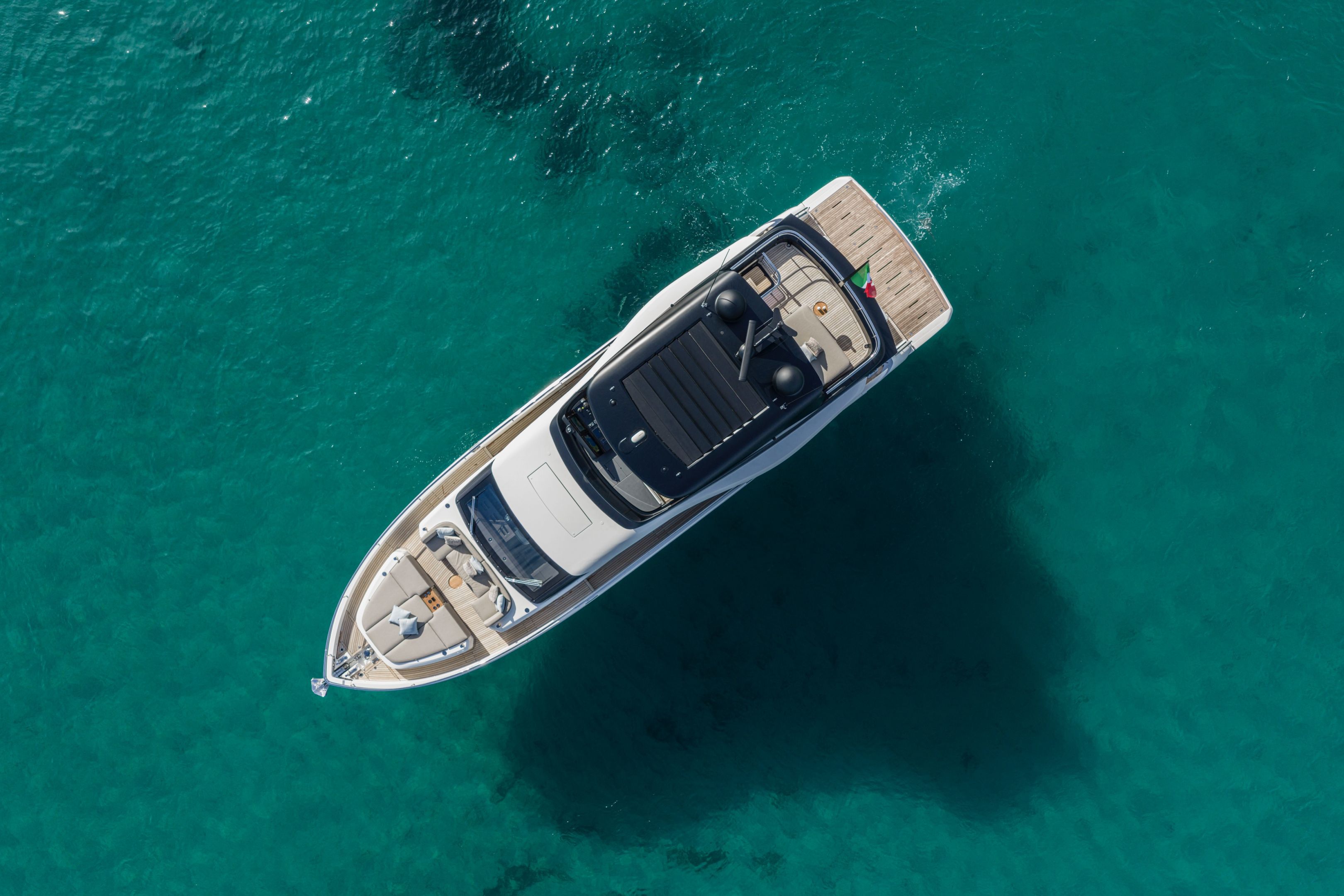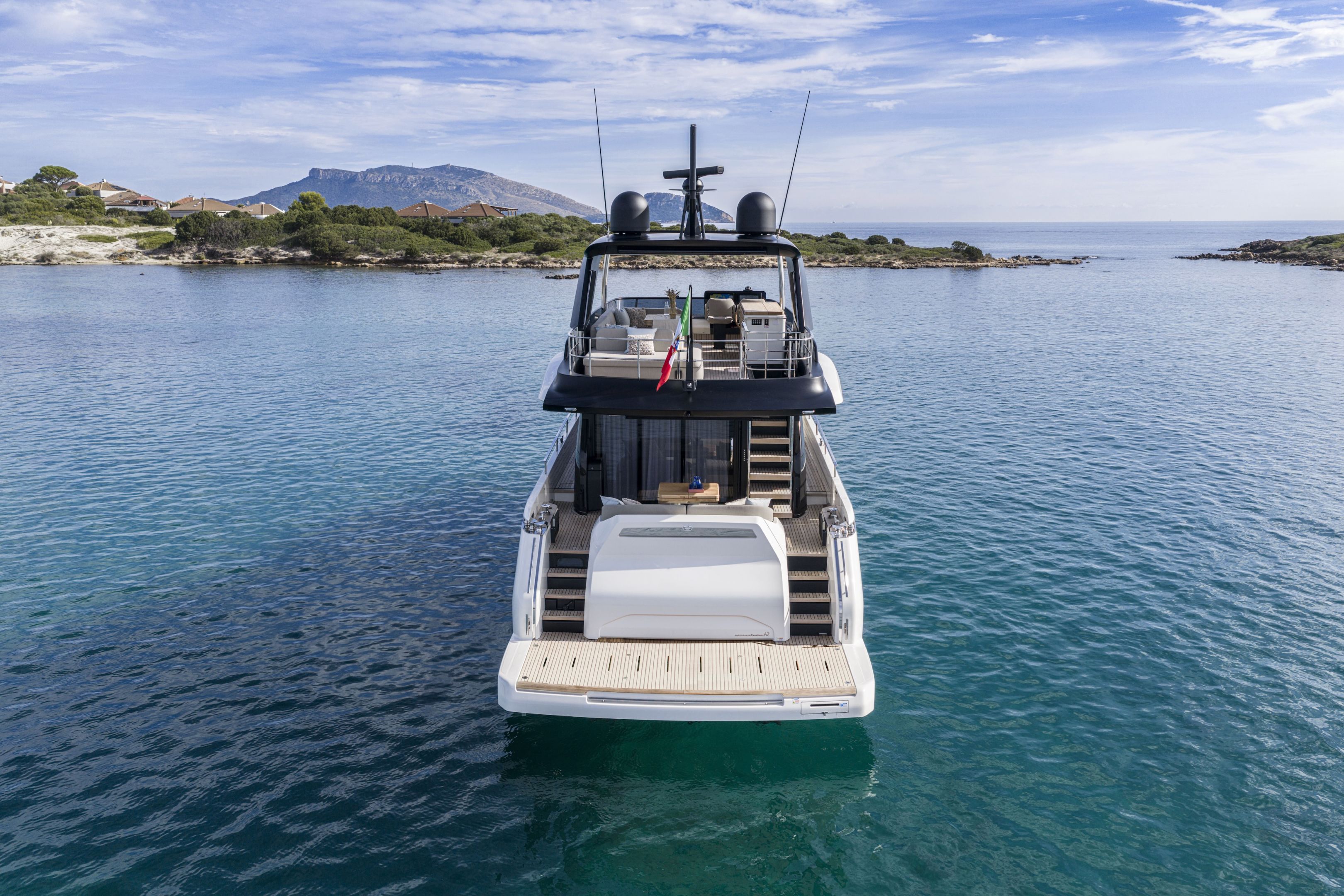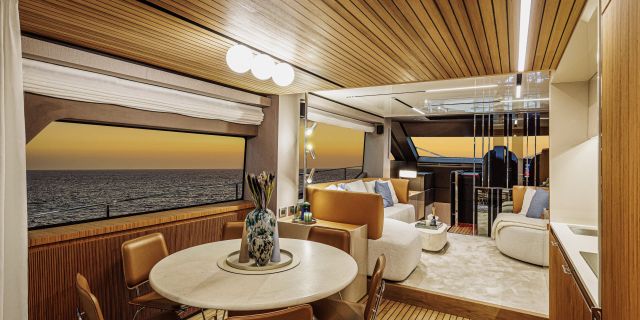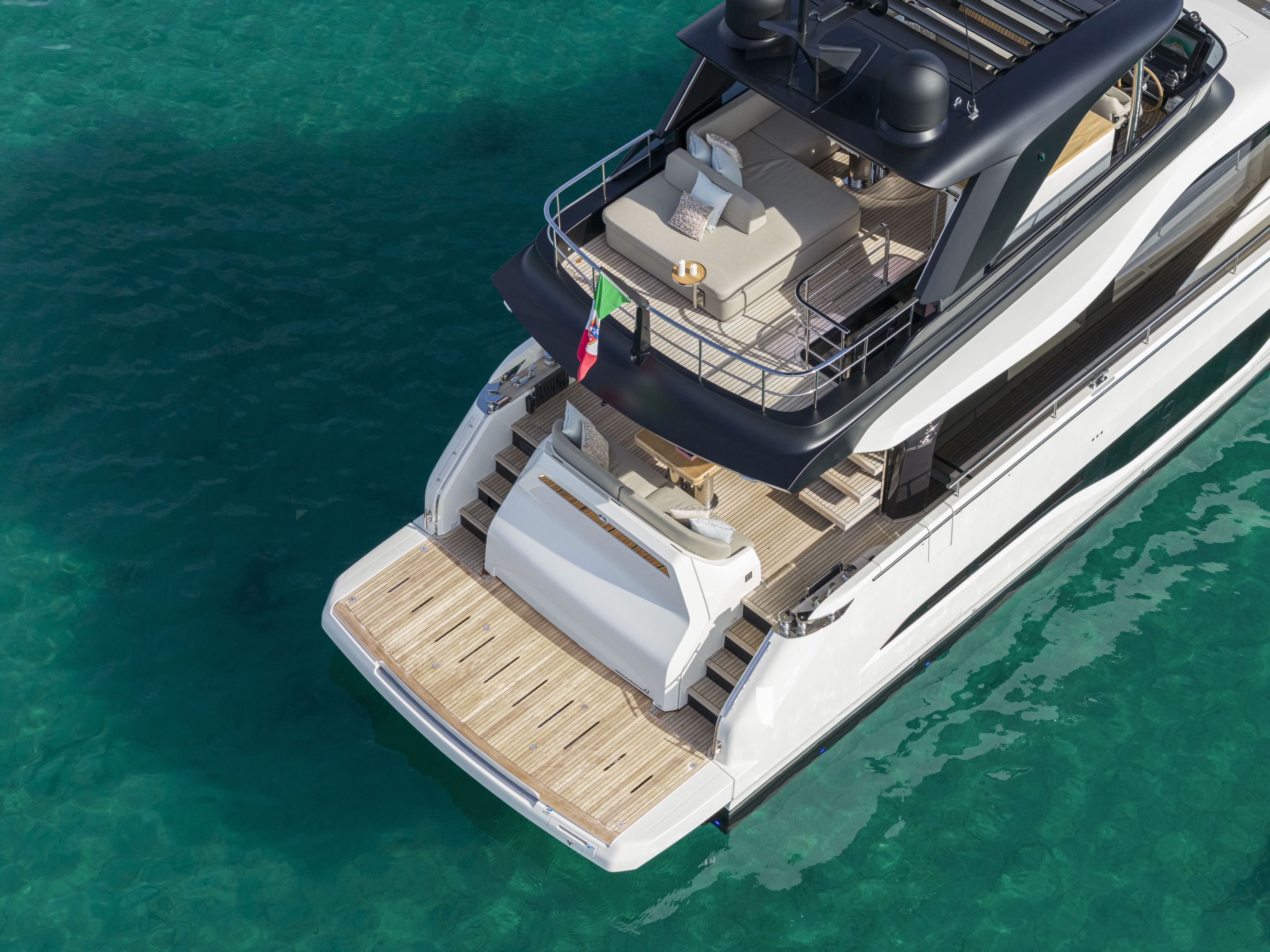 Christian Grande’s artistry transforms Aldo Cranchi’s robust hull into a masterpiece—sweeping glass doors merge saloon with cockpit, while hand-laid teak floors and a bespoke galley with marble counters elevate every moment. The 17-foot beam crafts an owner’s suite with custom walnut cabinetry, a spa-like ensuite with dual vanities, and expansive hull windows framing ocean vistas. Supple leather finishes and polished chrome accents reflect meticulous Italian craftsmanship.