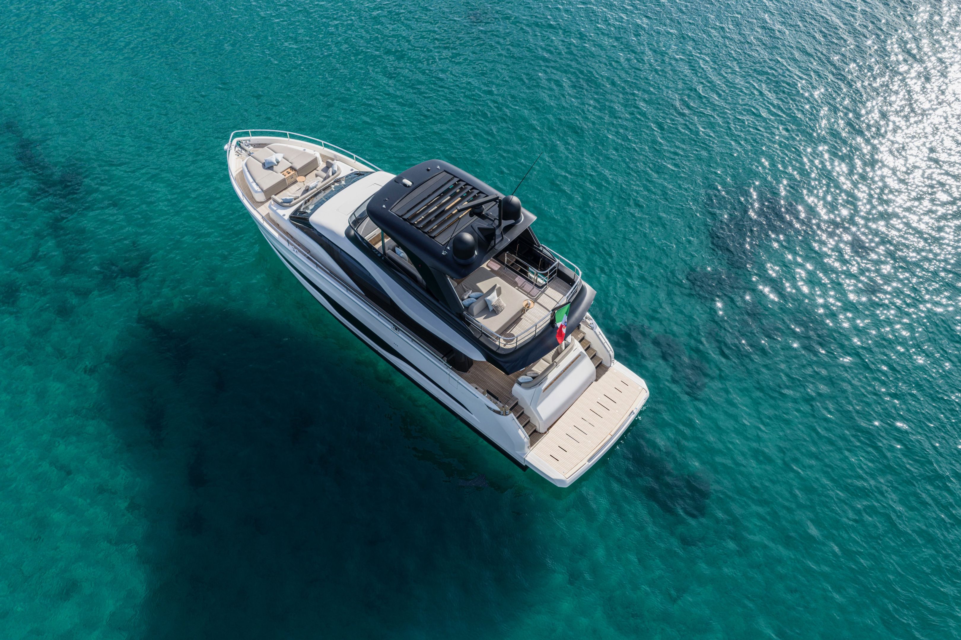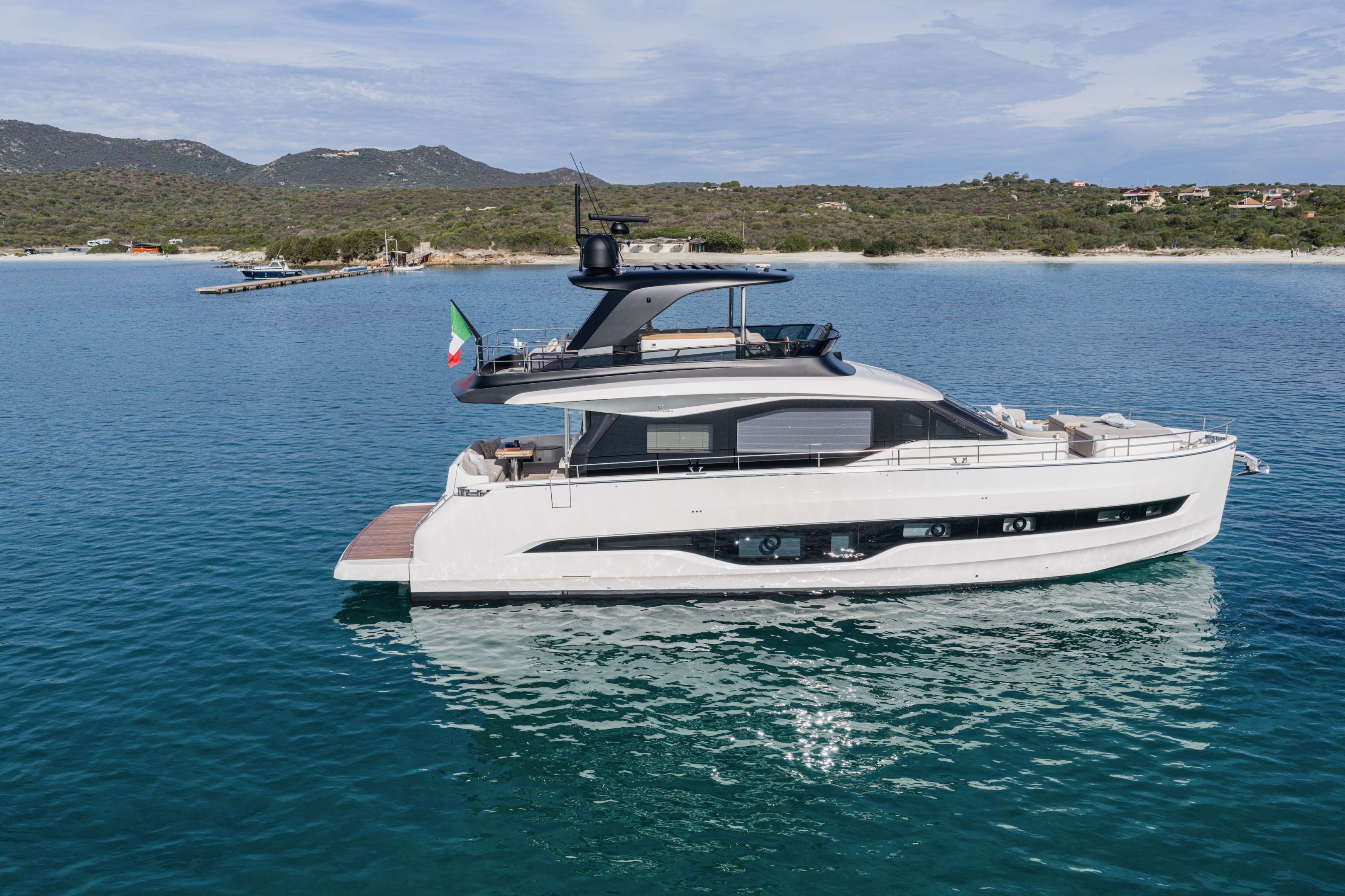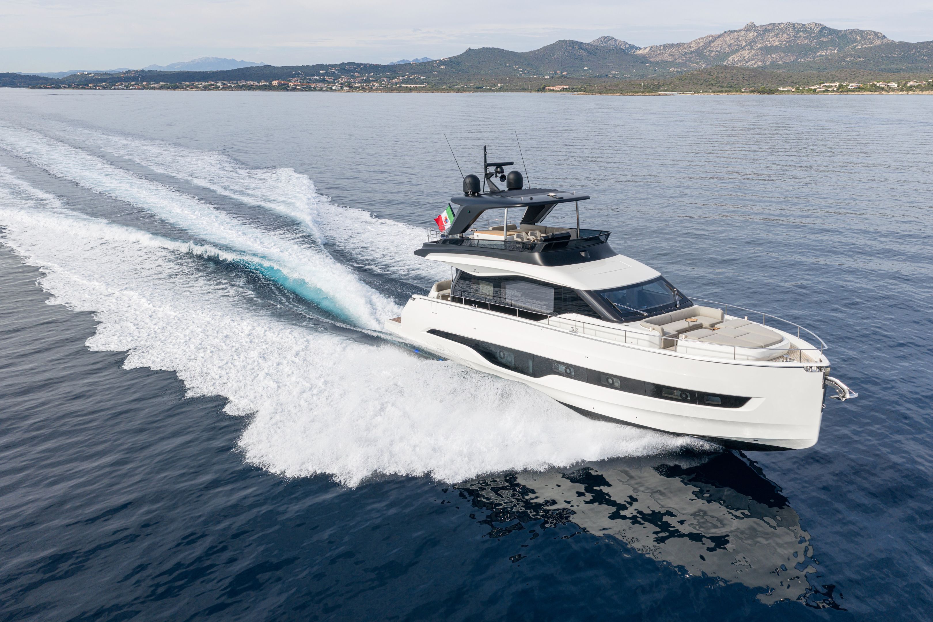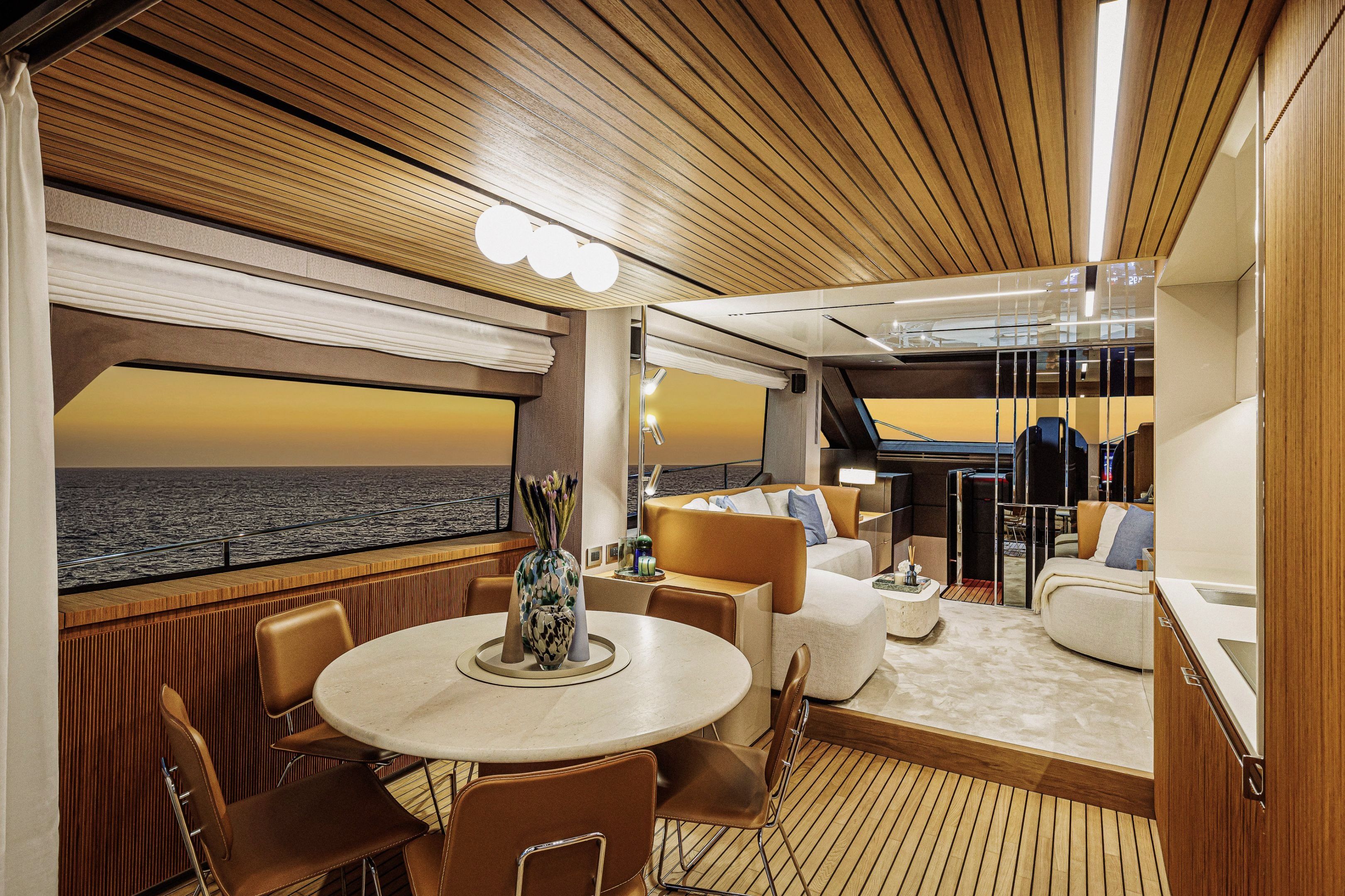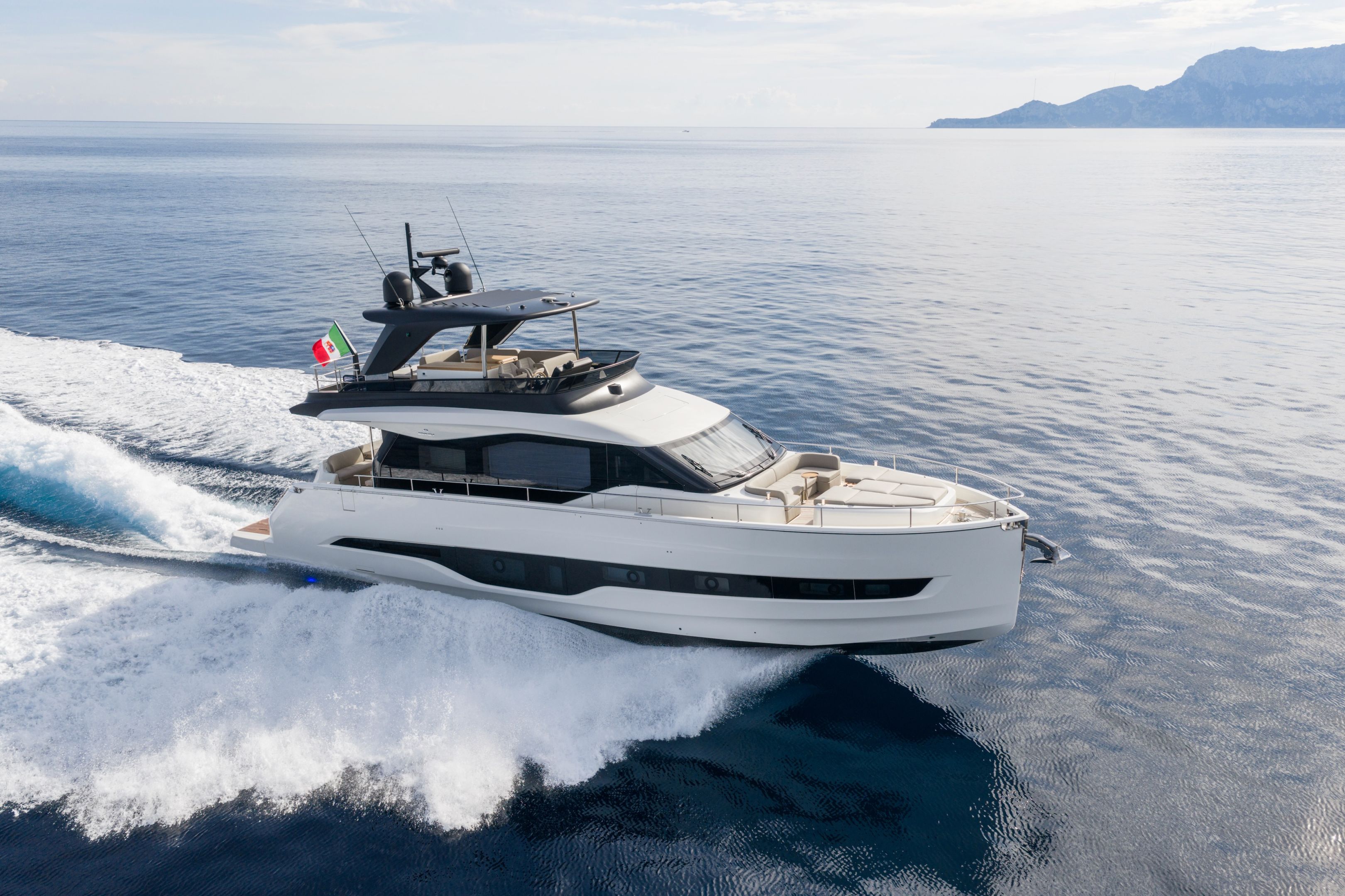 Christian Grande’s artistry transforms Aldo Cranchi’s robust hull into a masterpiece—sweeping glass doors merge saloon with cockpit, while hand-laid teak floors and a bespoke galley with marble counters elevate every moment. The 17-foot beam crafts an owner’s suite with custom walnut cabinetry, a spa-like ensuite with dual vanities, and expansive hull windows framing ocean vistas. Supple leather finishes and polished chrome accents reflect meticulous Italian craftsmanship.