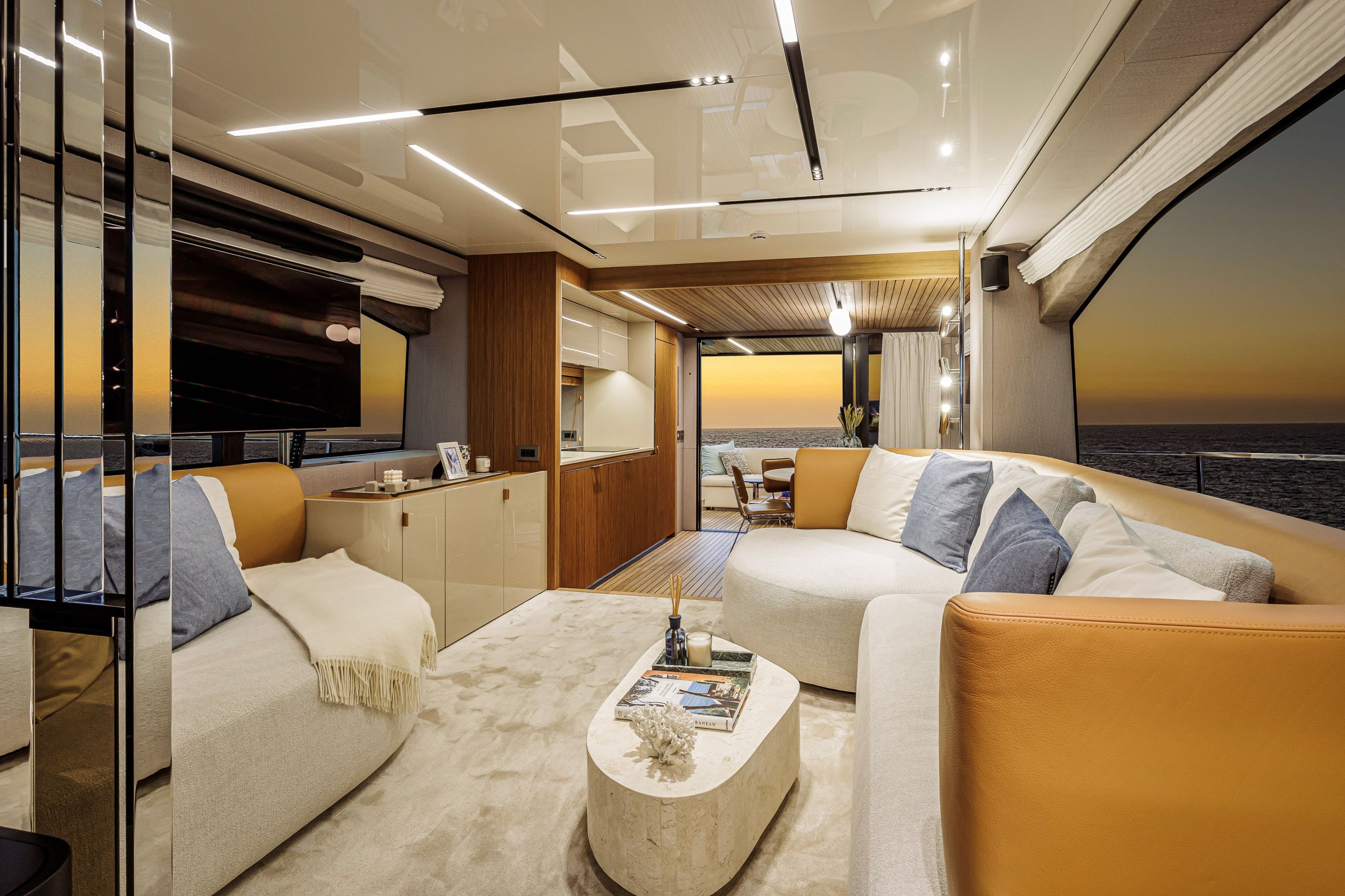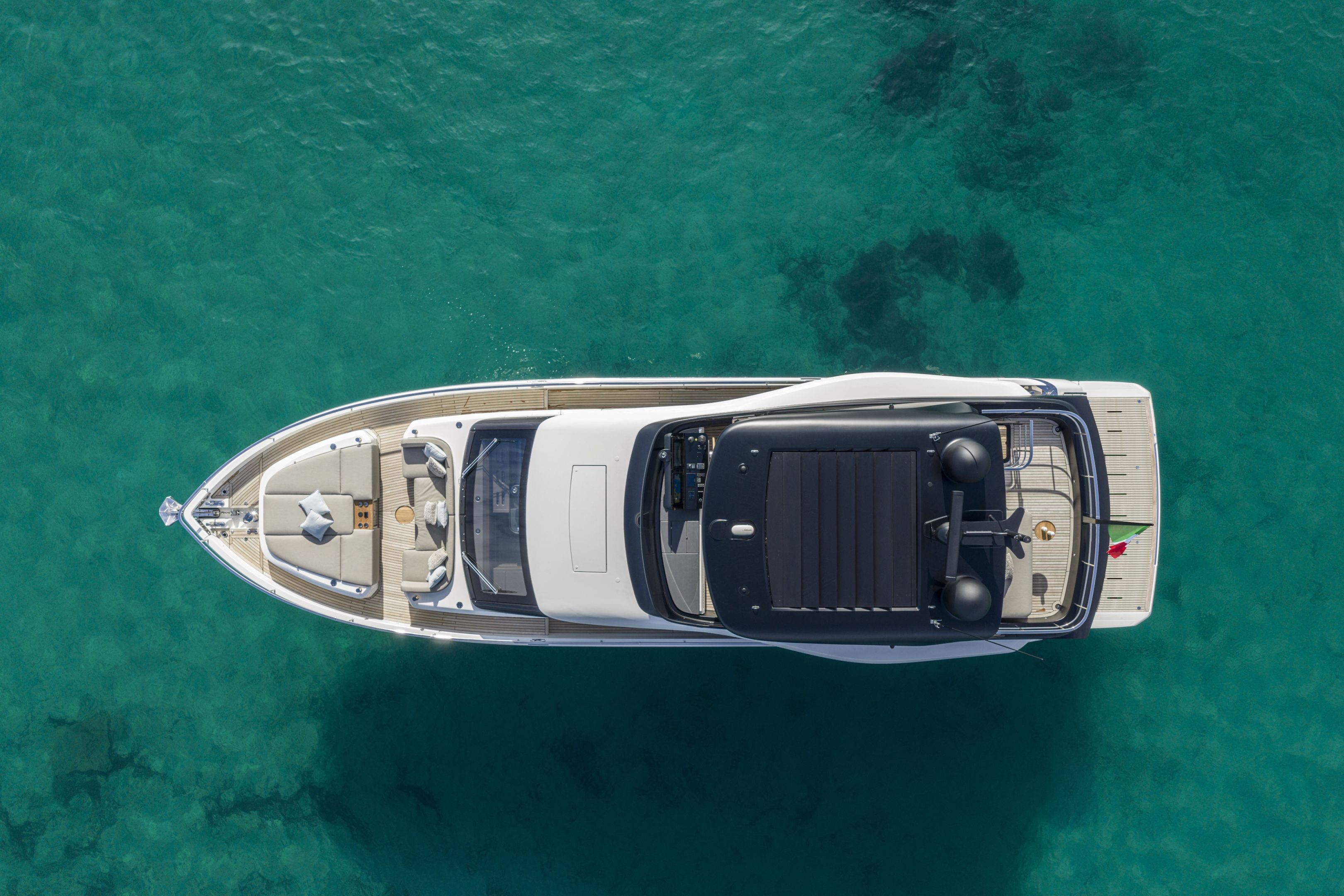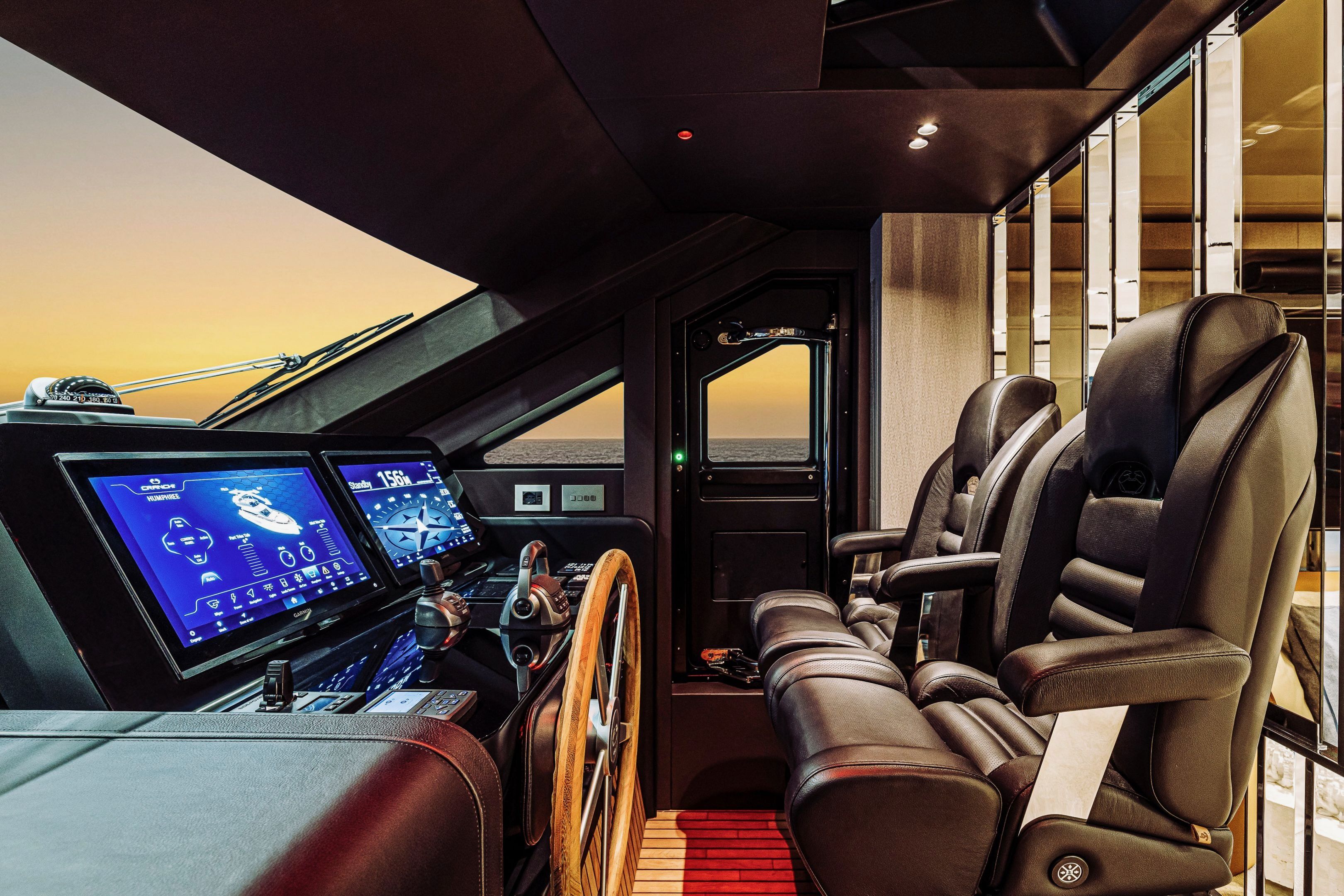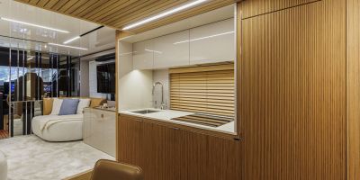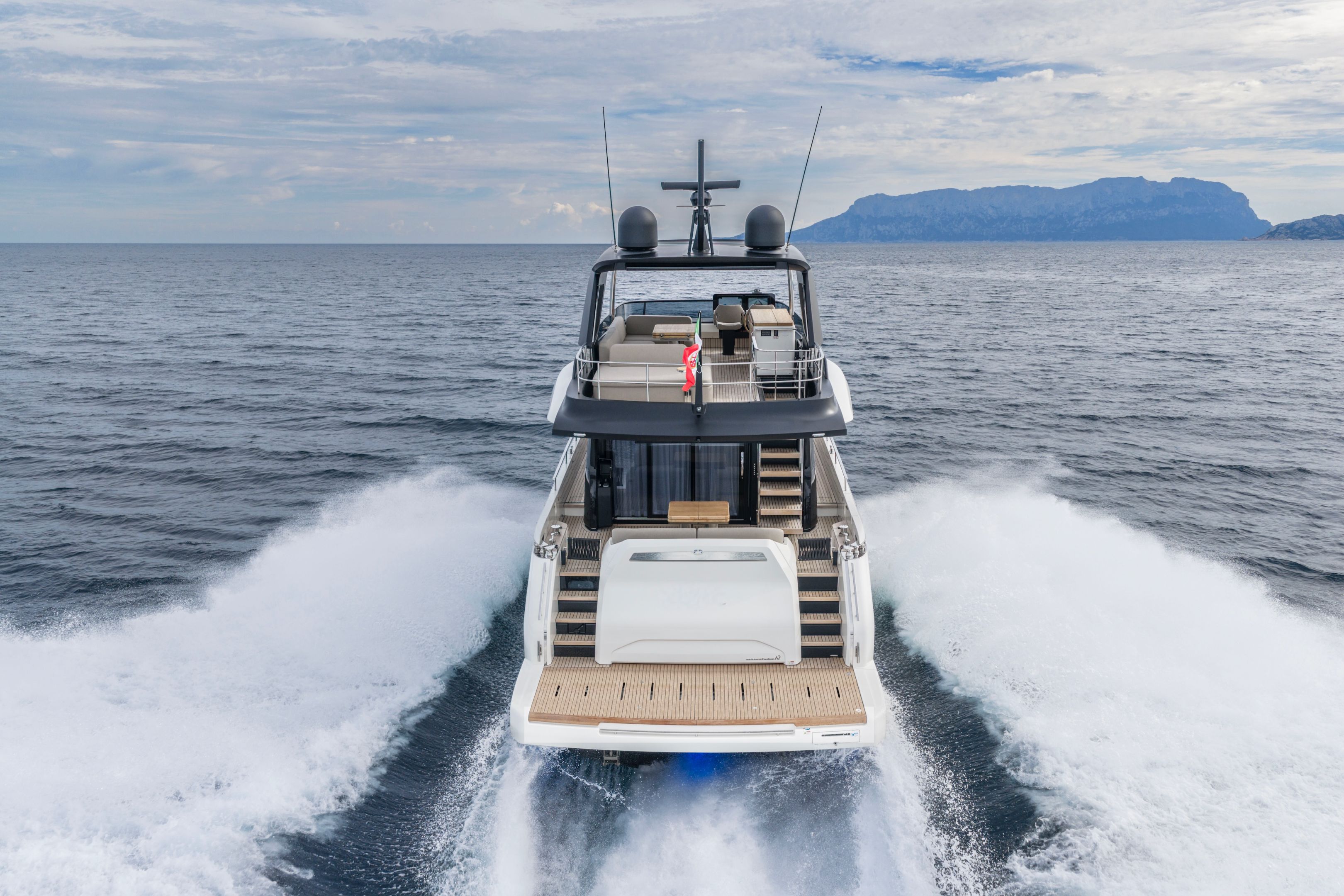 Christian Grande’s artistry transforms Aldo Cranchi’s robust hull into a masterpiece—sweeping glass doors merge saloon with cockpit, while hand-laid teak floors and a bespoke galley with marble counters elevate every moment. The 17-foot beam crafts an owner’s suite with custom walnut cabinetry, a spa-like ensuite with dual vanities, and expansive hull windows framing ocean vistas. Supple leather finishes and polished chrome accents reflect meticulous Italian craftsmanship.