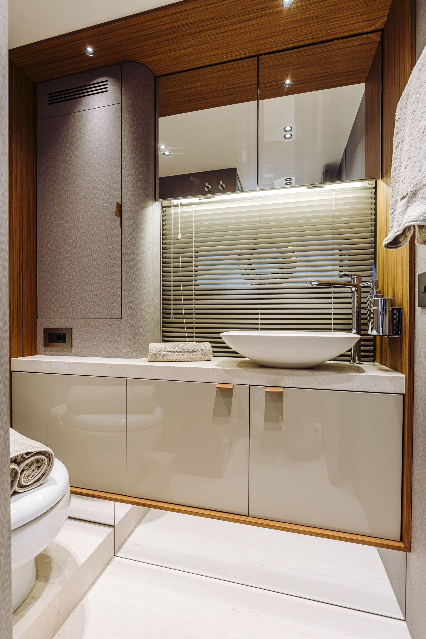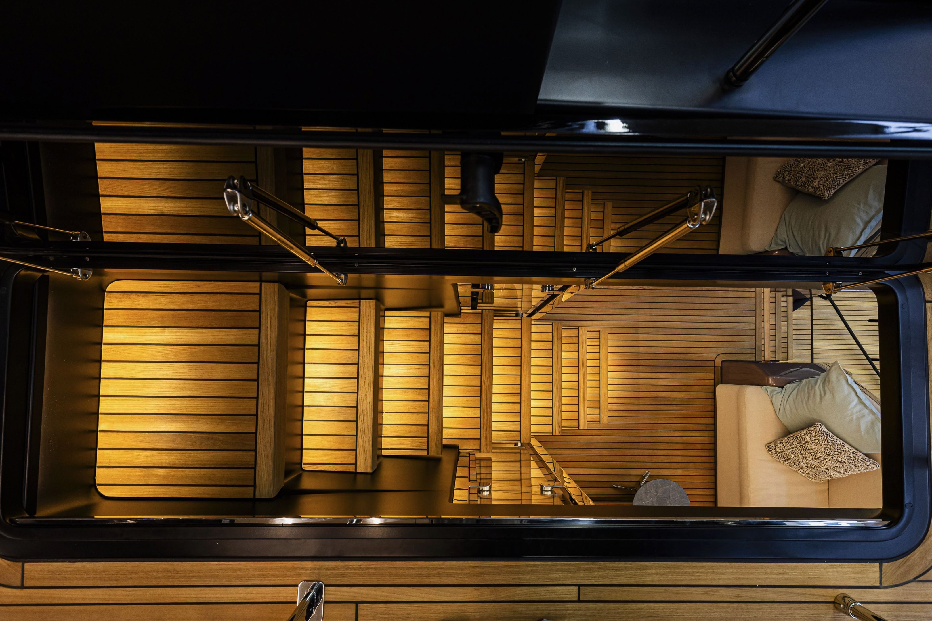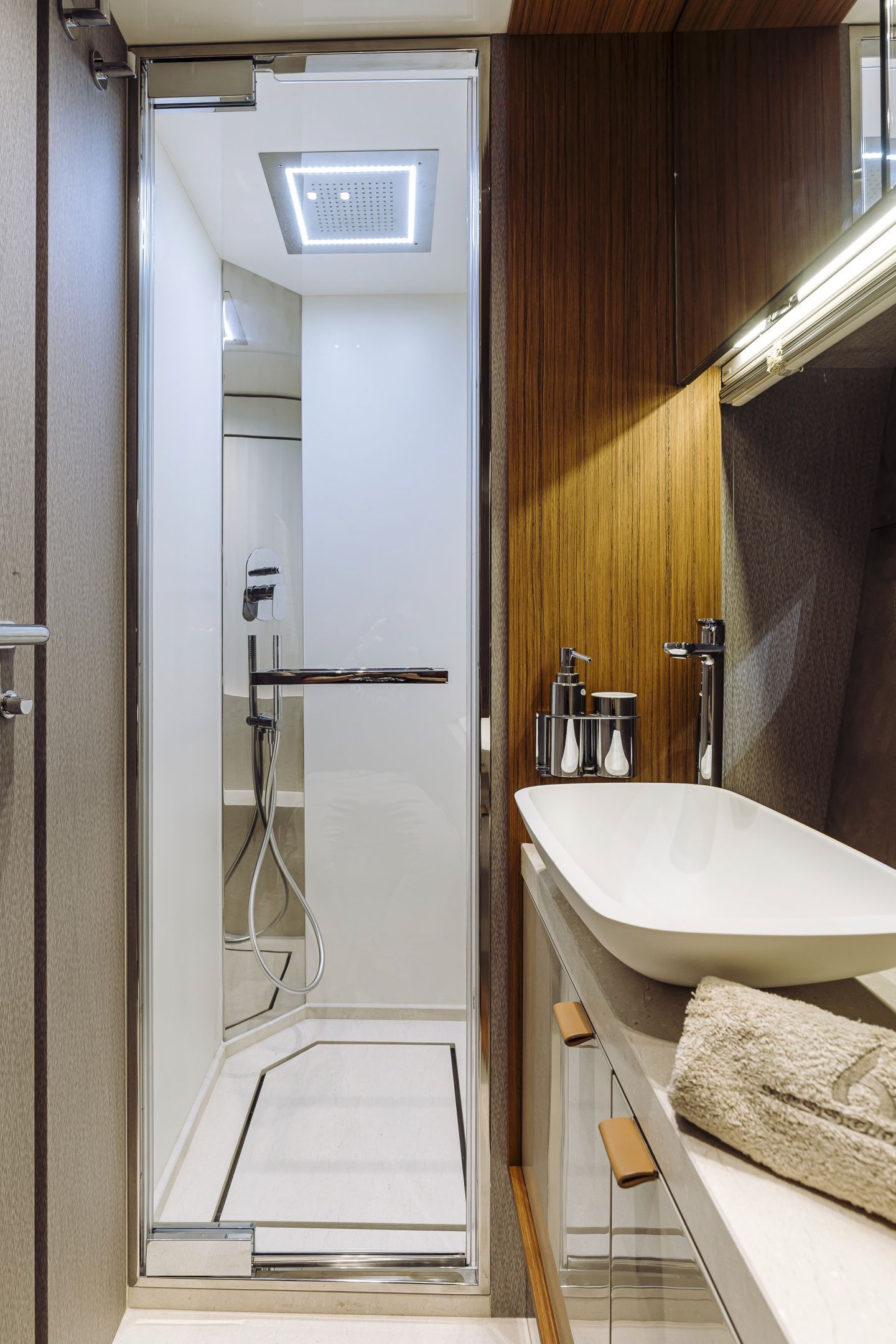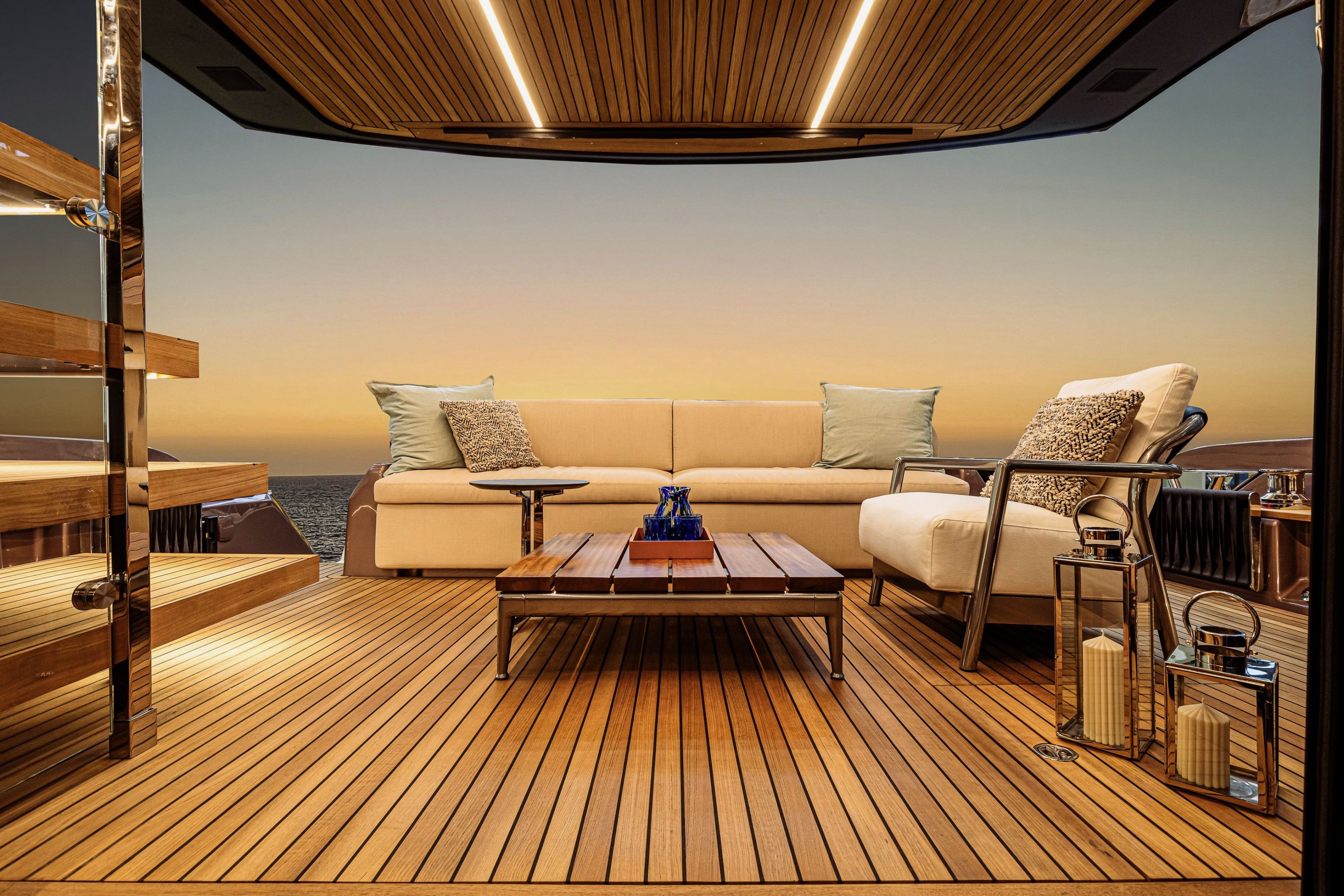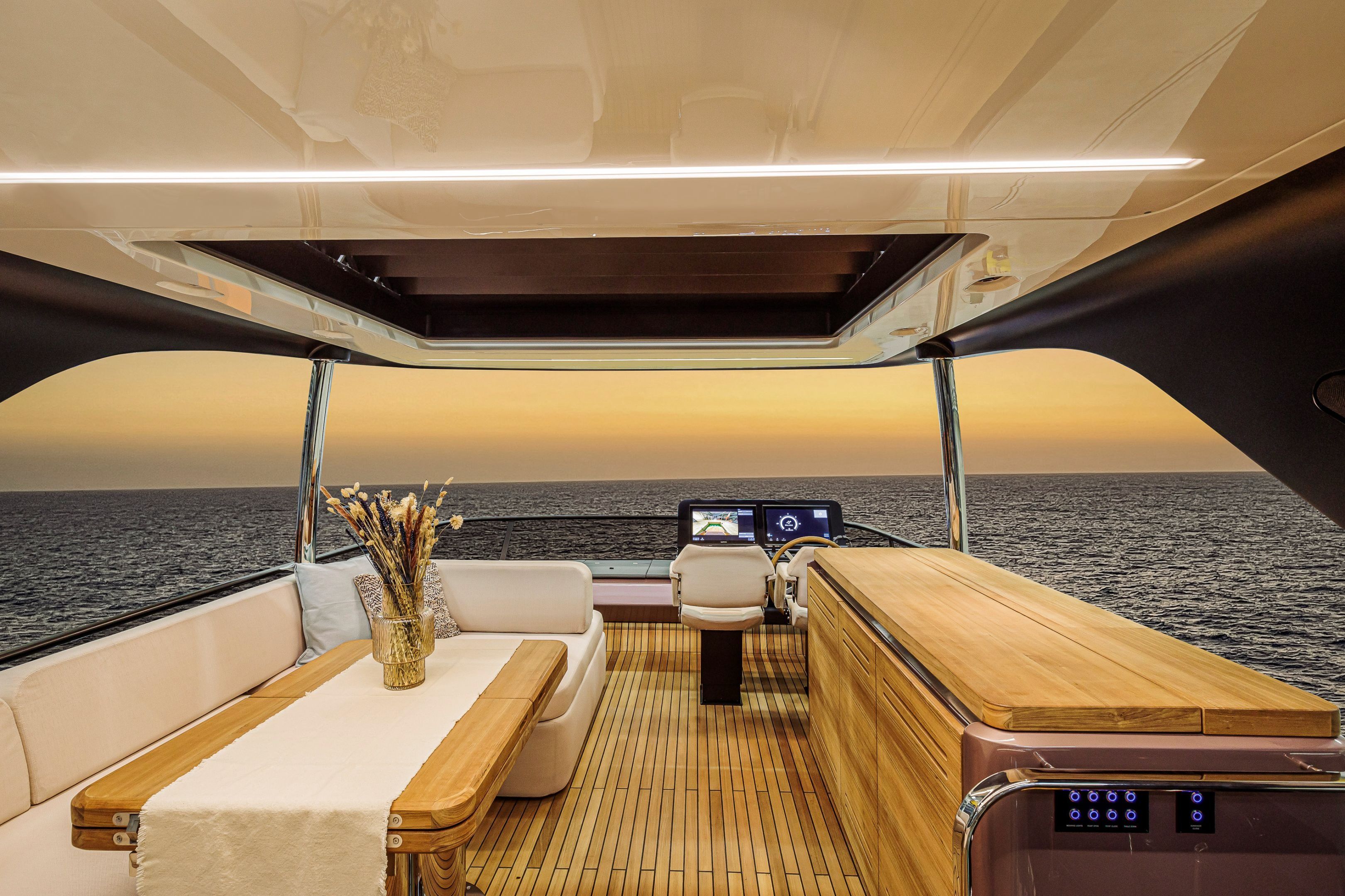 Christian Grande’s artistry transforms Aldo Cranchi’s robust hull into a masterpiece—sweeping glass doors merge saloon with cockpit, while hand-laid teak floors and a bespoke galley with marble counters elevate every moment. The 17-foot beam crafts an owner’s suite with custom walnut cabinetry, a spa-like ensuite with dual vanities, and expansive hull windows framing ocean vistas. Supple leather finishes and polished chrome accents reflect meticulous Italian craftsmanship.