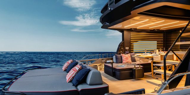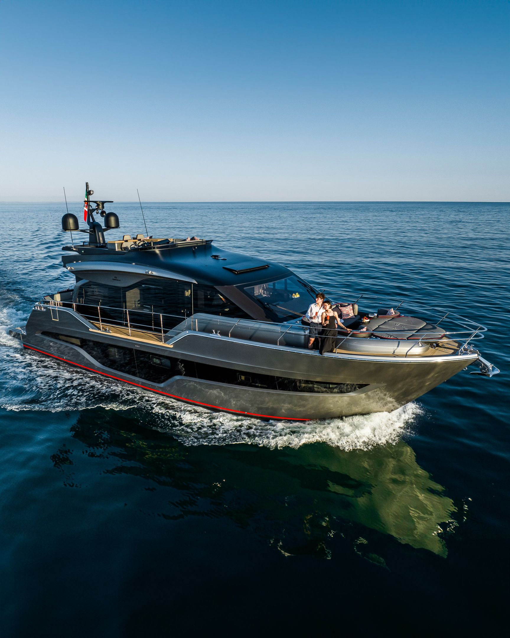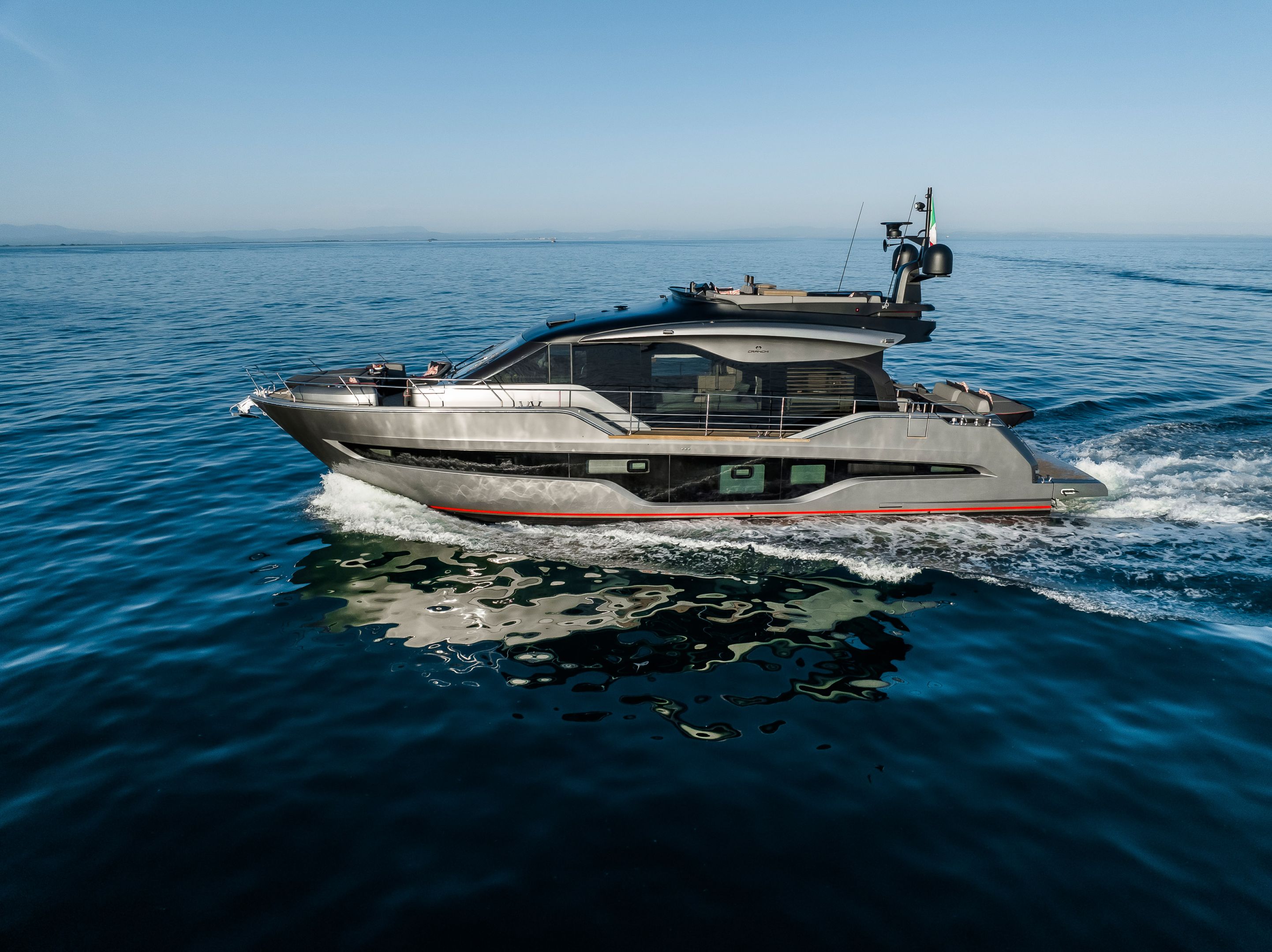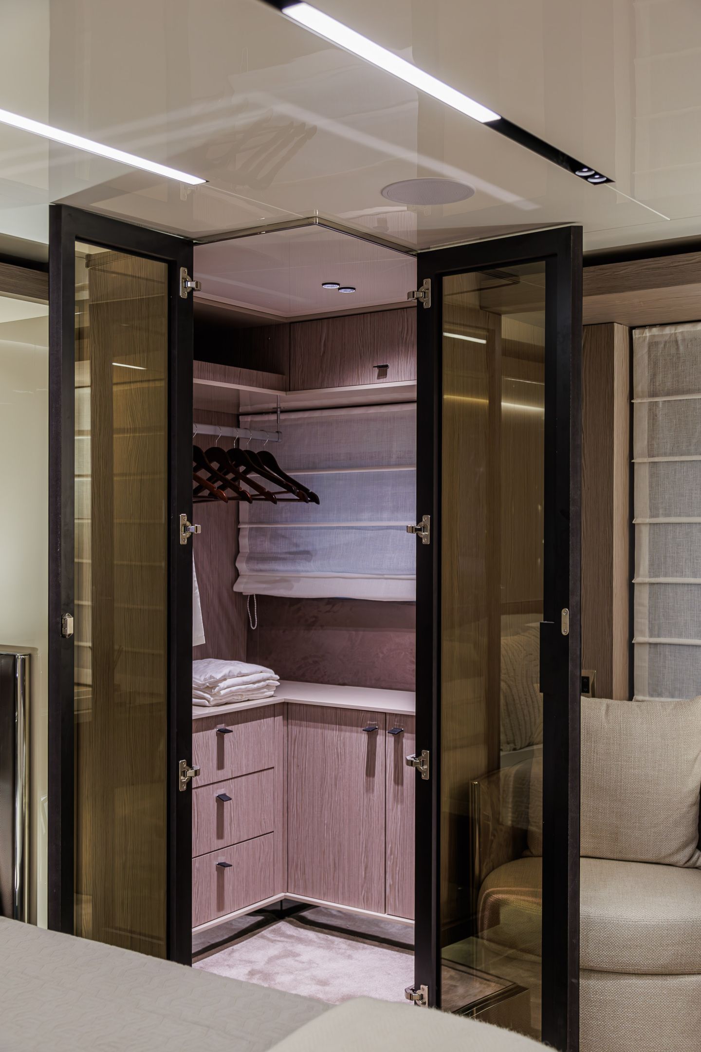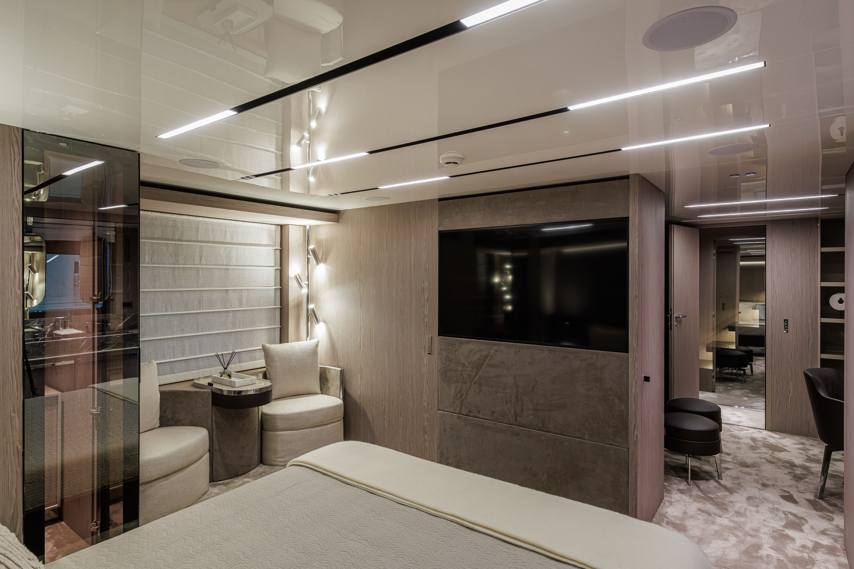 Christian Grande’s masterful design refines Aldo Cranchi’s hull into a fluid sanctuary—expansive glass doors blend saloon with an oversized cockpit, prioritized for seamless indoor/outdoor entertaining, anchored by a sleek galley with artisan stone counters. The 17-foot beam shapes a forward owner’s suite with handcrafted walnut cabinetry, a spa-grade ensuite, and wide hull windows framing ocean vistas. Every teak plank and leather stitch reflects Italian artistry built to endure.