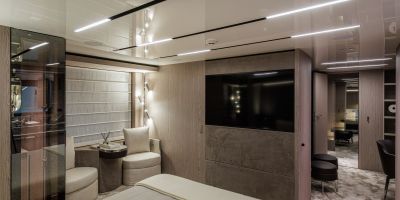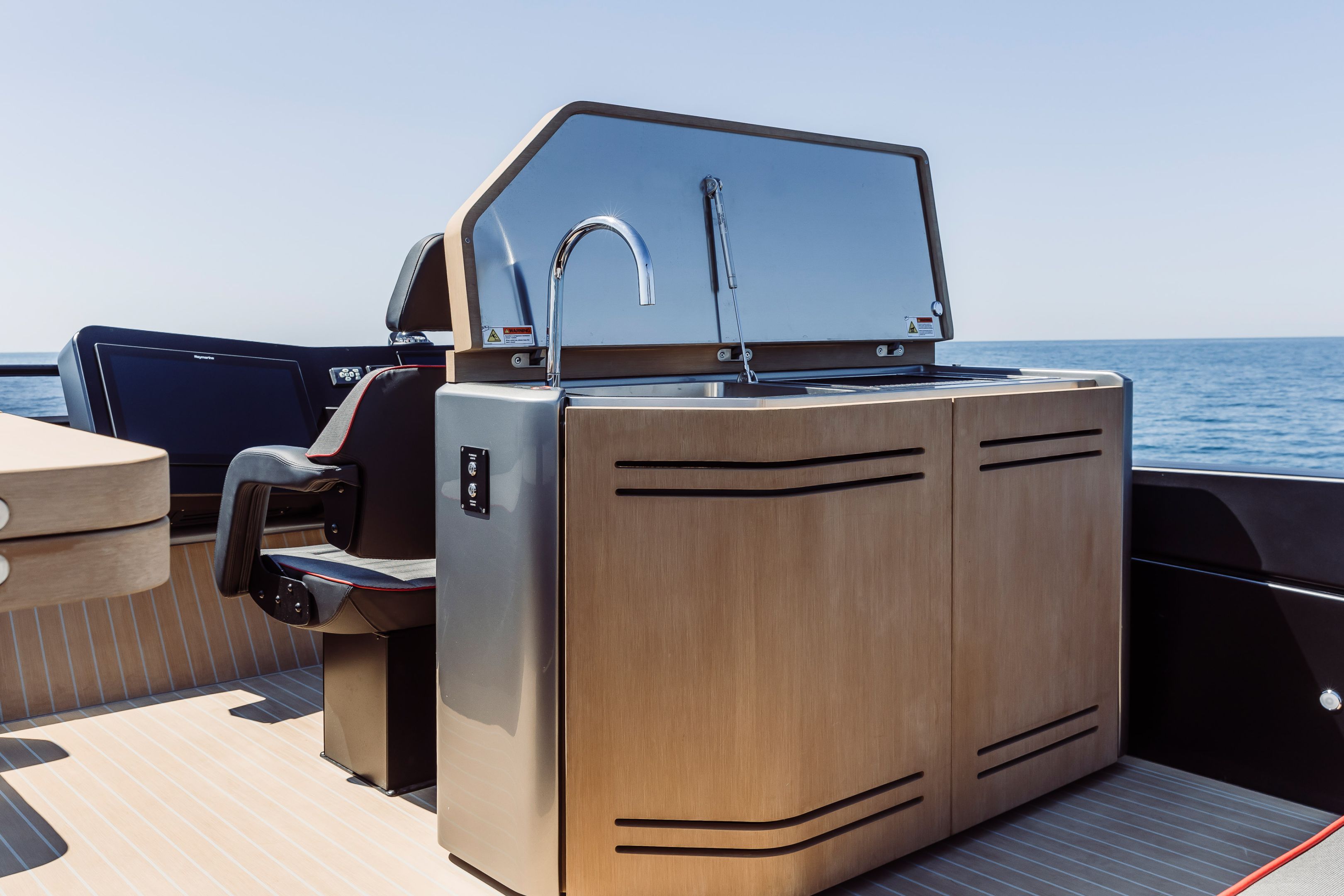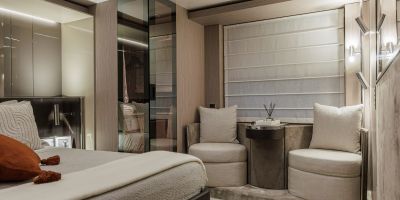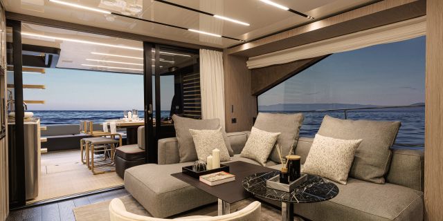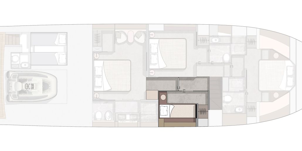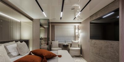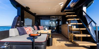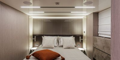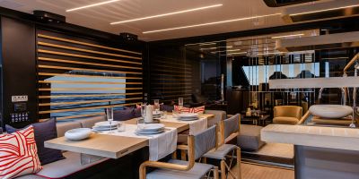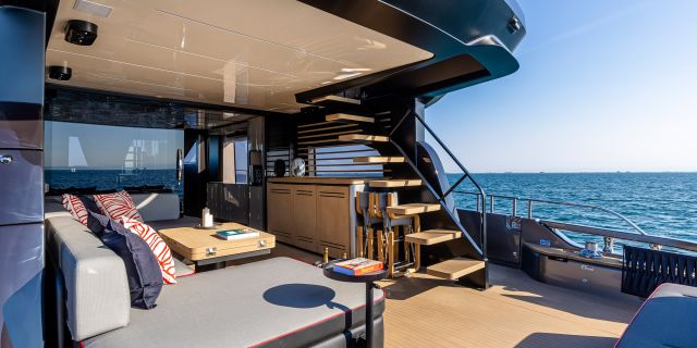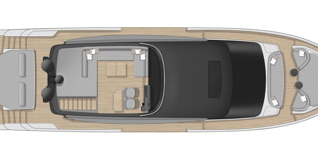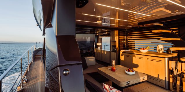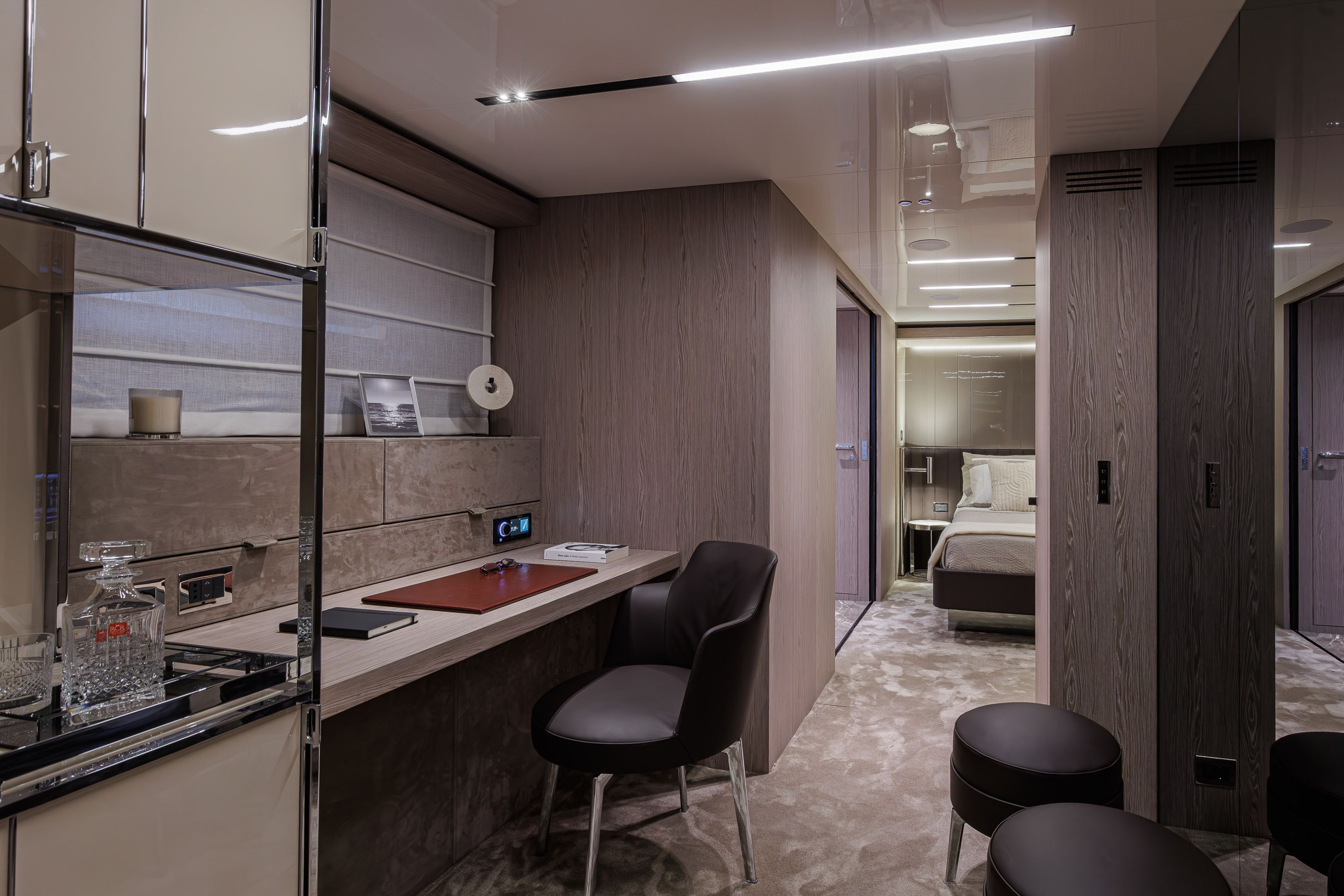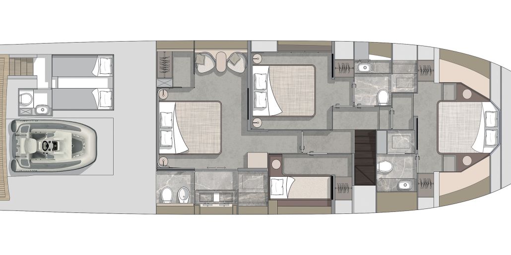 Christian Grande’s masterful design refines Aldo Cranchi’s hull into a fluid sanctuary—expansive glass doors blend saloon with an oversized cockpit, prioritized for seamless indoor/outdoor entertaining, anchored by a sleek galley with artisan stone counters. The 17-foot beam shapes a forward owner’s suite with handcrafted walnut cabinetry, a spa-grade ensuite, and wide hull windows framing ocean vistas. Every teak plank and leather stitch reflects Italian artistry built to endure.