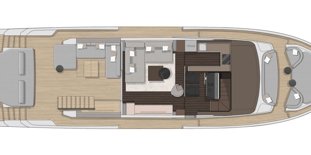 CE Category B strength powers through PNW swells to hidden coves, with 1,056 gallons of fuel and 214 gallons of water for extended escapes, plus crew quarters for smooth operations. The sport fly’s tailored bar and plush loungers, shielded by a hardtop, transform rainy Northwest cruises into refined celebrations of sea and sky.