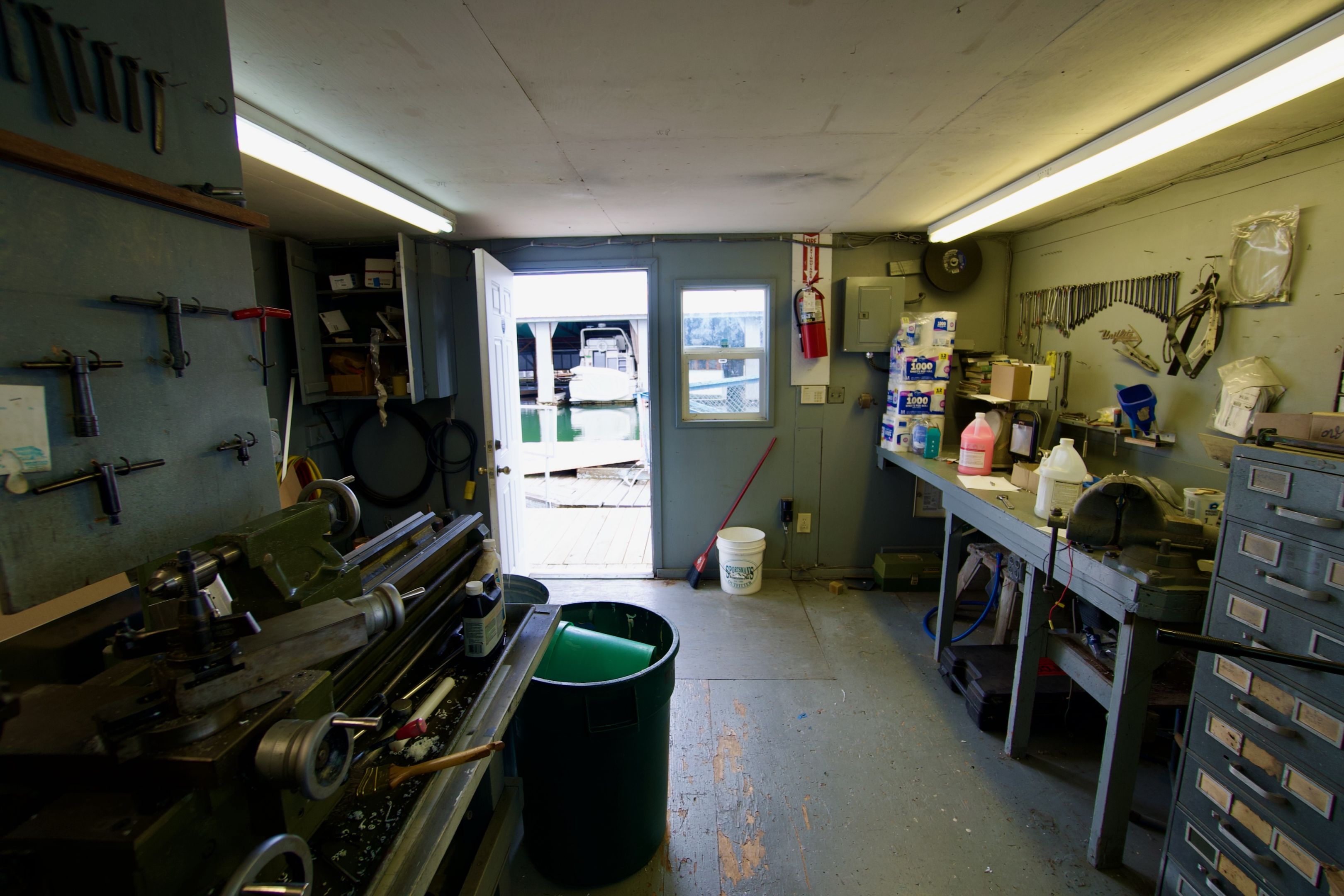 Photos show the space as currently occupied by an active tenant. The floating shop will be cleared out prior to the April 15th move-in date.