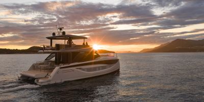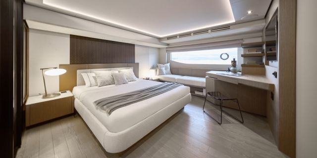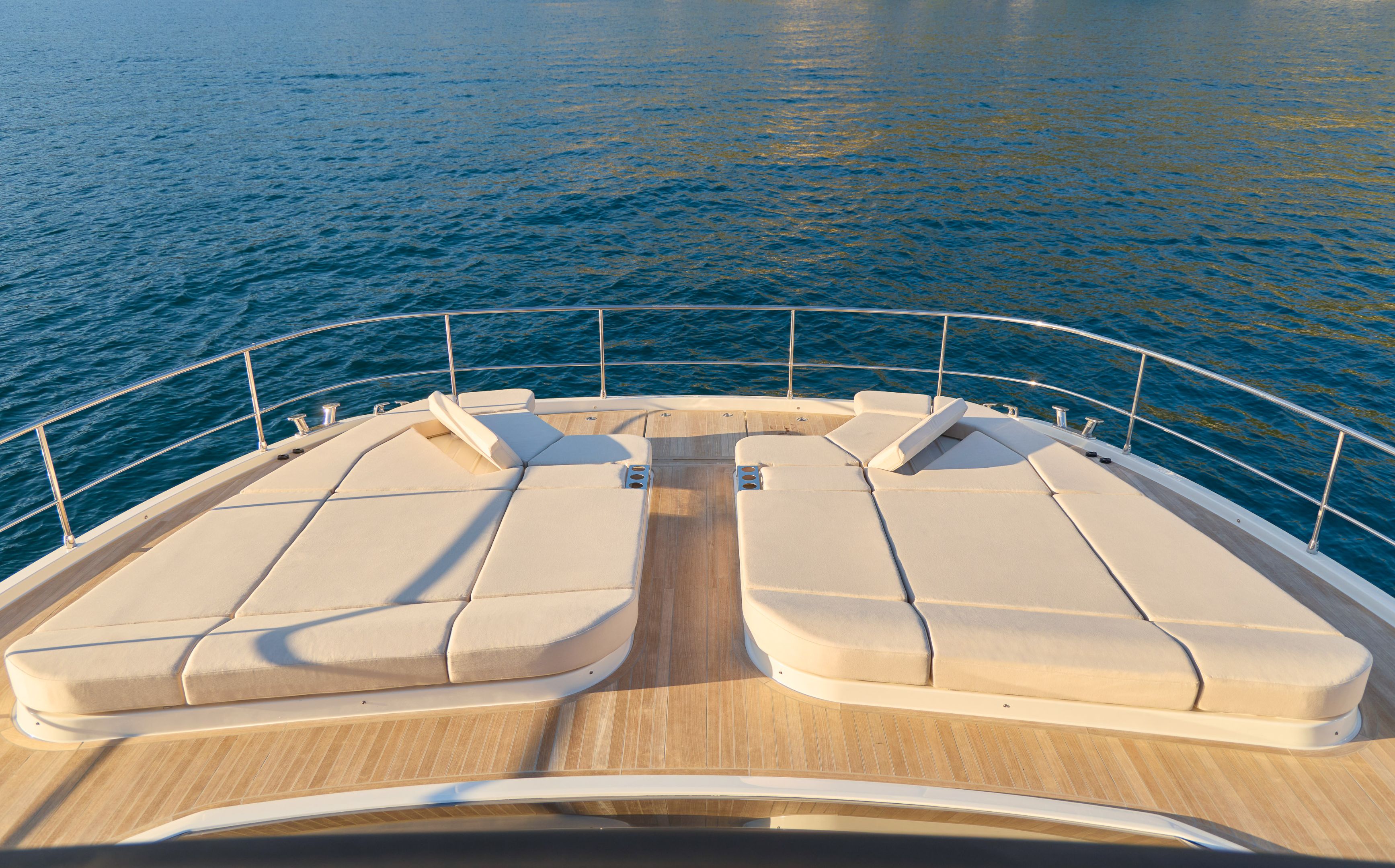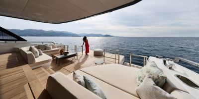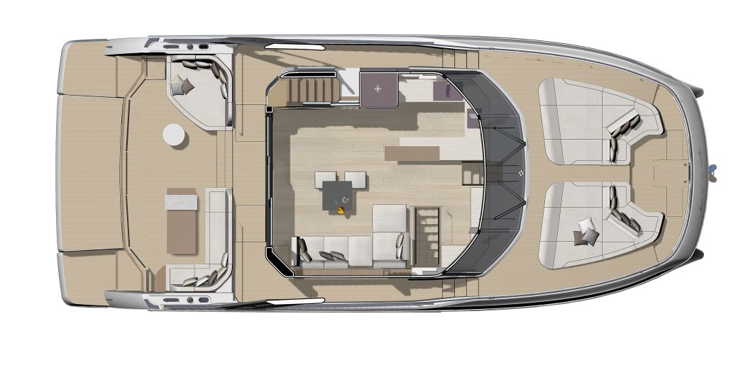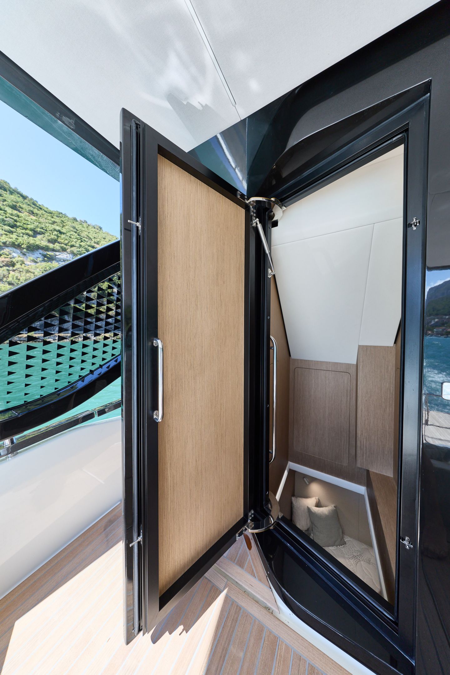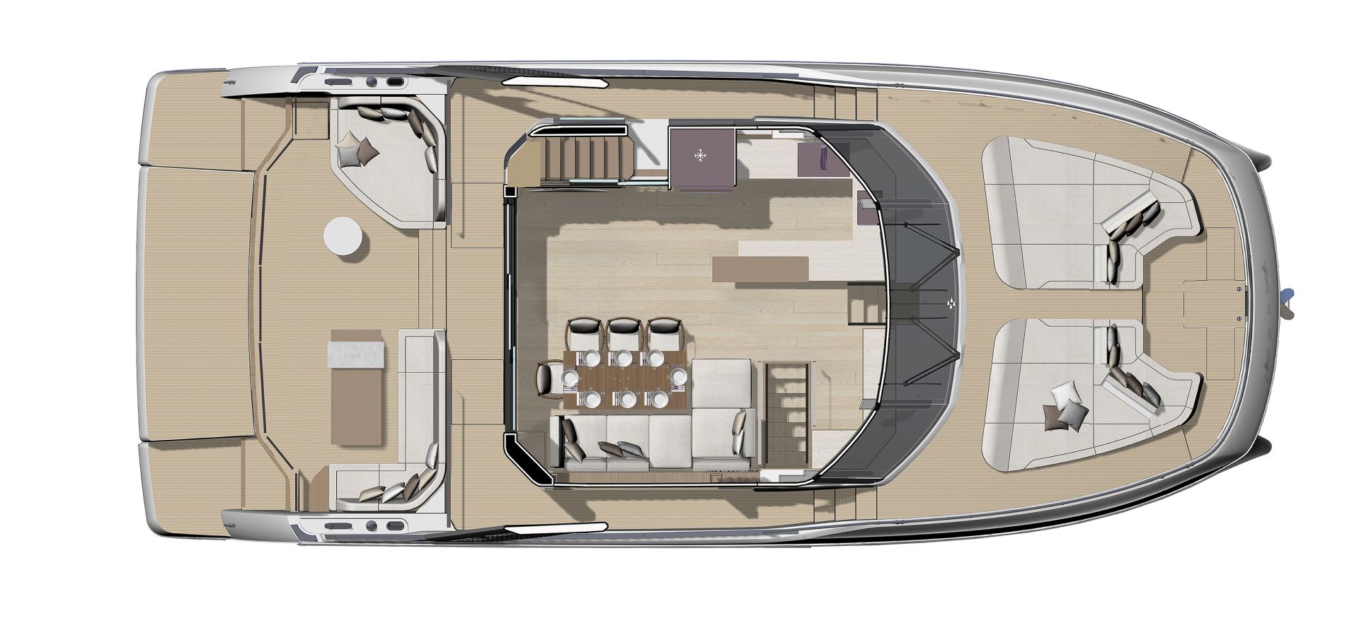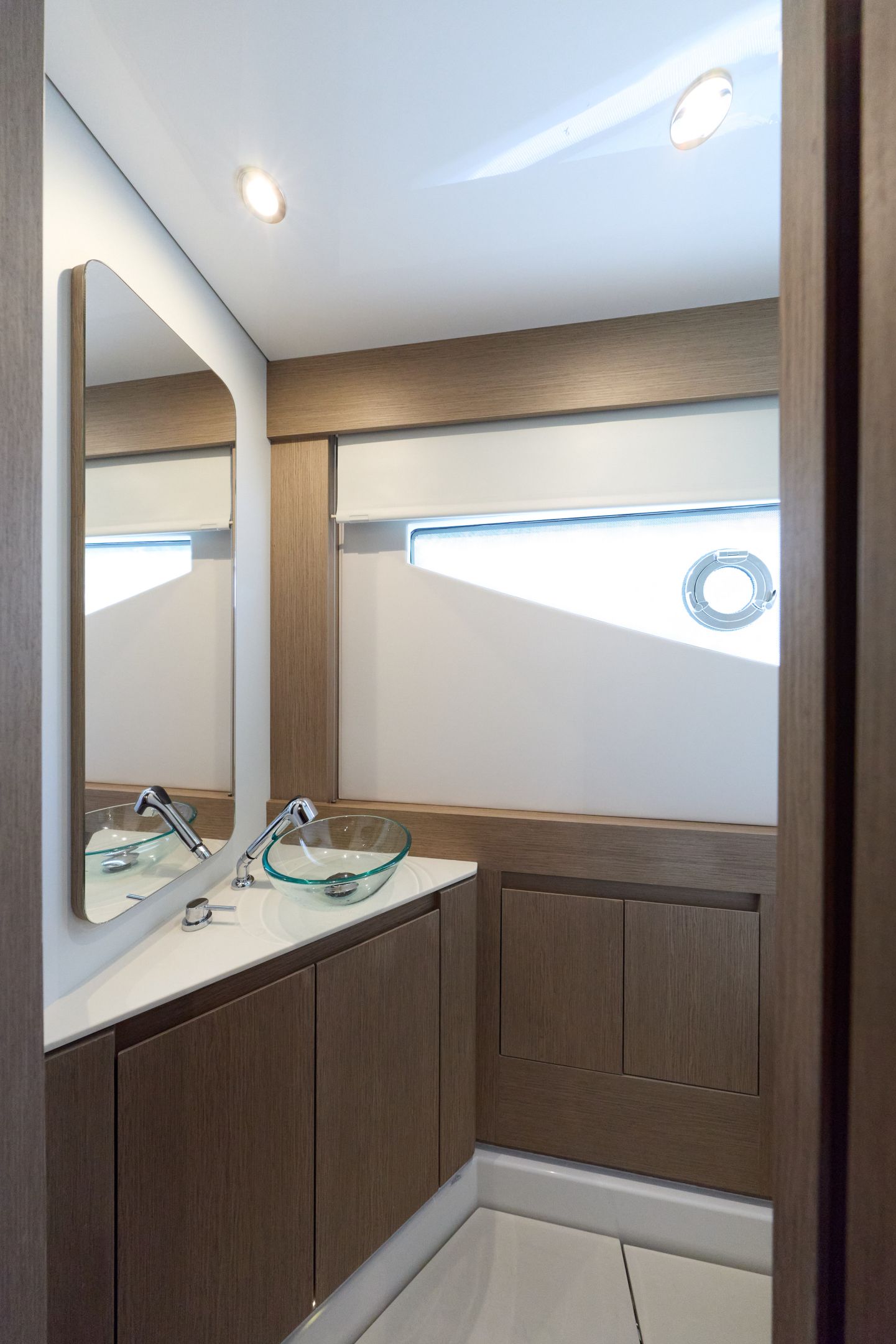 With the M7, Prestige takes the volume and stability of a multihull and finishes it like a luxury motor yacht. The wide beam runs nearly the full length of the boat, so every space feels bigger than you expect—from the salon with panoramic windows to the full-beam owner’s suite. Multiple outdoor zones let your crew spread out: shaded cockpit, forward lounge, and an expansive flybridge designed for long, relaxed days underway. Twin hulls deliver a soft, composed ride and excellent fuel economy at cruising speeds, extending your range without sacrificing comfort.