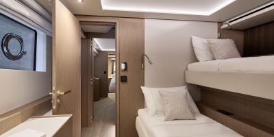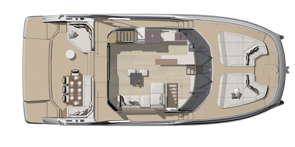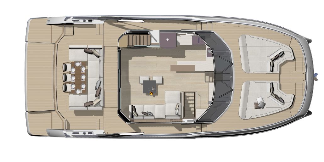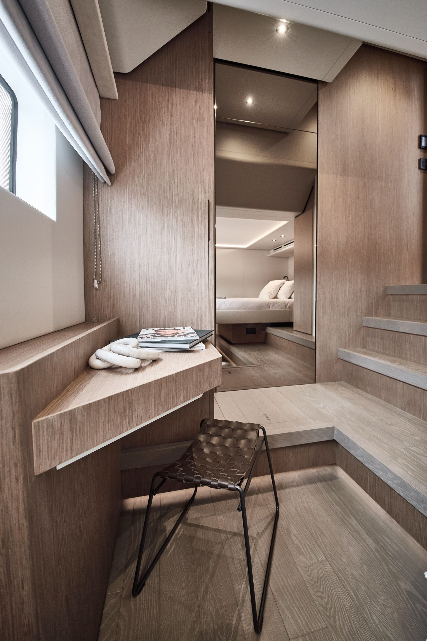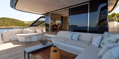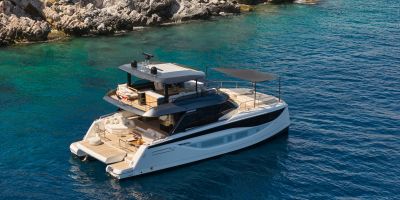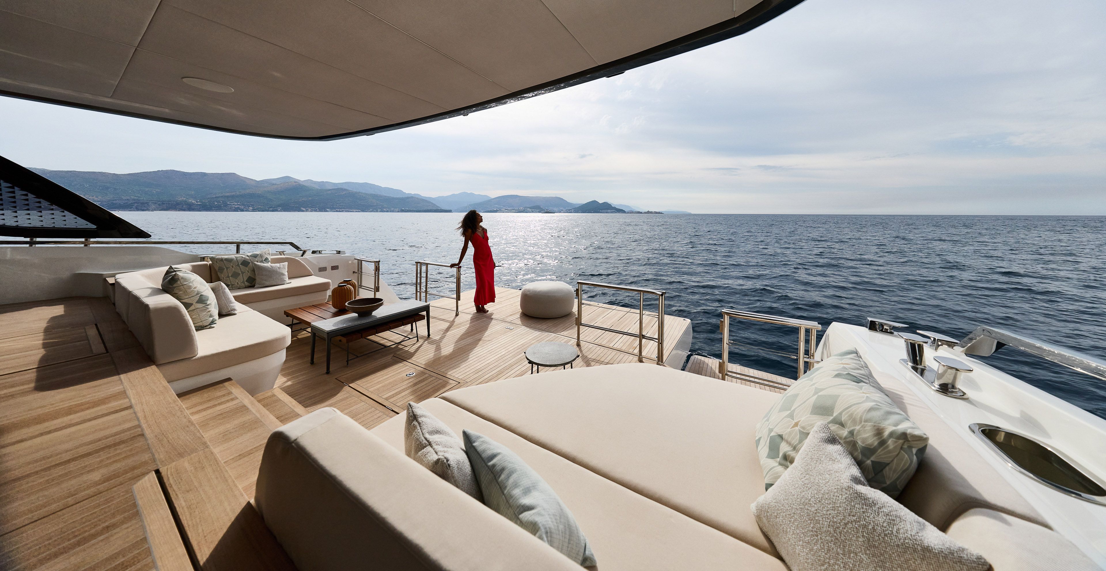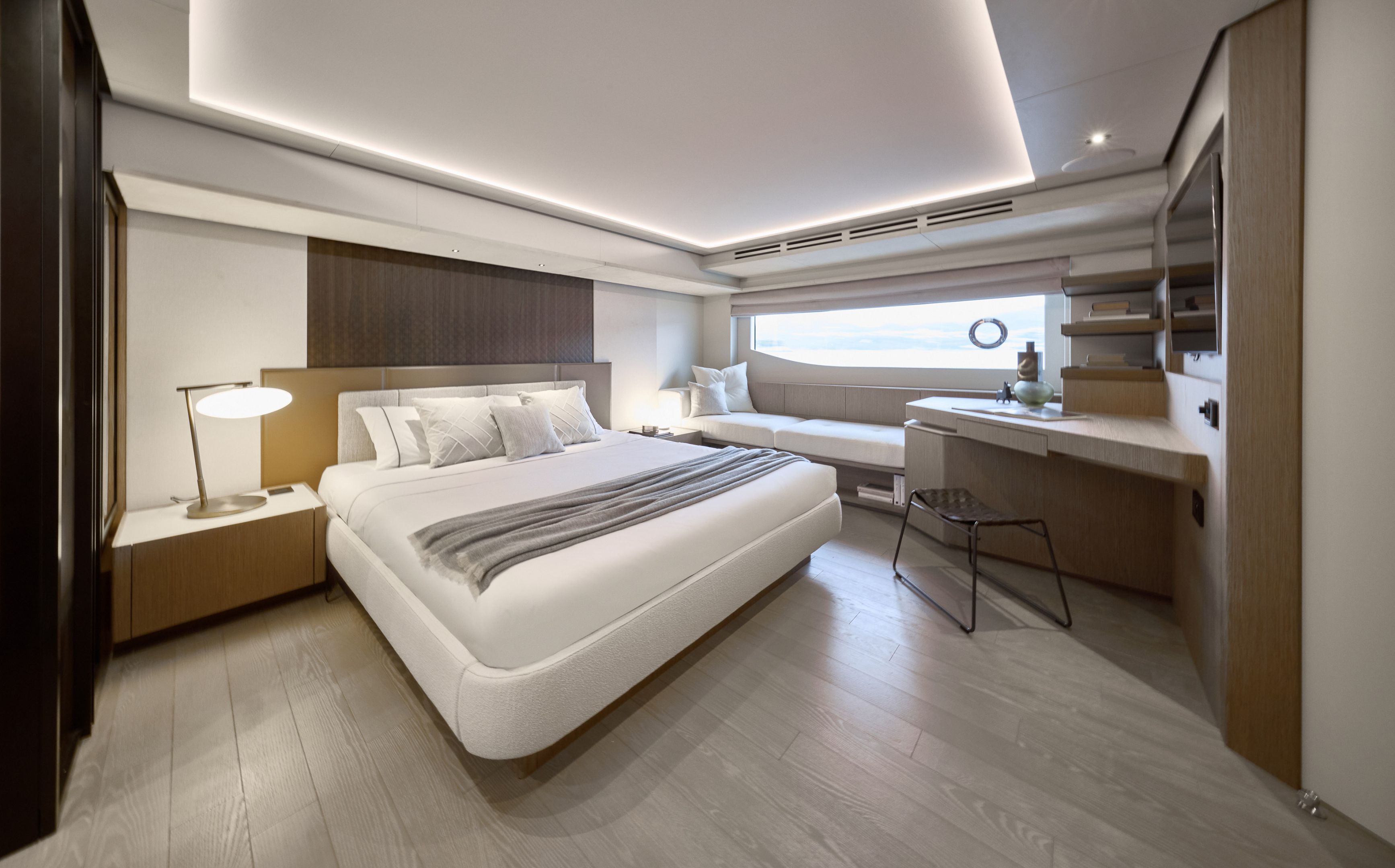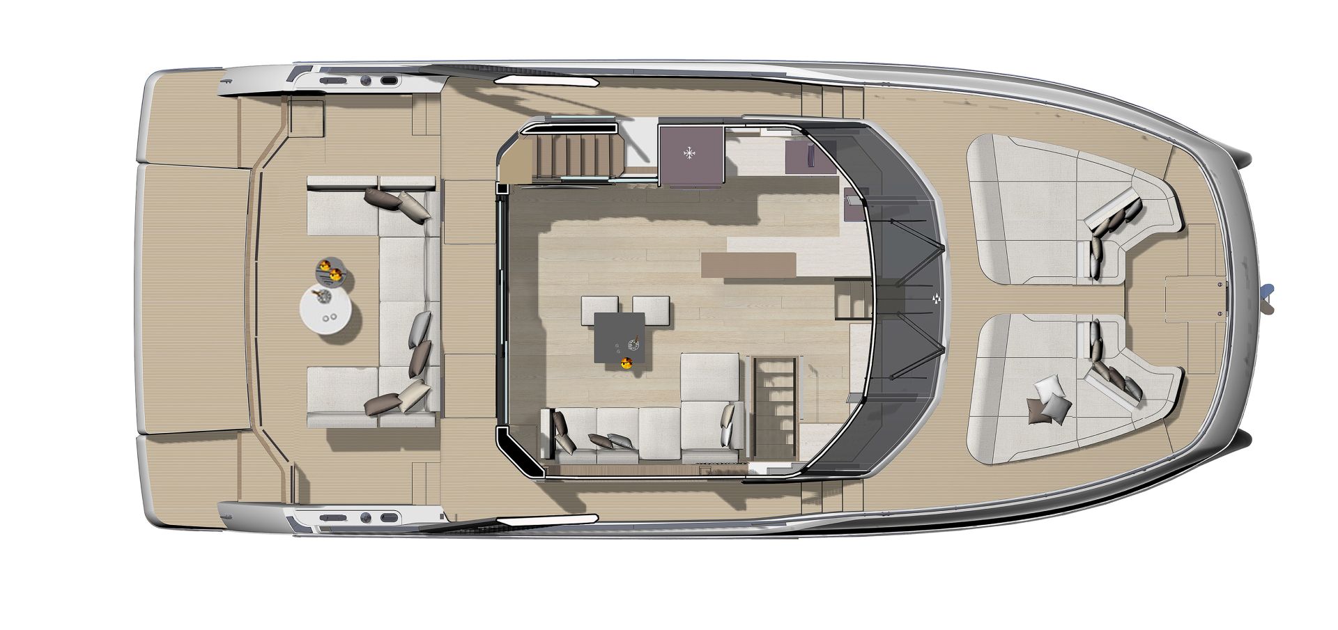 With the M7, Prestige takes the volume and stability of a multihull and finishes it like a luxury motor yacht. The wide beam runs nearly the full length of the boat, so every space feels bigger than you expect—from the salon with panoramic windows to the full-beam owner’s suite. Multiple outdoor zones let your crew spread out: shaded cockpit, forward lounge, and an expansive flybridge designed for long, relaxed days underway. Twin hulls deliver a soft, composed ride and excellent fuel economy at cruising speeds, extending your range without sacrificing comfort.