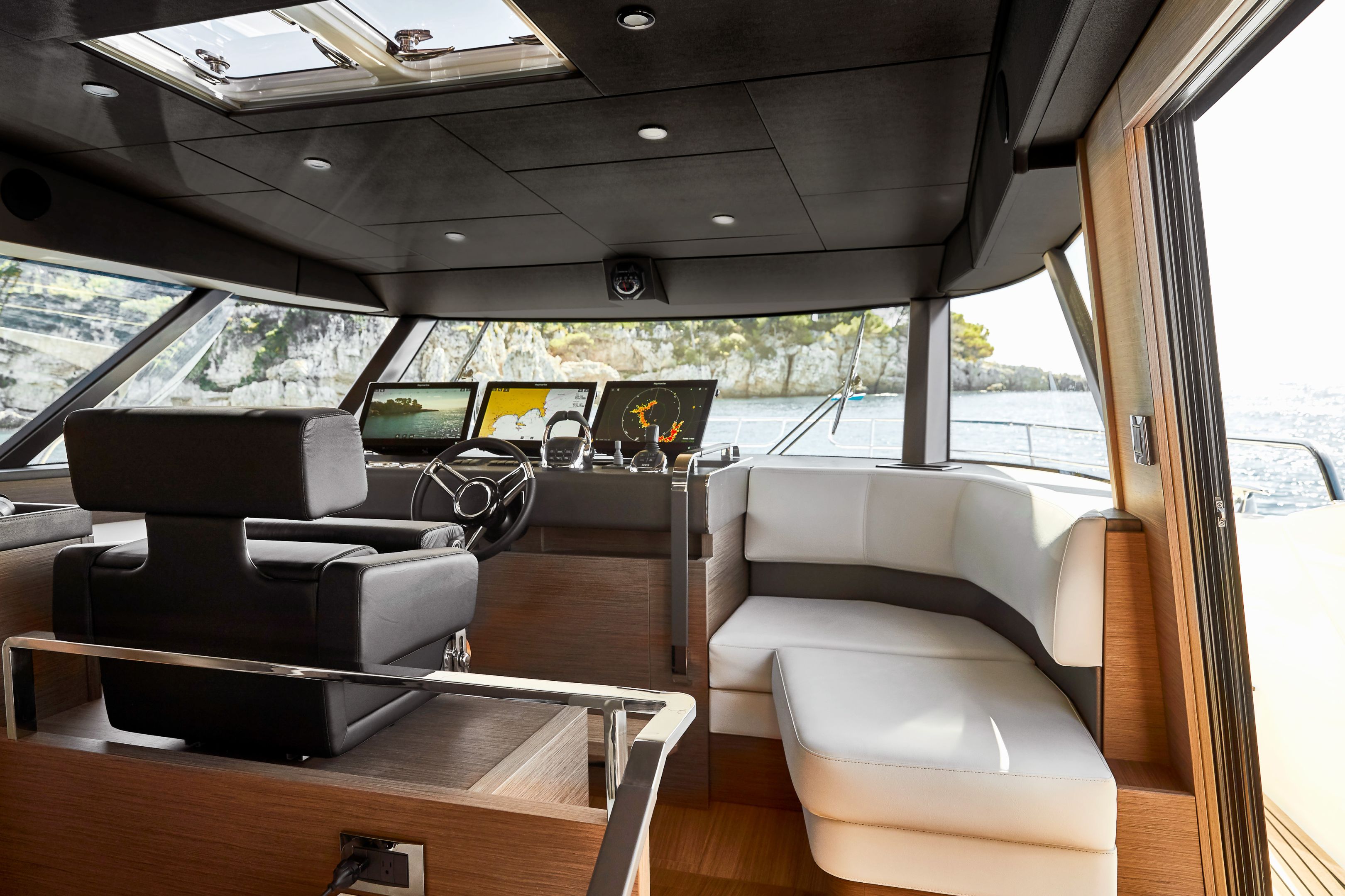 The X70 features a higher level of detail and more sophisticated woodwork than any Prestige yacht before it. Pictured is one of the many standout pieces throughout the boat that were designed just for this vessel.