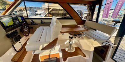 • Command Bridge with Bimini Top – Elevate your view and enjoy the sun with a fully equipped flybridge helm and seating.