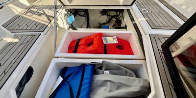 • Safety Kit & Launch Gear – Includes fenders, lines, flare kit, fire extinguisher, life jackets, and boat hook.